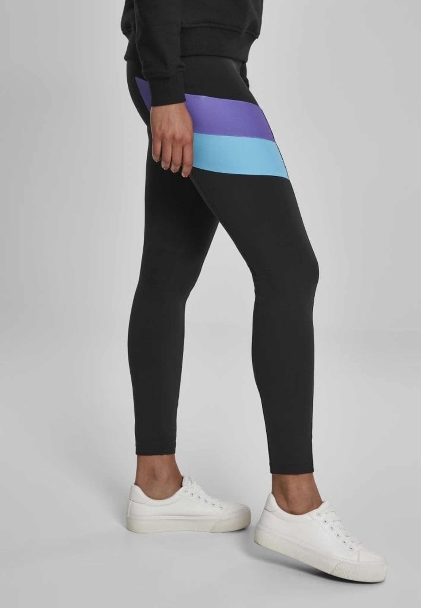 These leggings have two color blocks on the thighs that look like watercolors and look very sporty.