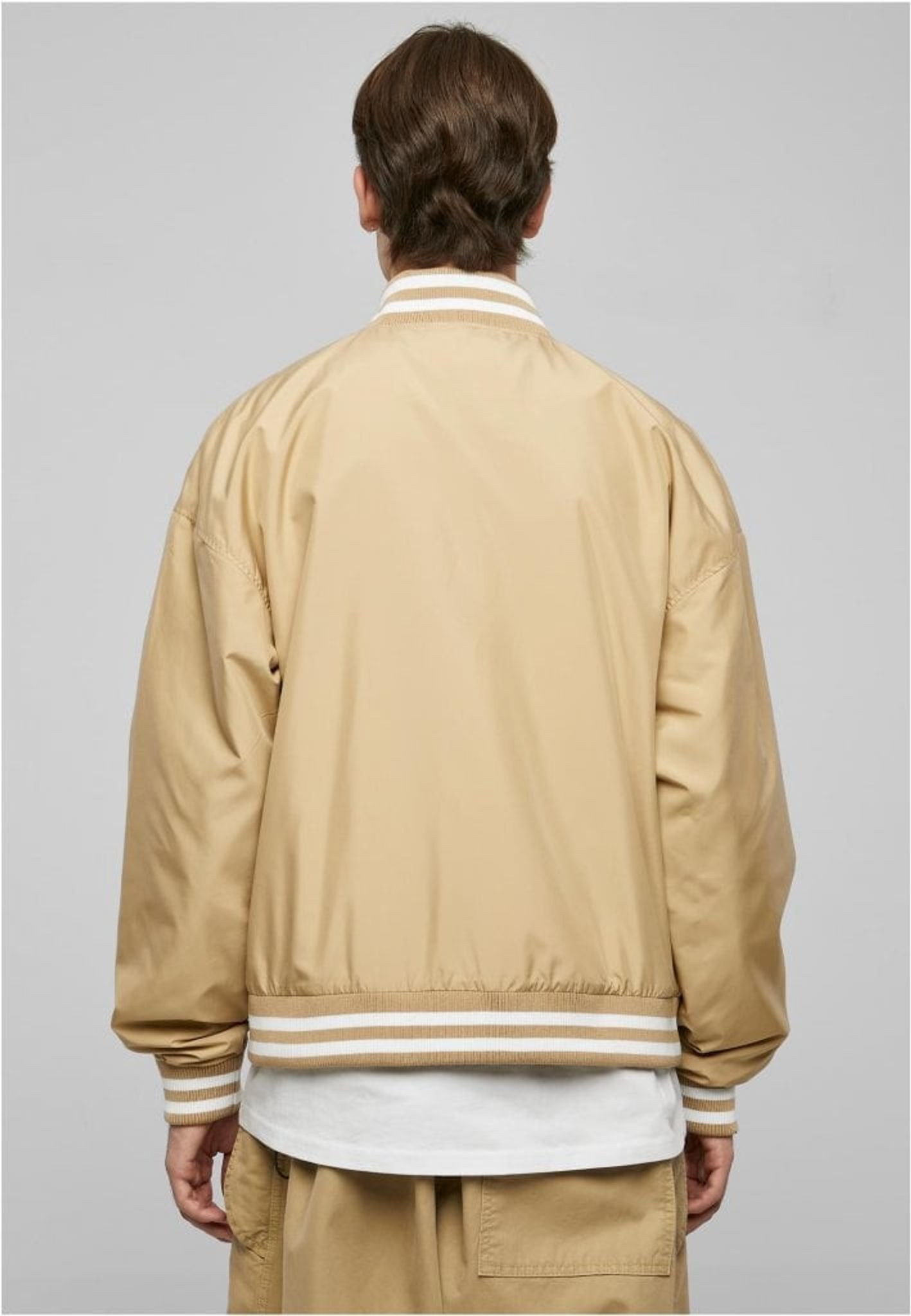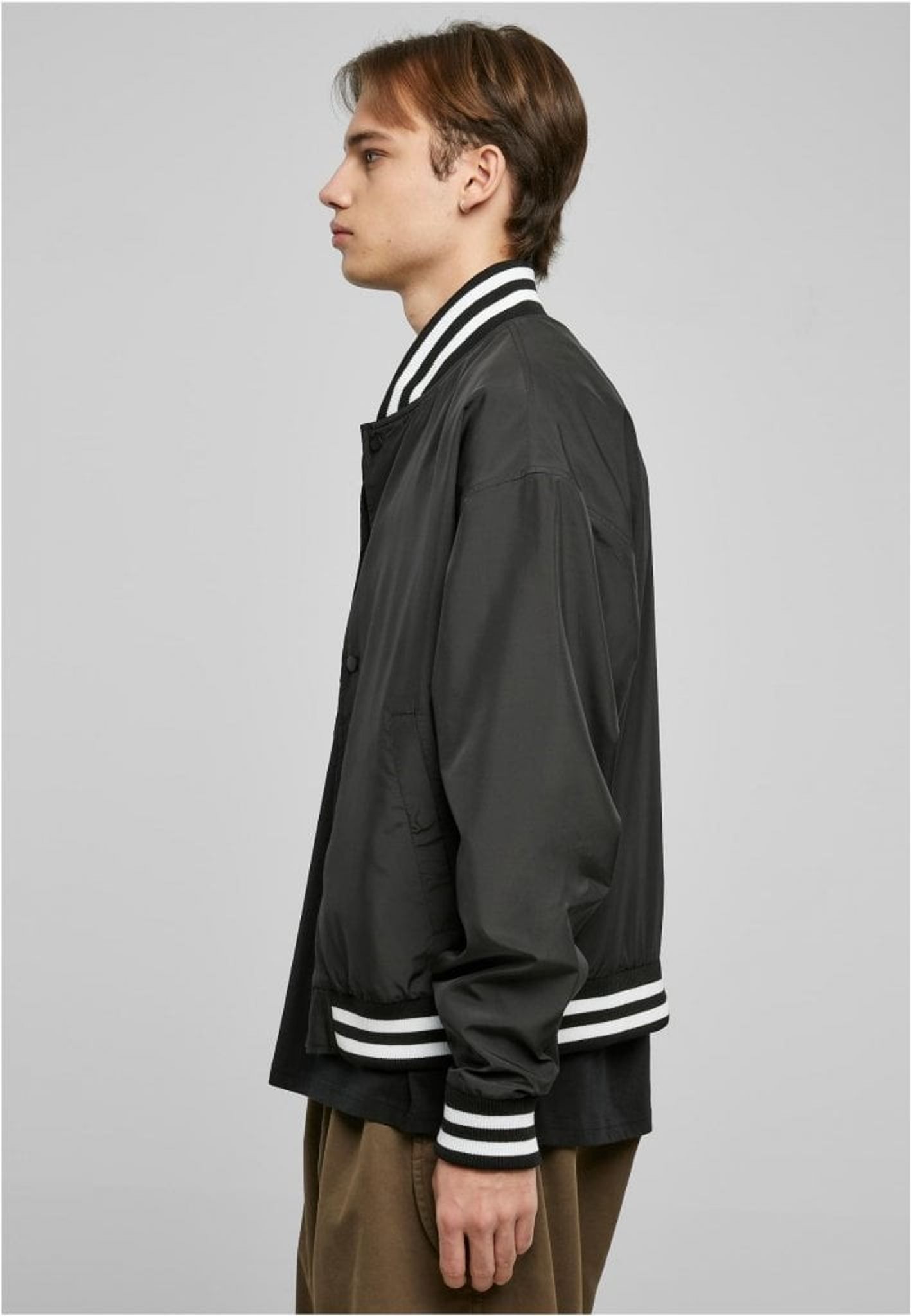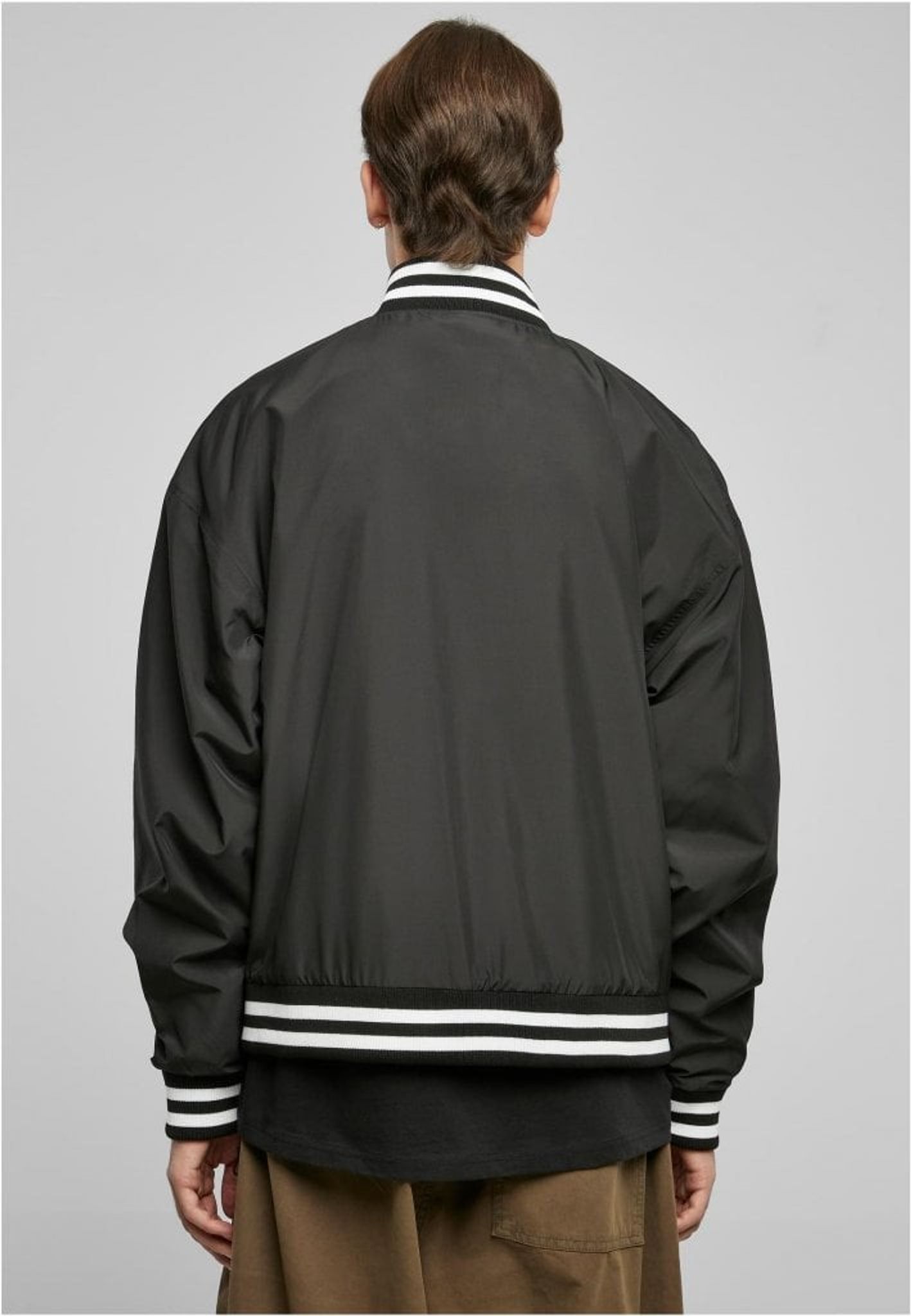 The college jacket for men is perfect for those looking for a lightweight option. The color scheme blends in well and the ribbed cuffs on the sleeves and hem have stripes, along with the ribbed collar, for added contrast.