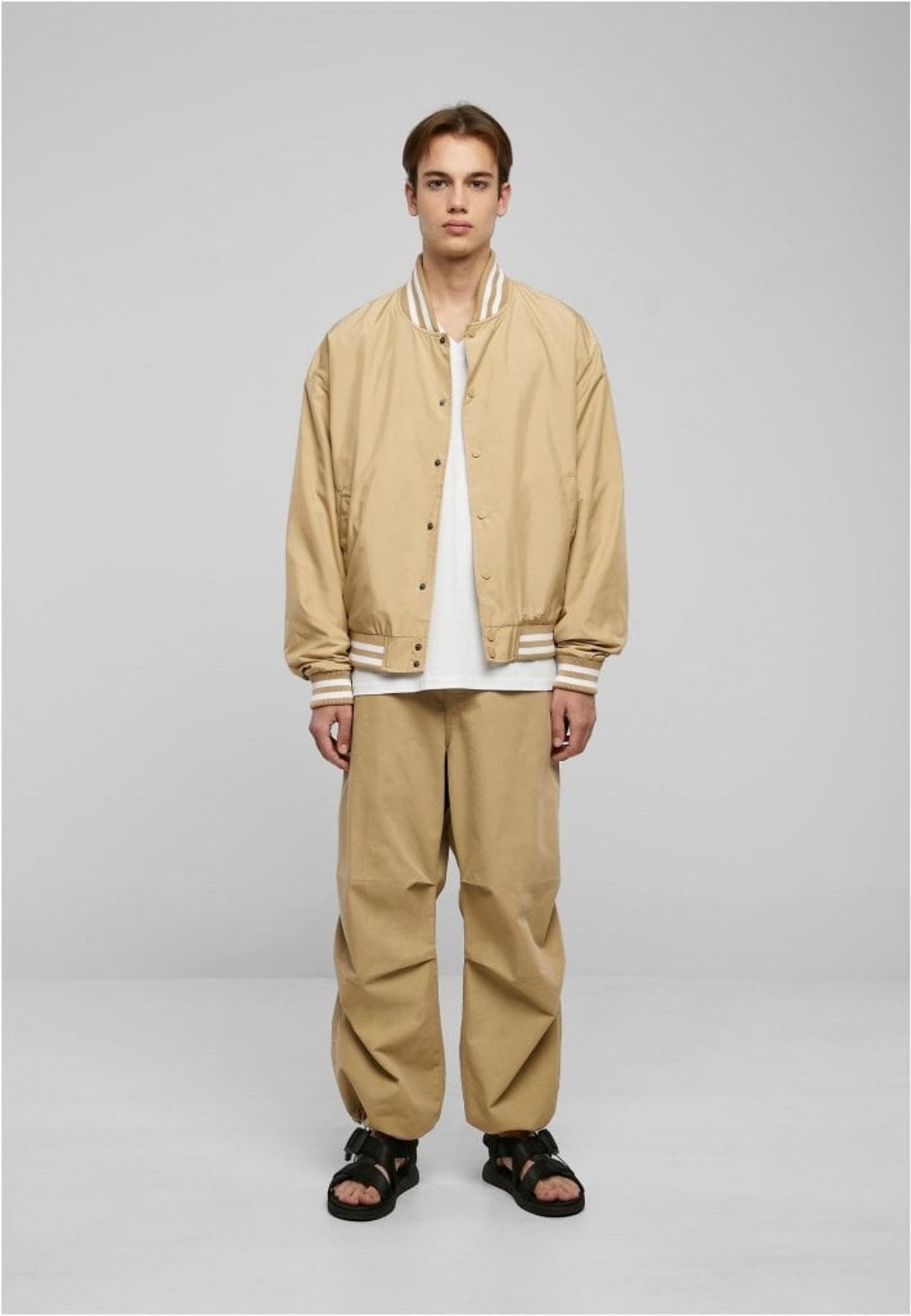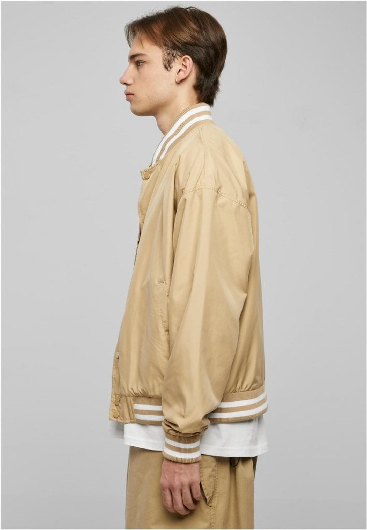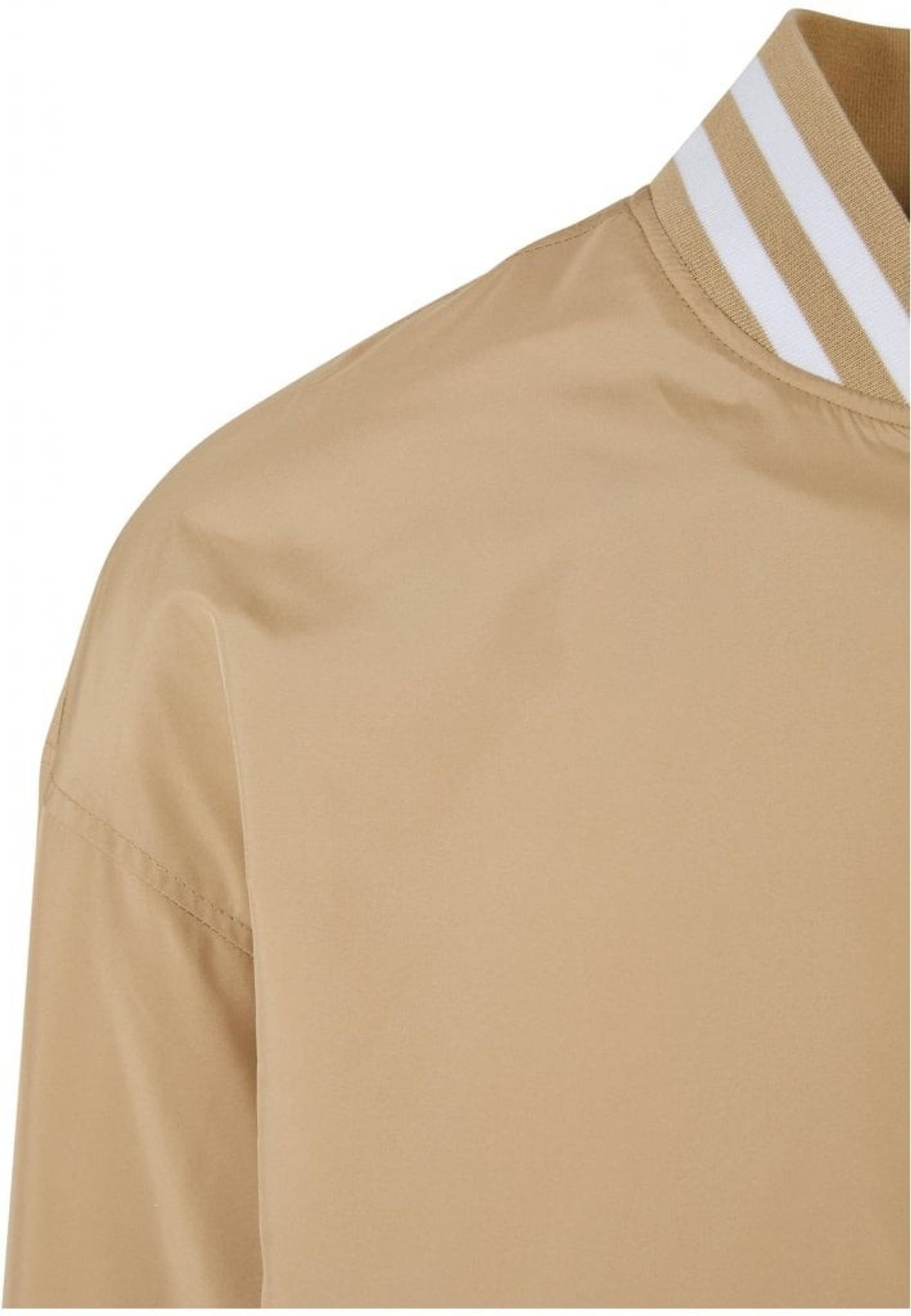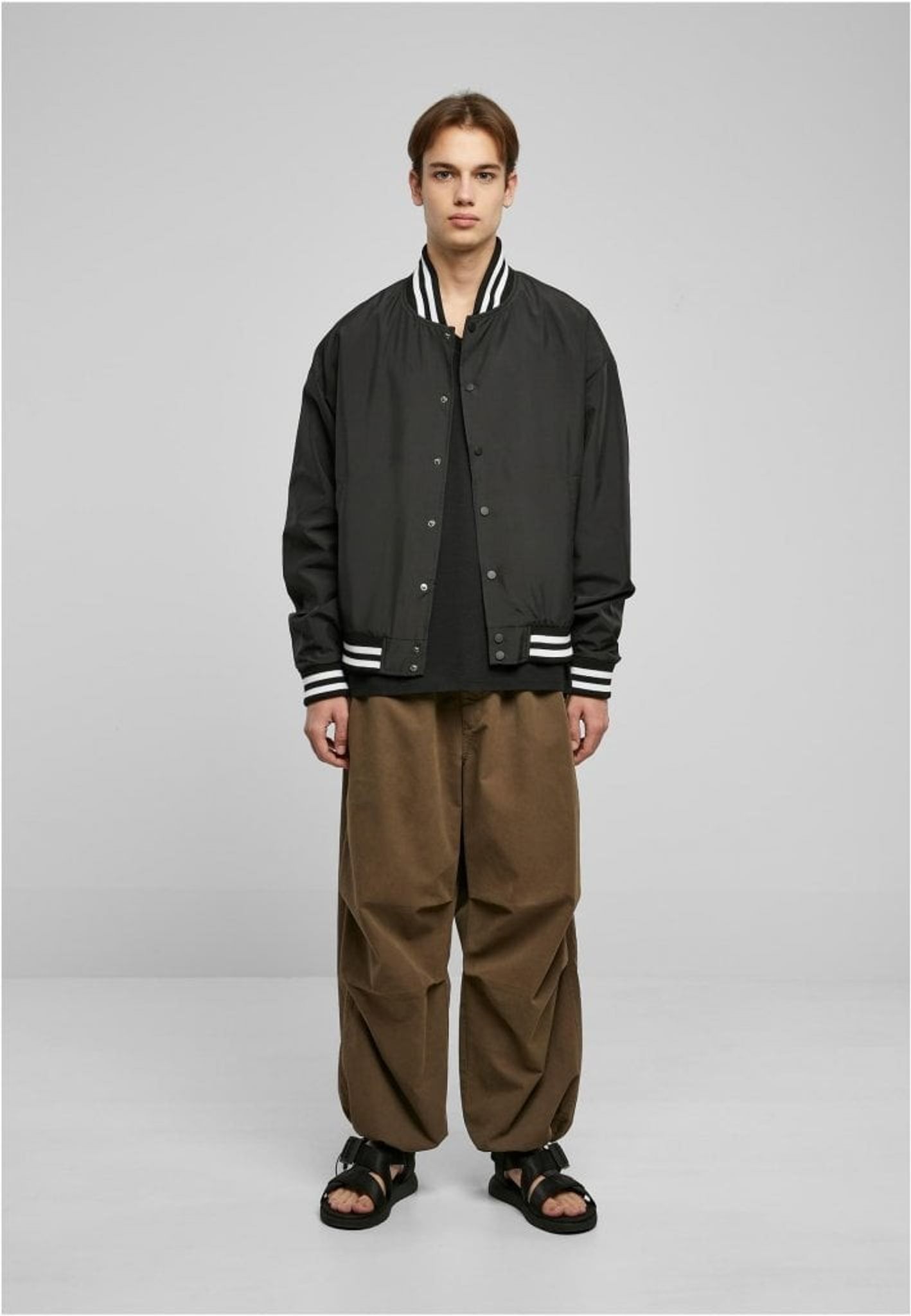 The college jacket for men is perfect for those looking for a lightweight option. The color scheme blends in well and the ribbed cuffs on the sleeves and hem have stripes, along with the ribbed collar, for added contrast.