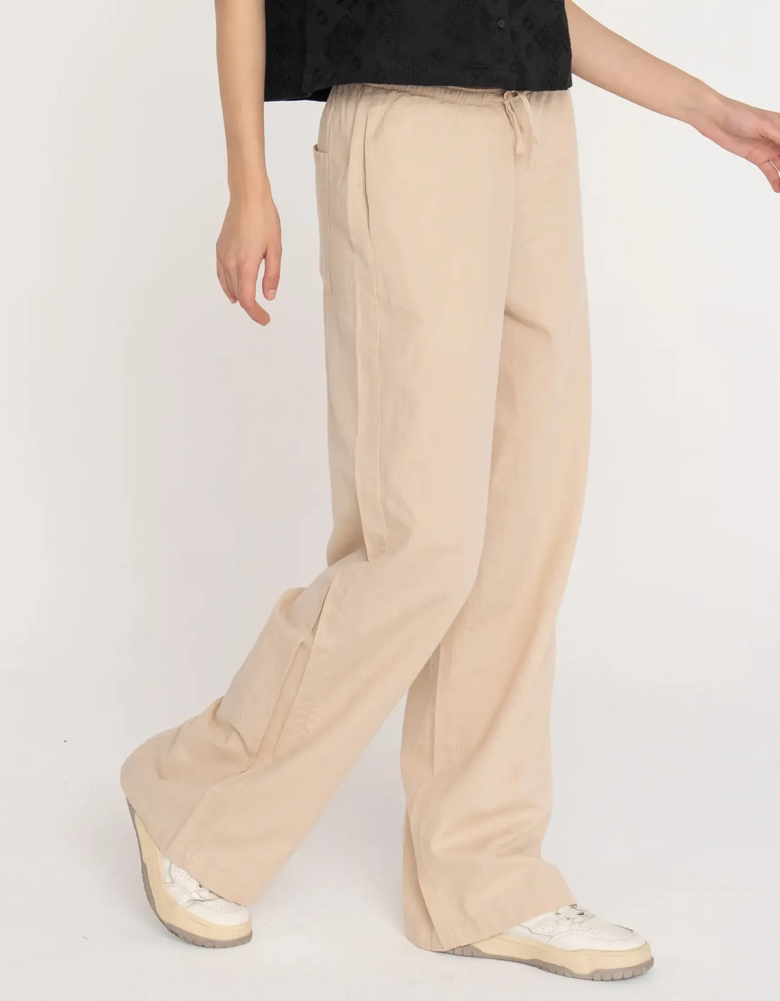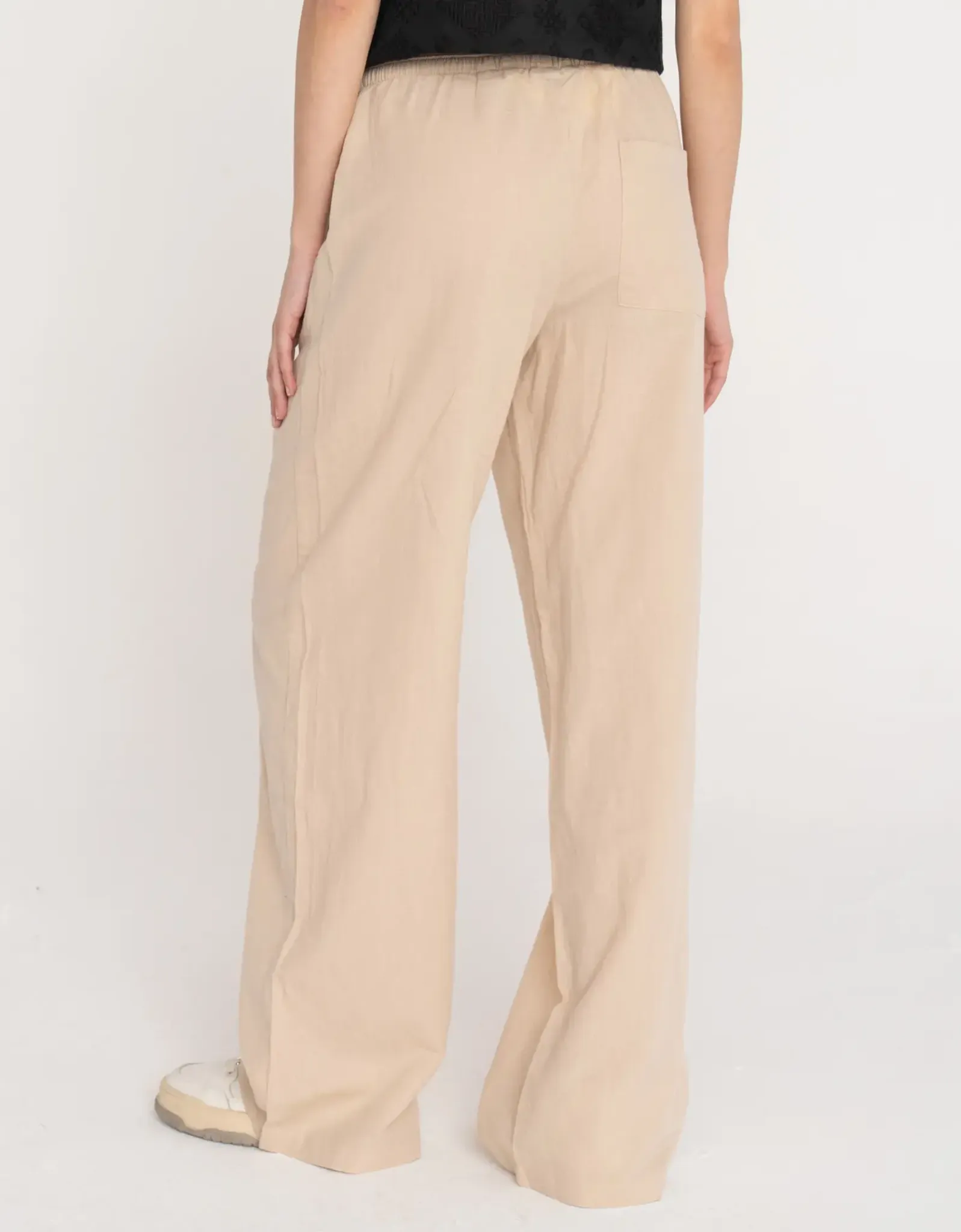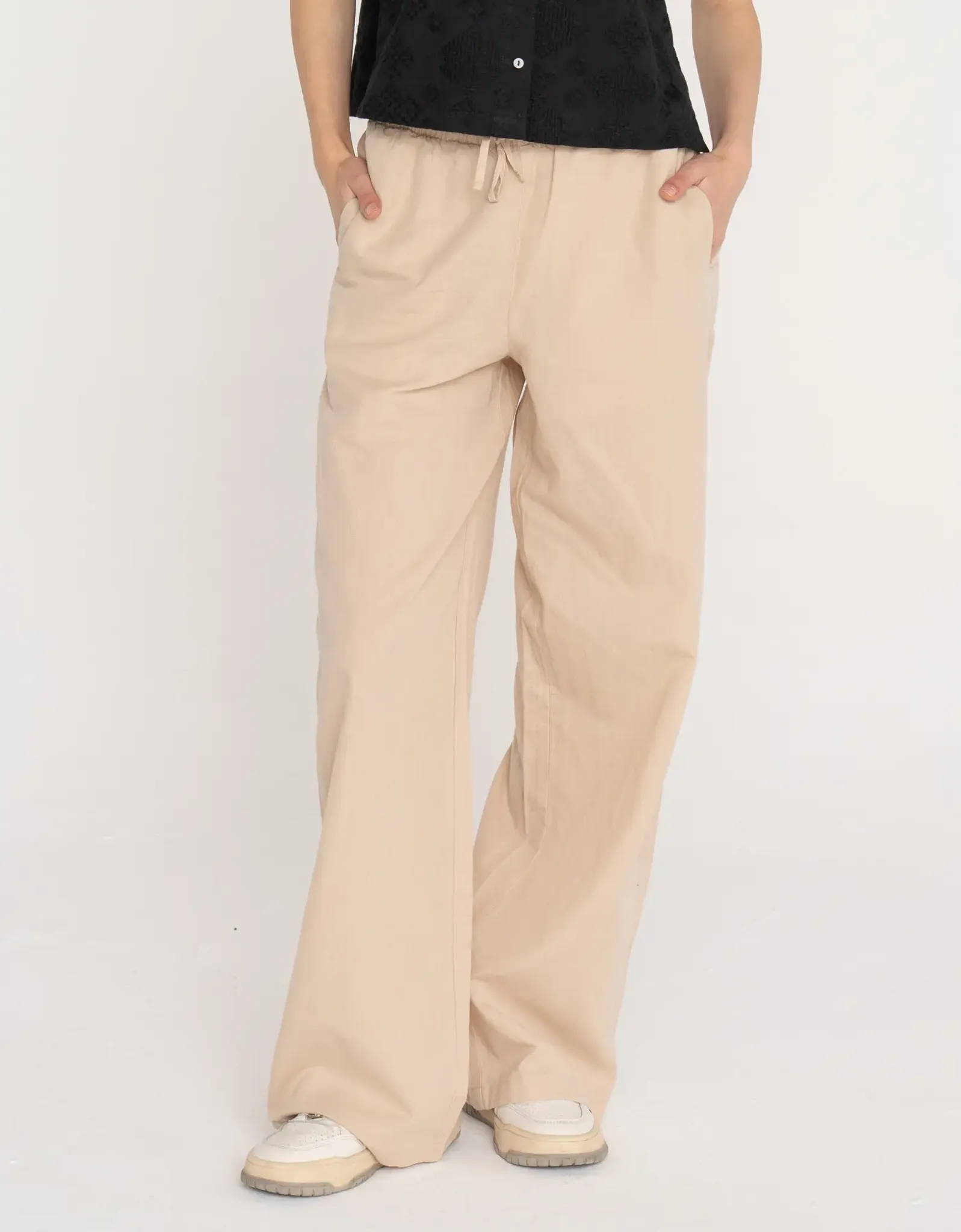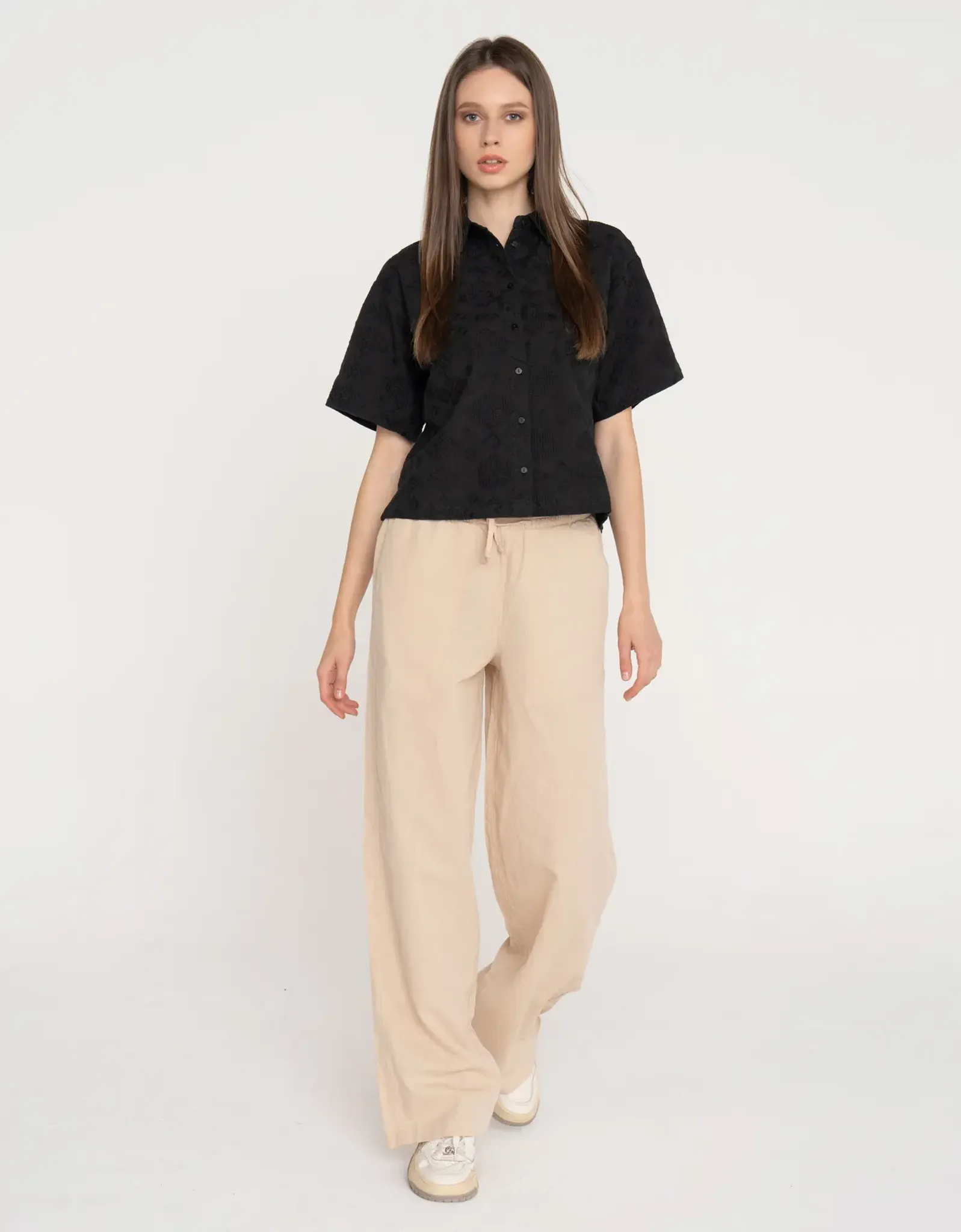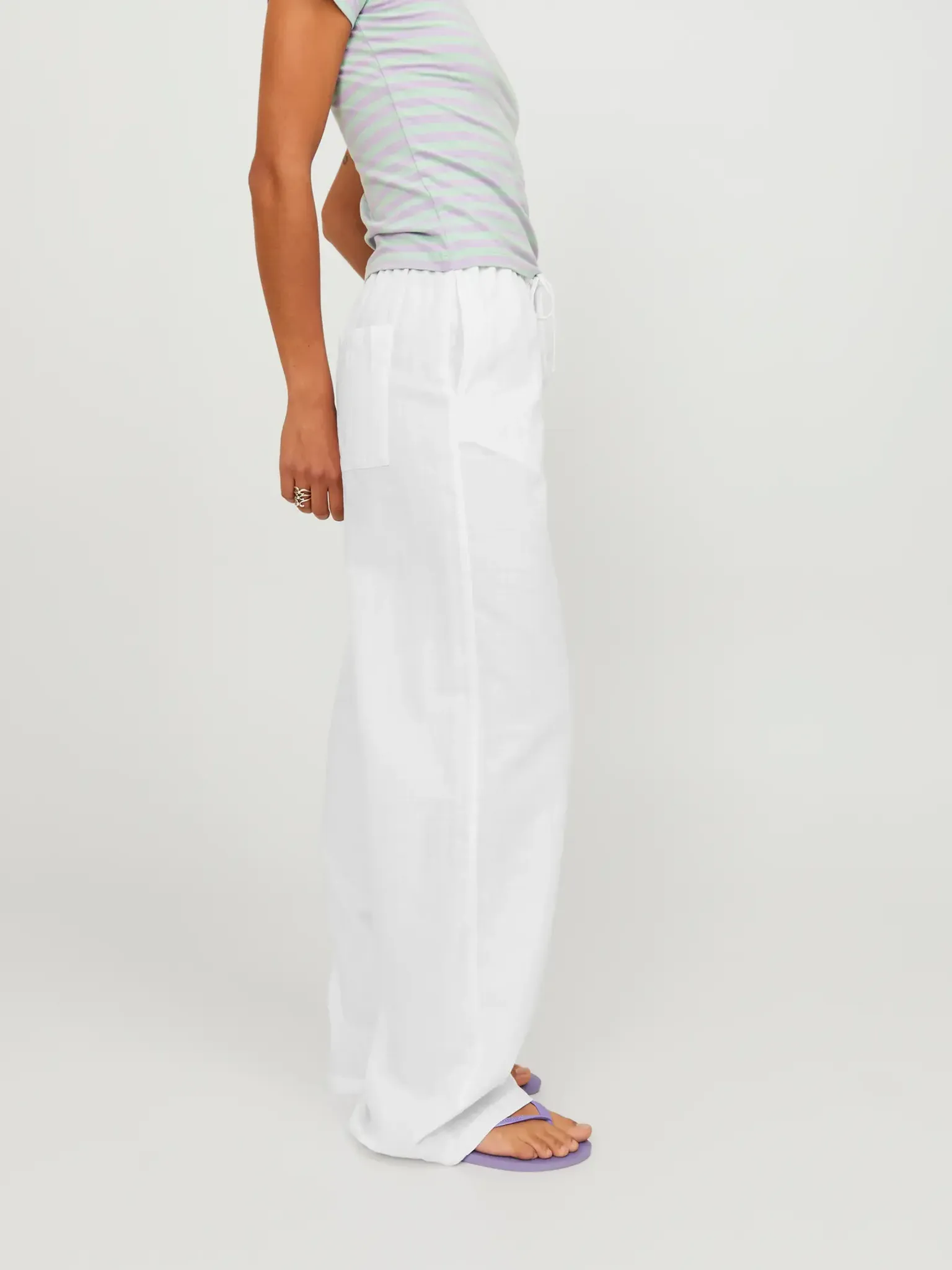 Med en midjehöjd som sitter bekvämt och en elastisk midja, erbjuder dessa byxor en flexibel passform som anpassar sig till kroppen. Den lösa passformen ger rörelsefrihet och komfort under hela dagen.