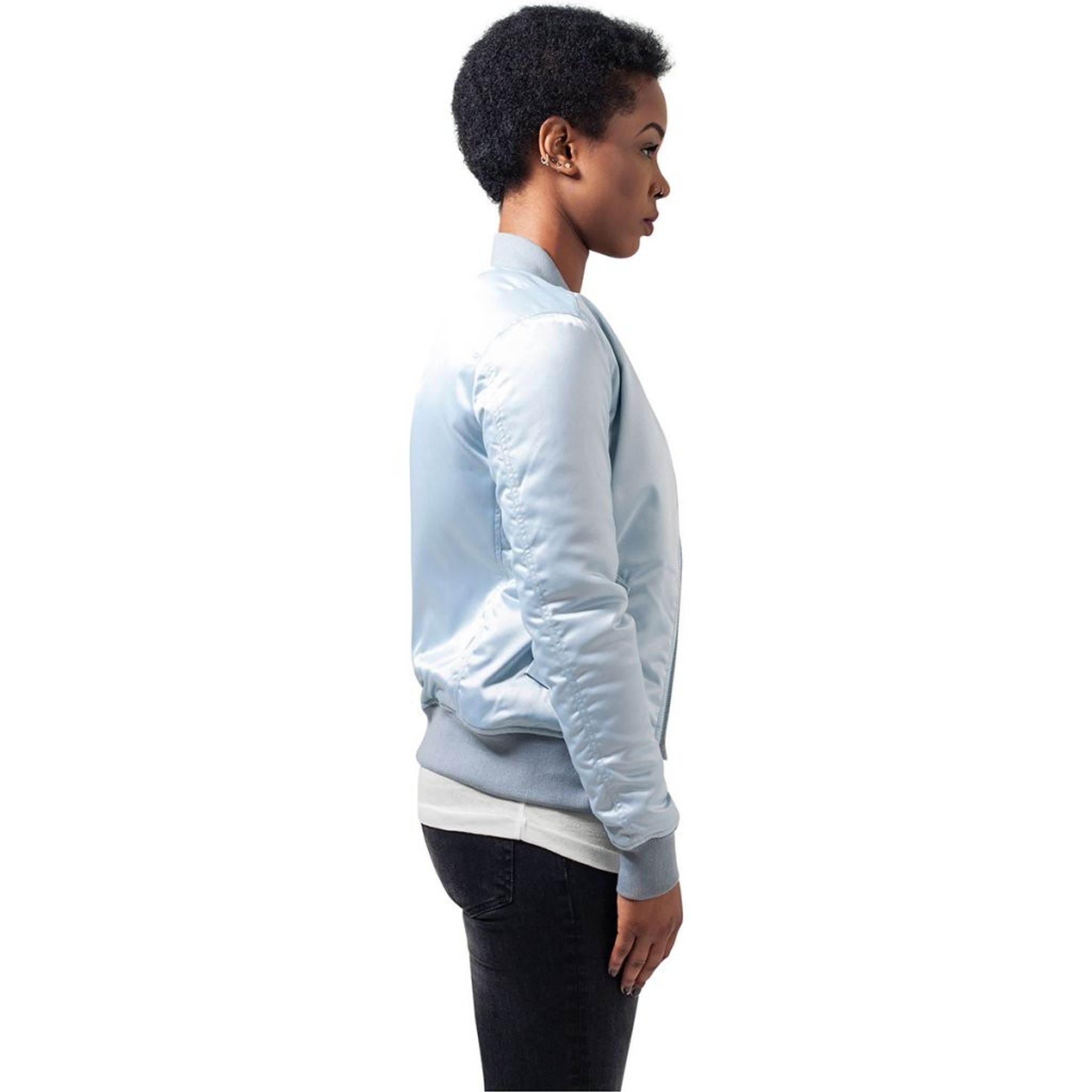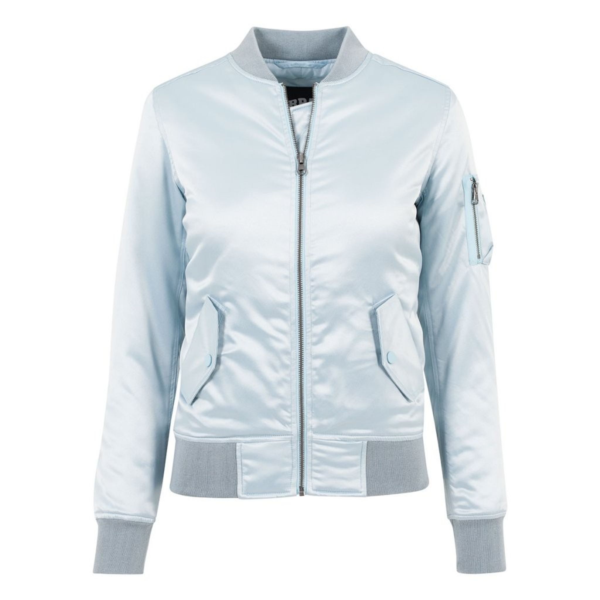 Here you have a really nice and soft bomber jacket. This jacket is not quite like the usual bomber jackets in the model but has a more adapted model for you as a girl and you can say that this jacket is a little more baby blue in color but since it is glossy it will be the color of baby blue metallic.
