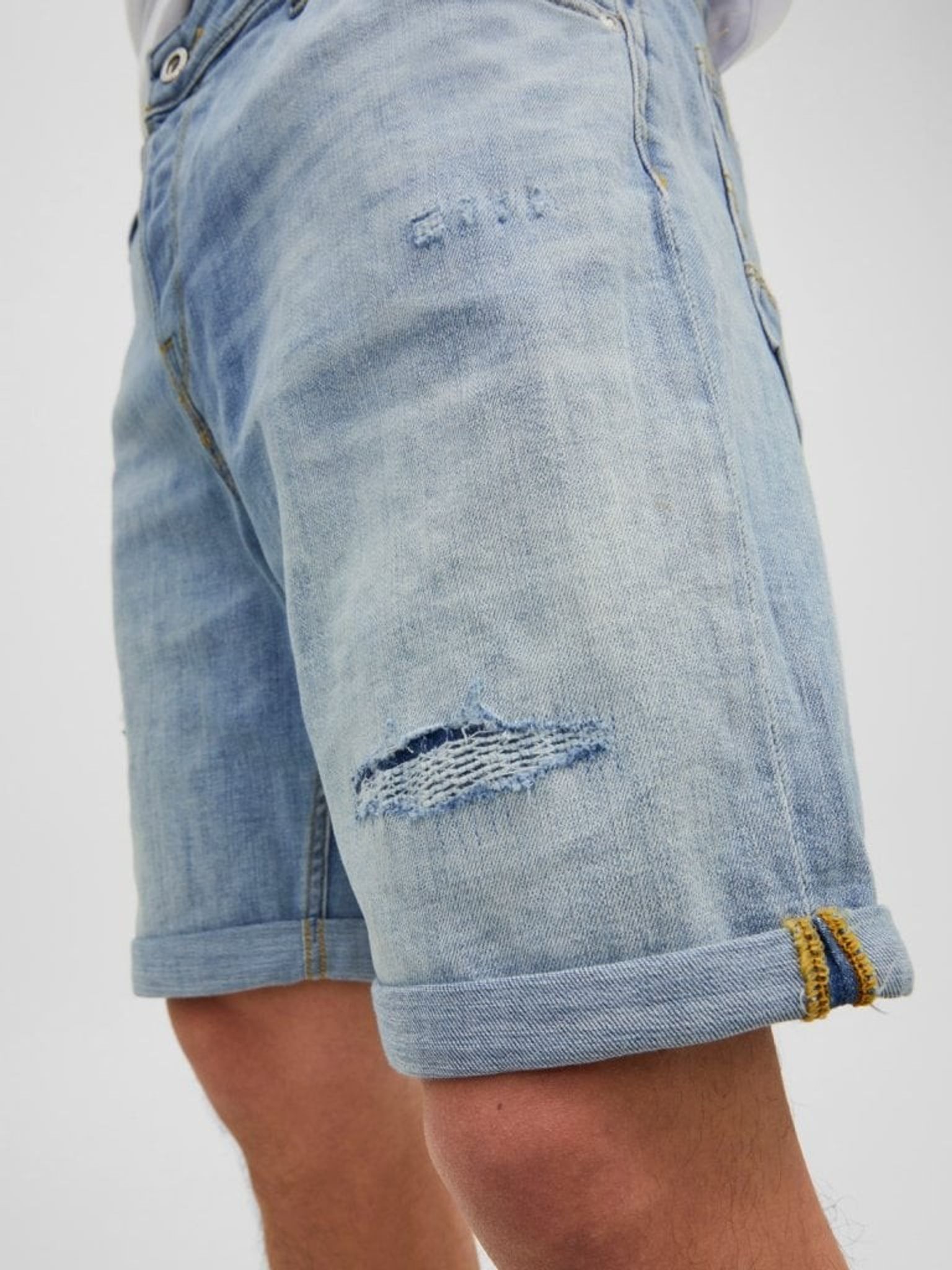 Light blue denim shorts with torns