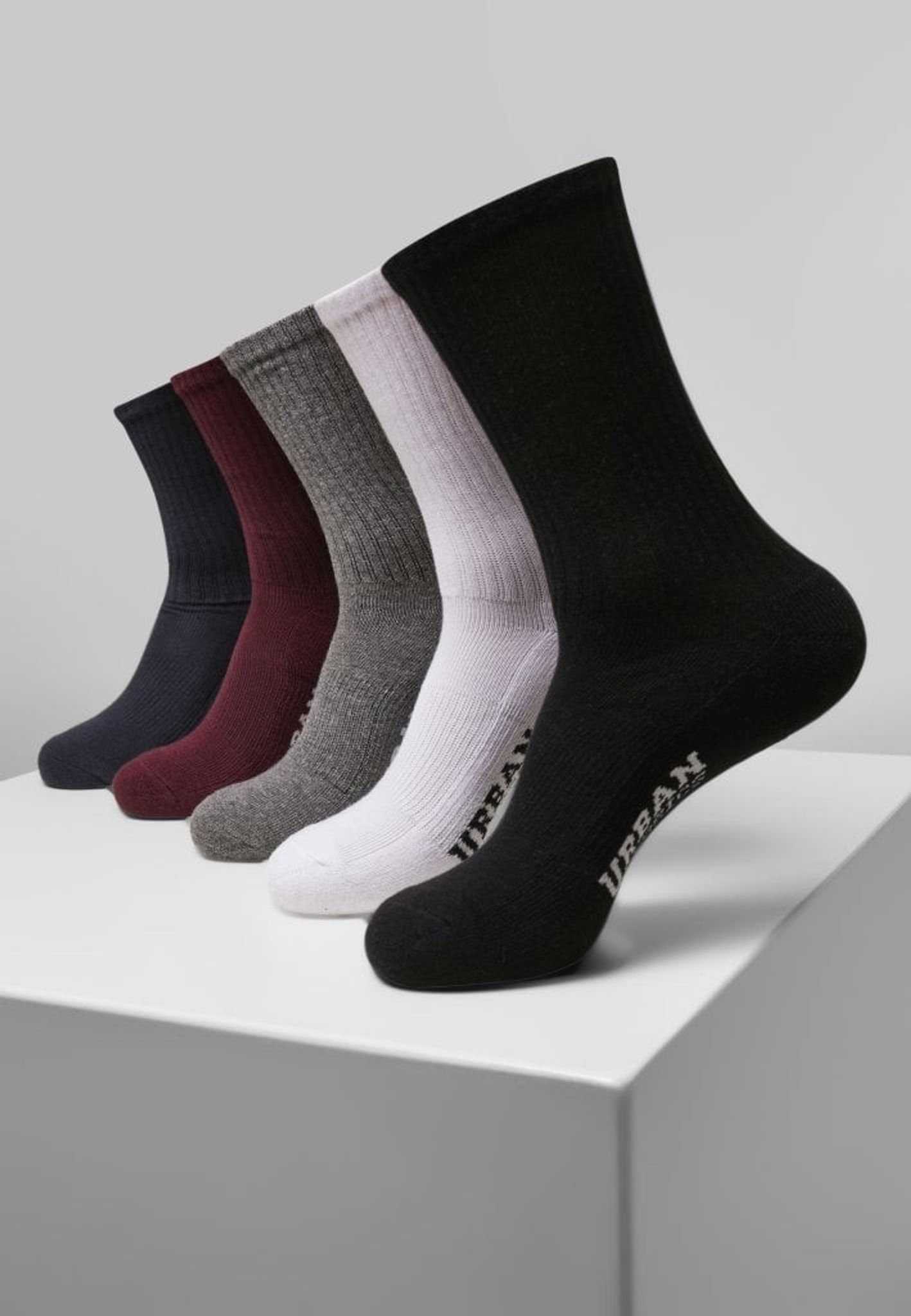 Here you have the classic tennis socks in a 5-pack with mixed colors. Under the sock you have the Urban Classics logo.