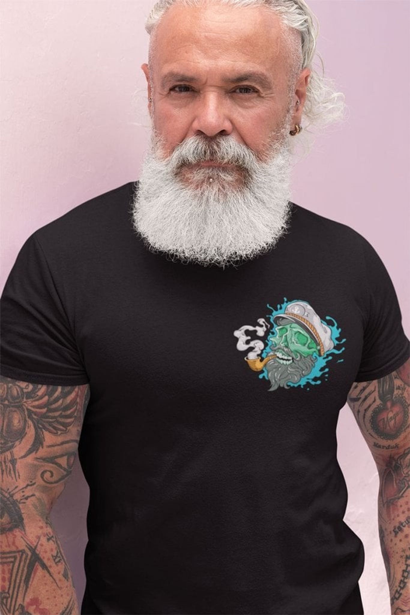 A really soft and comfortable T-shirt with a slightly tailored fit. On the chest is the living dead captain who emerges from the water. A motif inspired by Old School Tattoo.