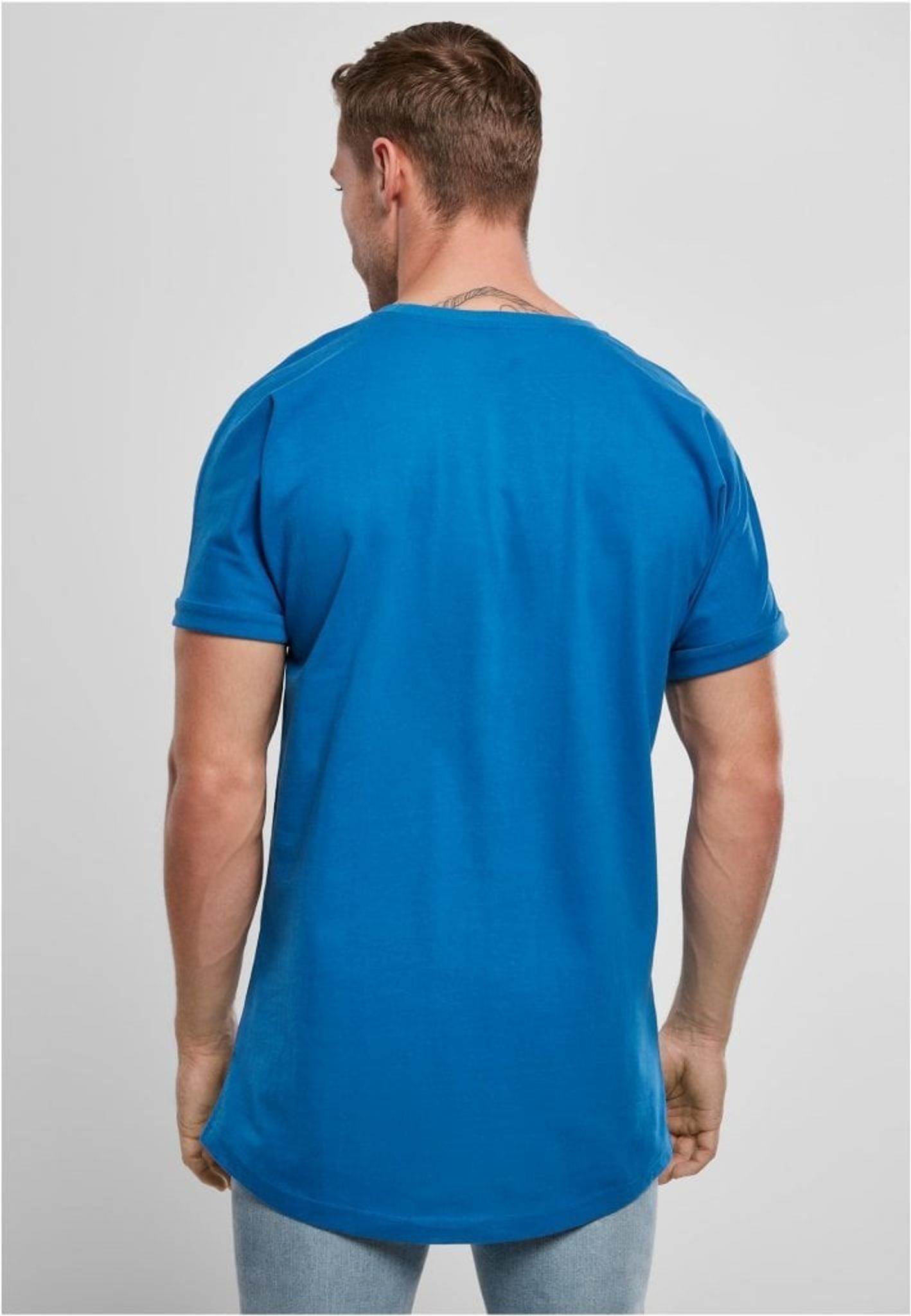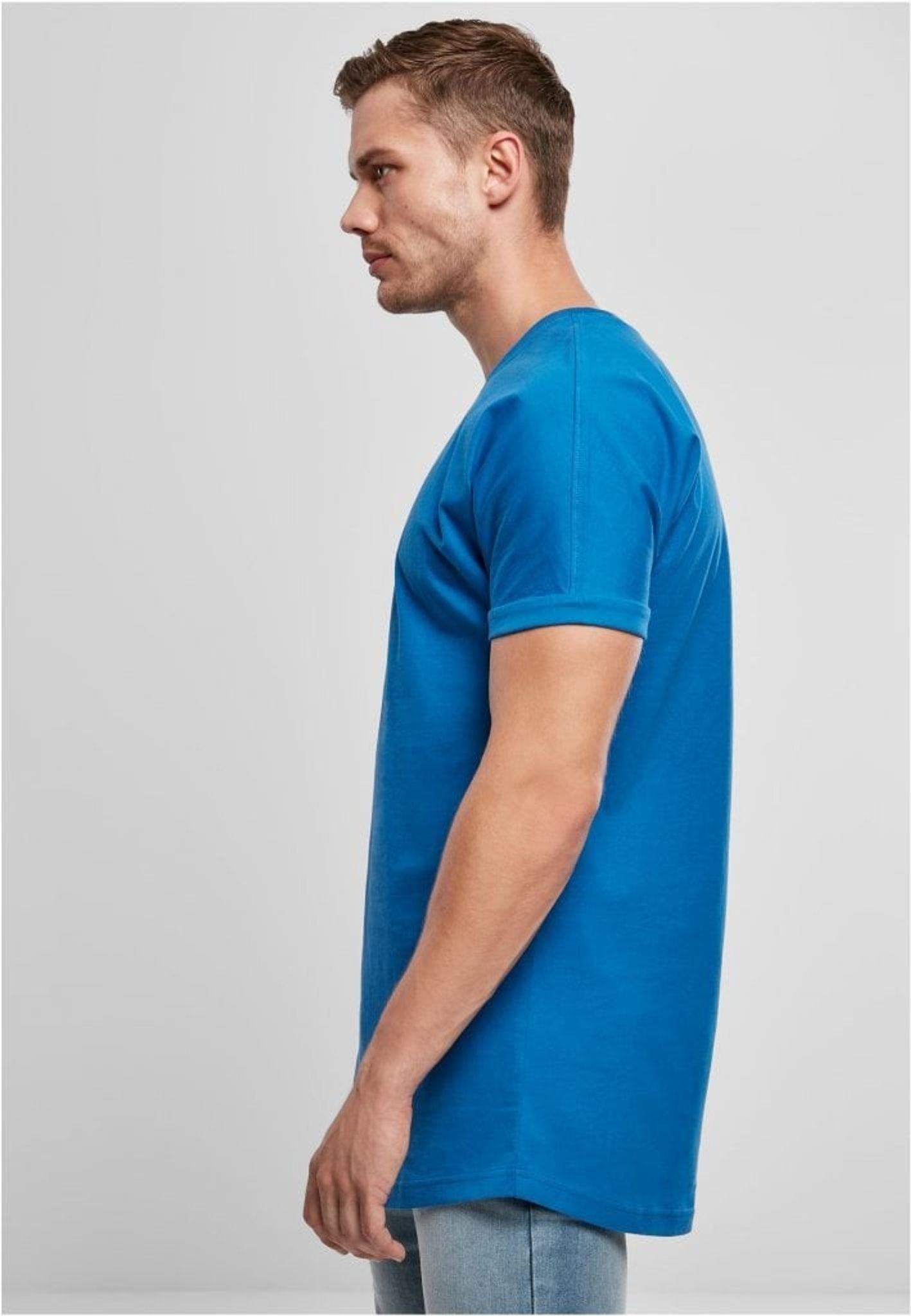 Long Shaped Turnup Tee from Urban Classics which has a long fit and shaped hem, it is a relaxed basic Tee and is available in trendy colors. The cut shoulders and foldable sleeves give a cool touch. Wearing comfort is guaranteed thanks to 100% cotton.