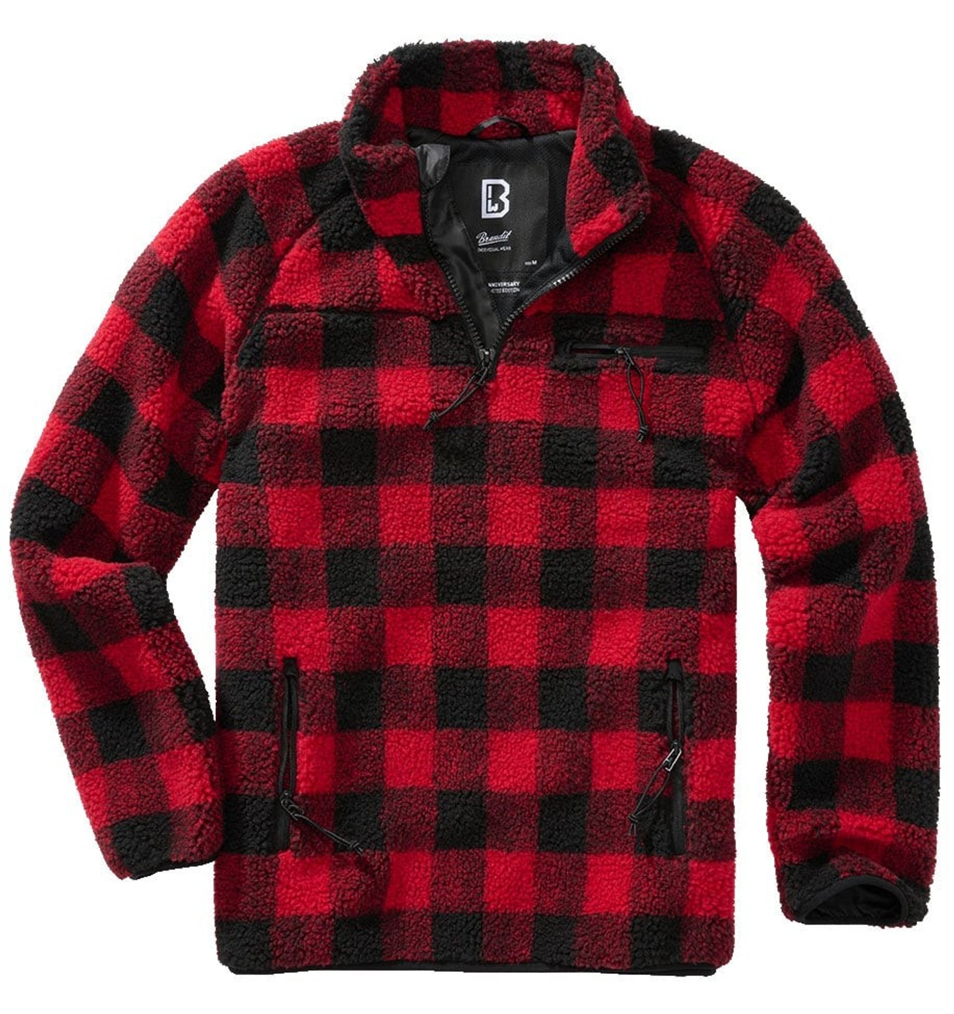 Lumber jacket teddyfleece pullover red/black - men