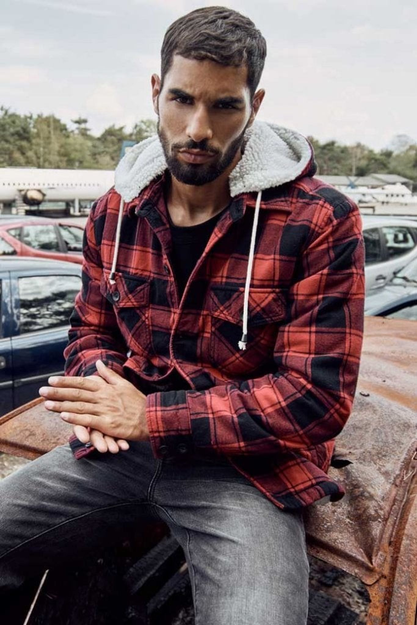 Lumberjacket hooded red / black.