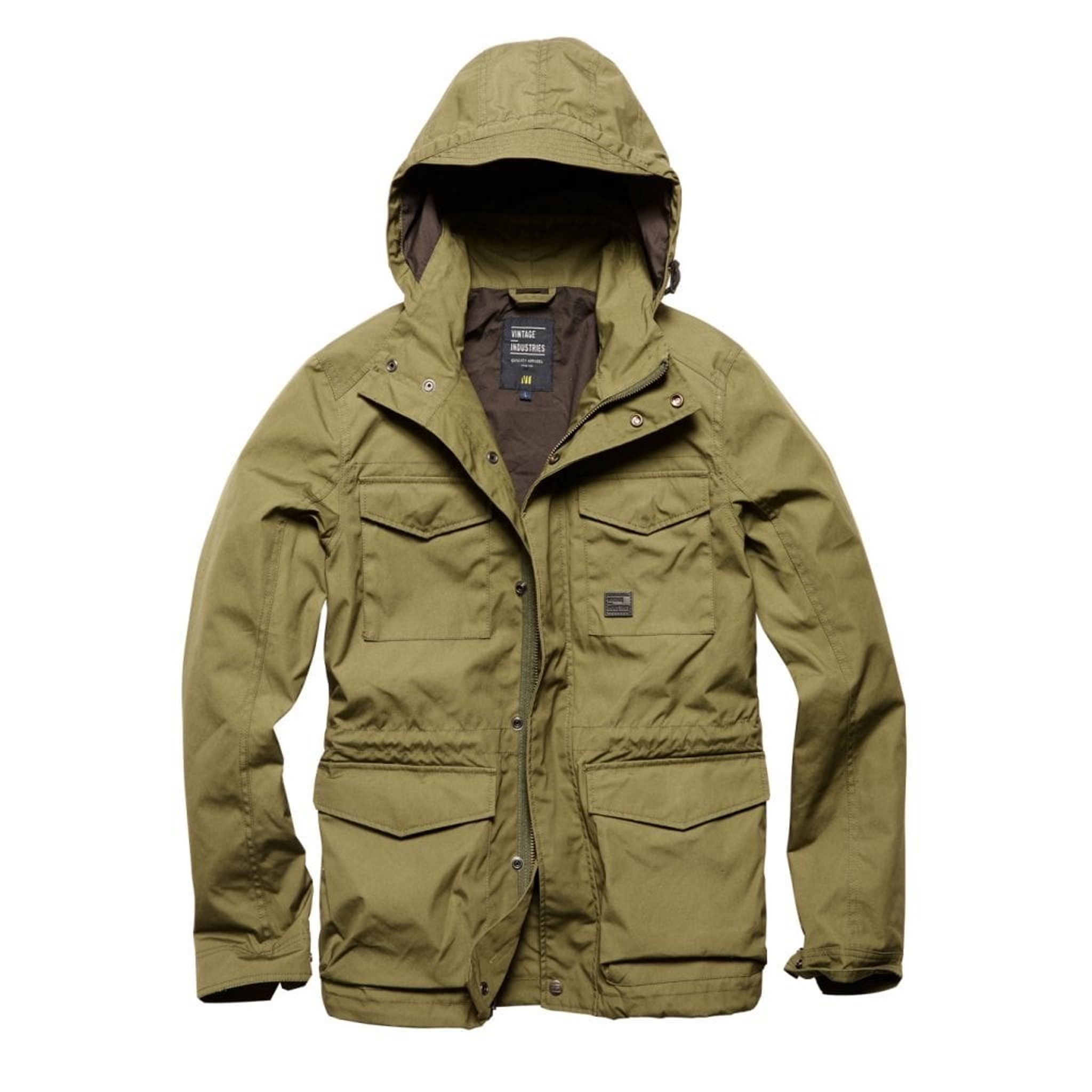 The Parka jacket is made of a fabric that has a water resistant finish.
