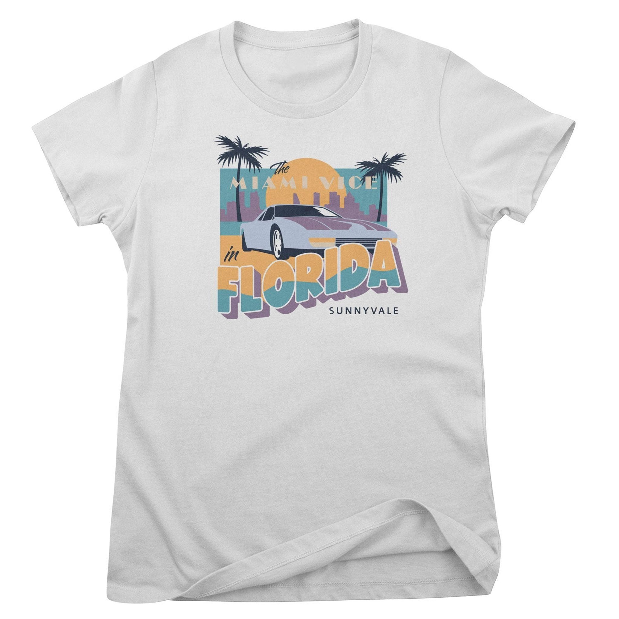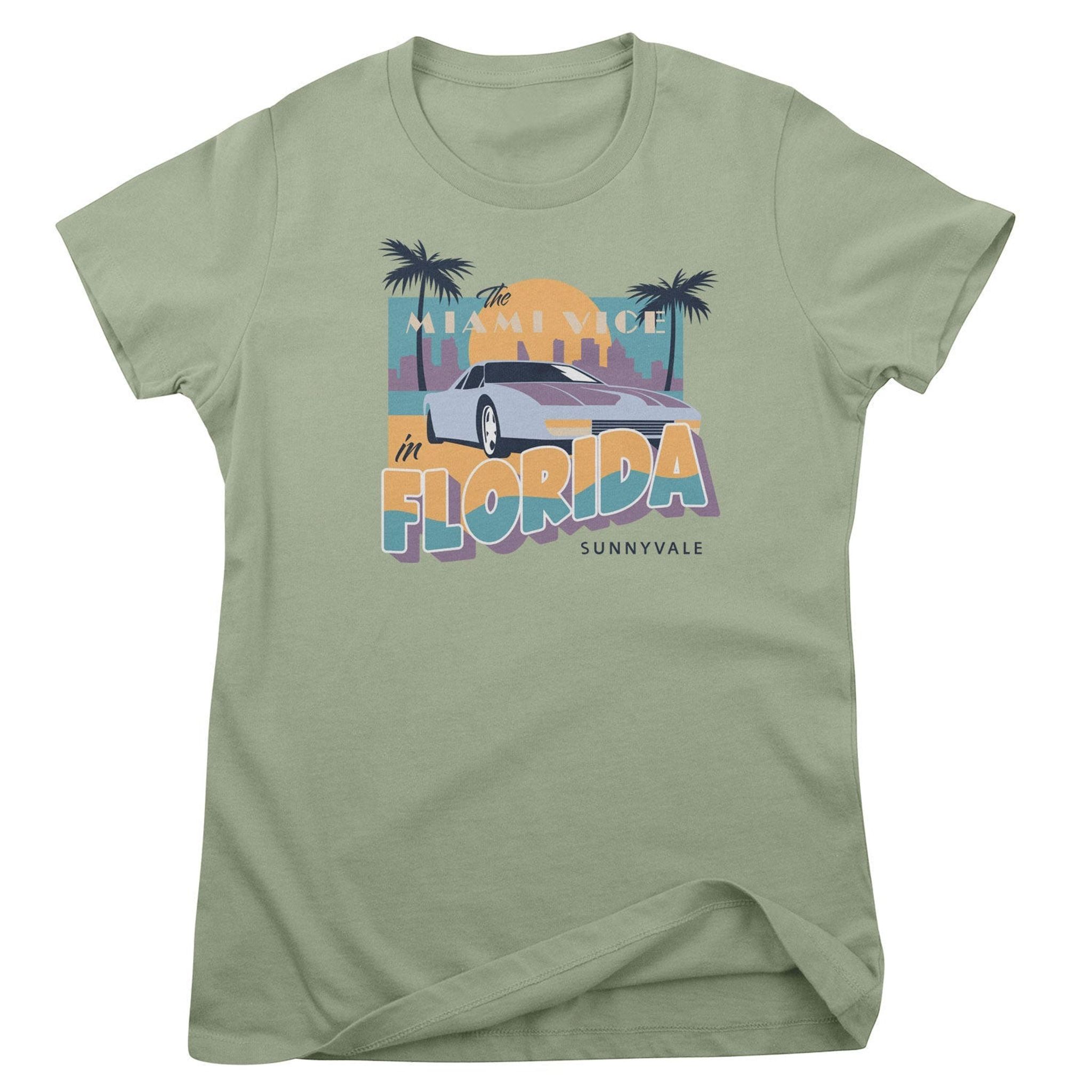 Kliv in i retrovärlden med vår Miami Vice In Florida Girly Tee, perfekt för nostalgiska stunder i 100% bomull.