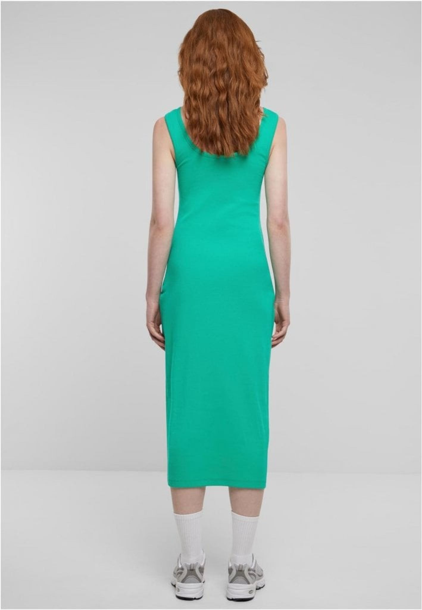 Midi dress in stretchy cotton with round neckline is an elegant and simple dress from Urban Classics. Perfect for a variety of occasions, this dress is sleeveless and has narrow straps. The ribbed texture gives a discreet sophisticated feel.