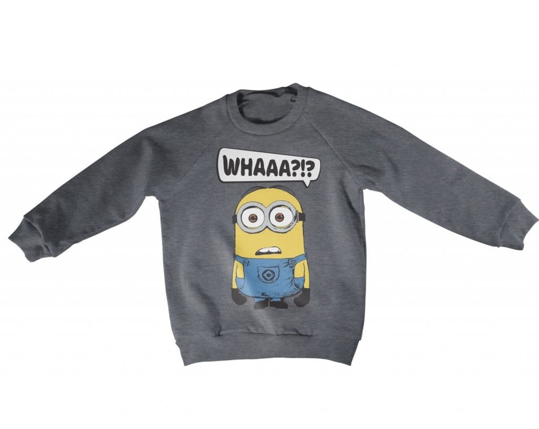 with Jerry's classic exclamation "Whaaa?!?" On the front of the sweater, your child will spread joy and laughter around him, just as the happy minion itself does.