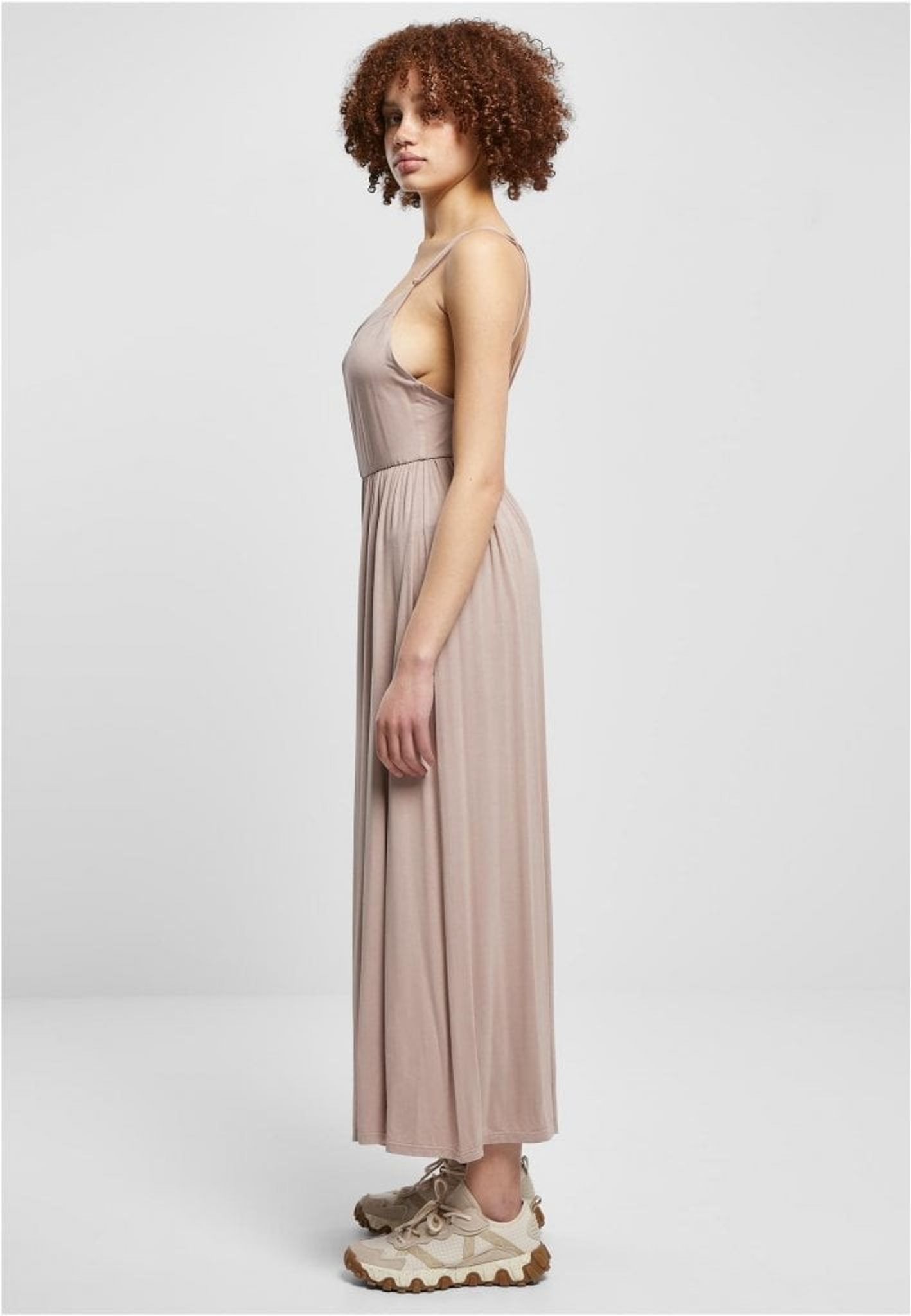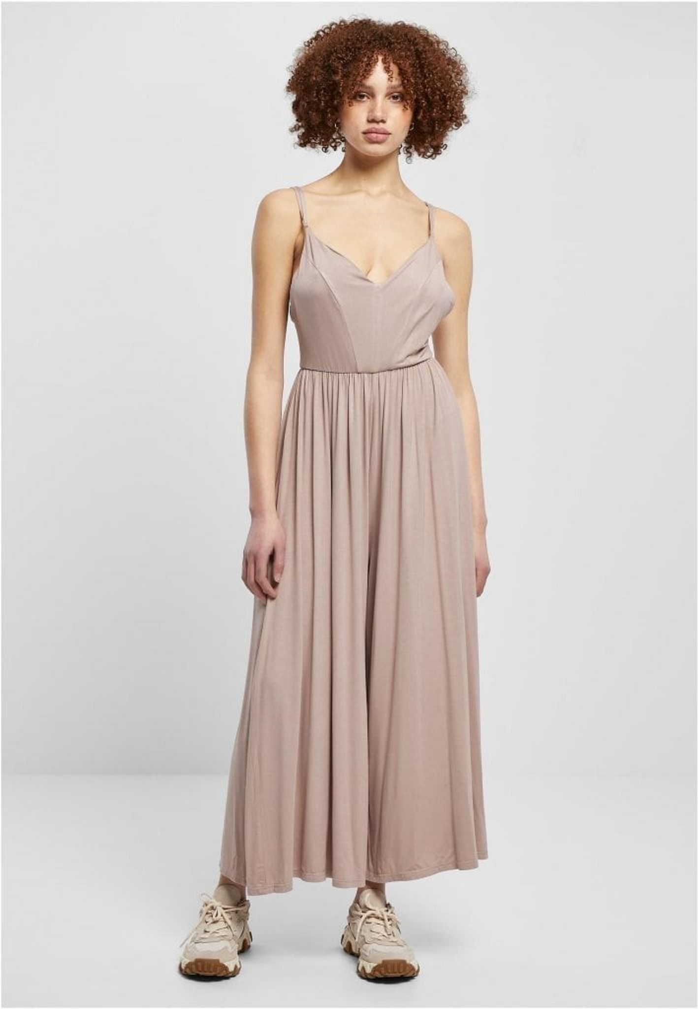 Women's Modal Spaghetti Jumpsuit. This summer high contrast jumpsuit features a V-neckline with adjustable spaghetti straps. The back features crossed straps and dividing seams for a perfect fit. The ¾ length legs flare out into wide and parallel pleats. Made of modal and polyester, this jumpsuit has a loose fit. Material: 77% modal, 23% polyester. Sizes: XS, S, M, L, XL, XXL, 3XL, 4XL and 5XL. Gender: Women. Color: Terracotta, Black, Dusk Rose.