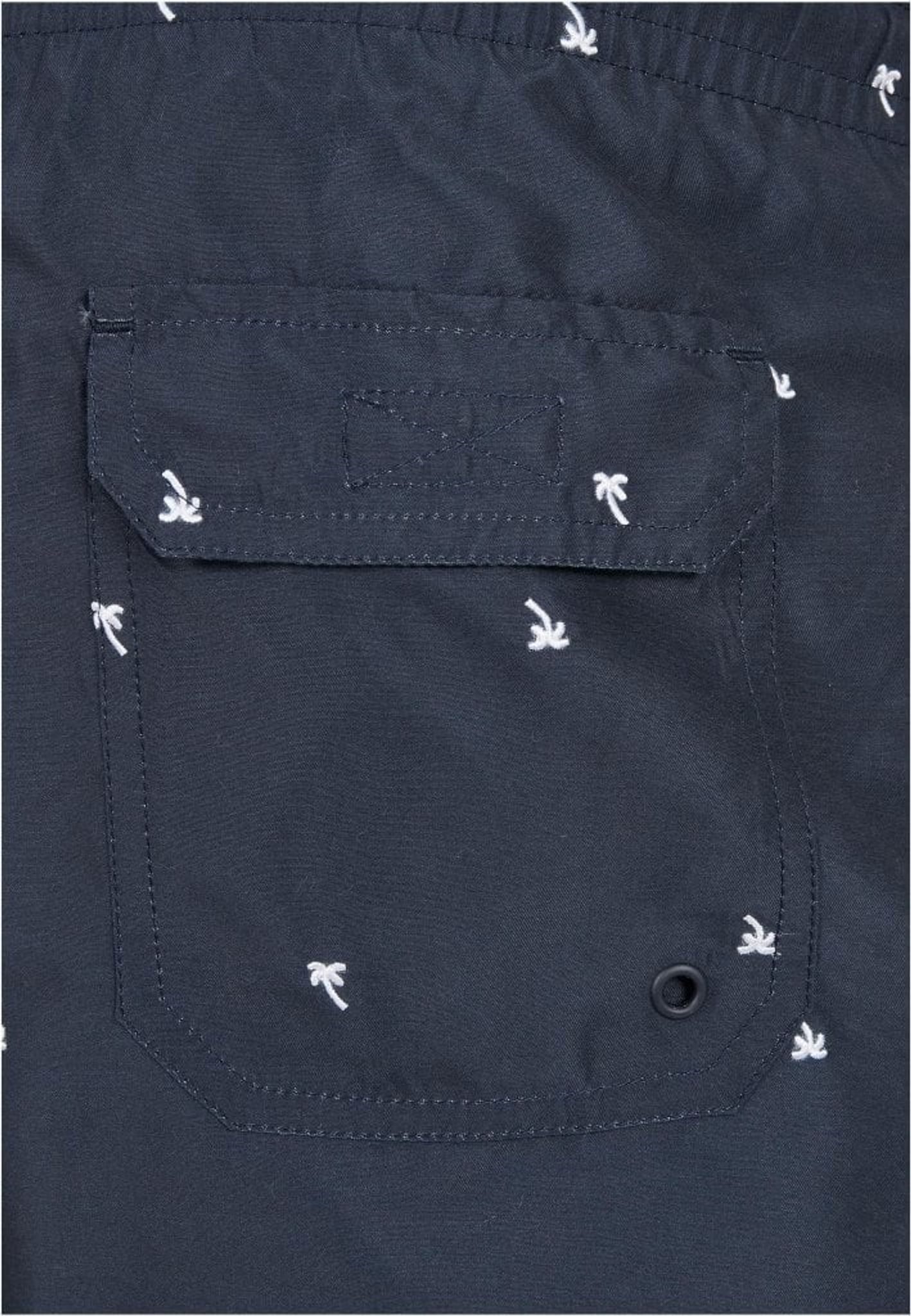 Dark blue swim shorts with palm trees
