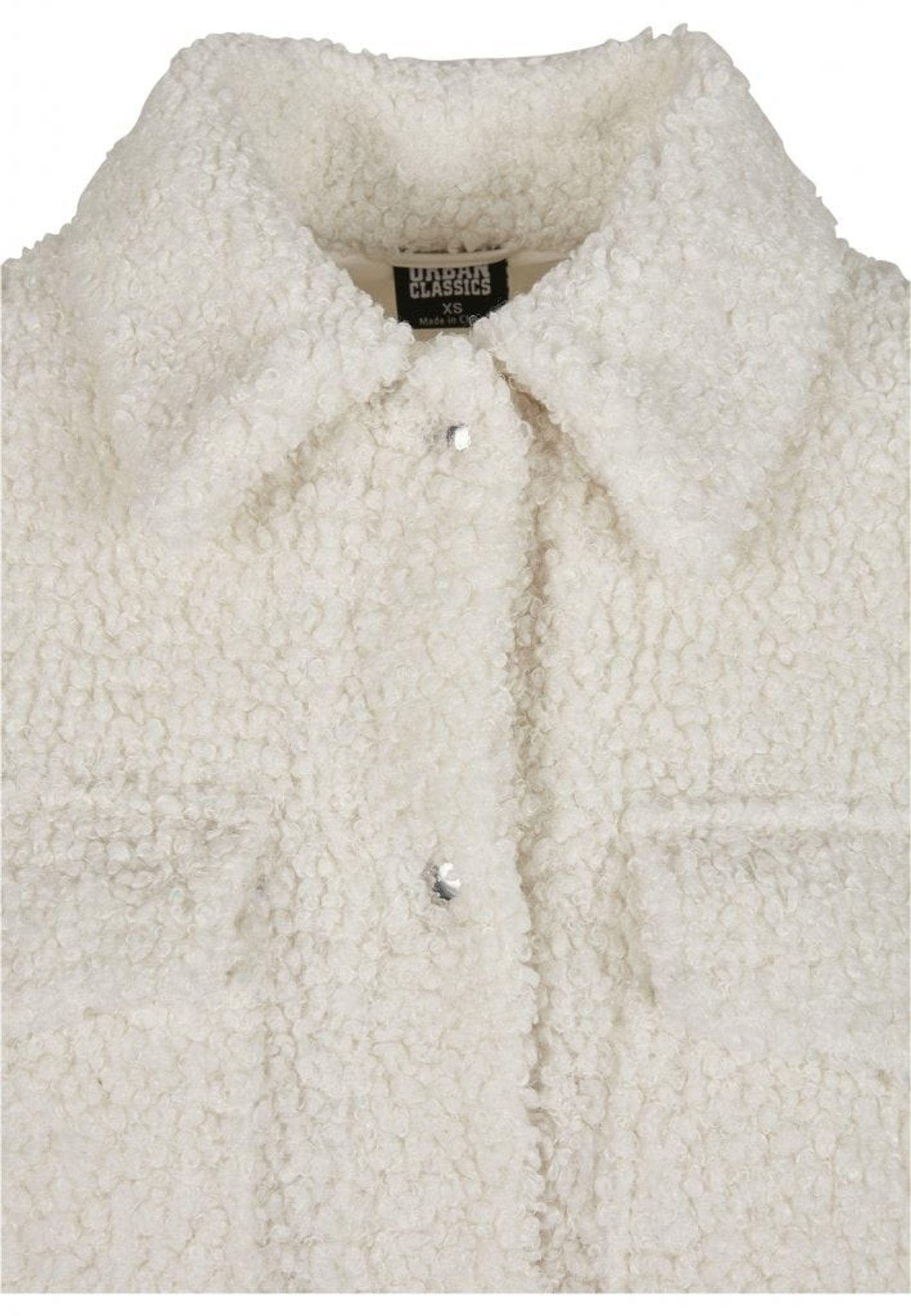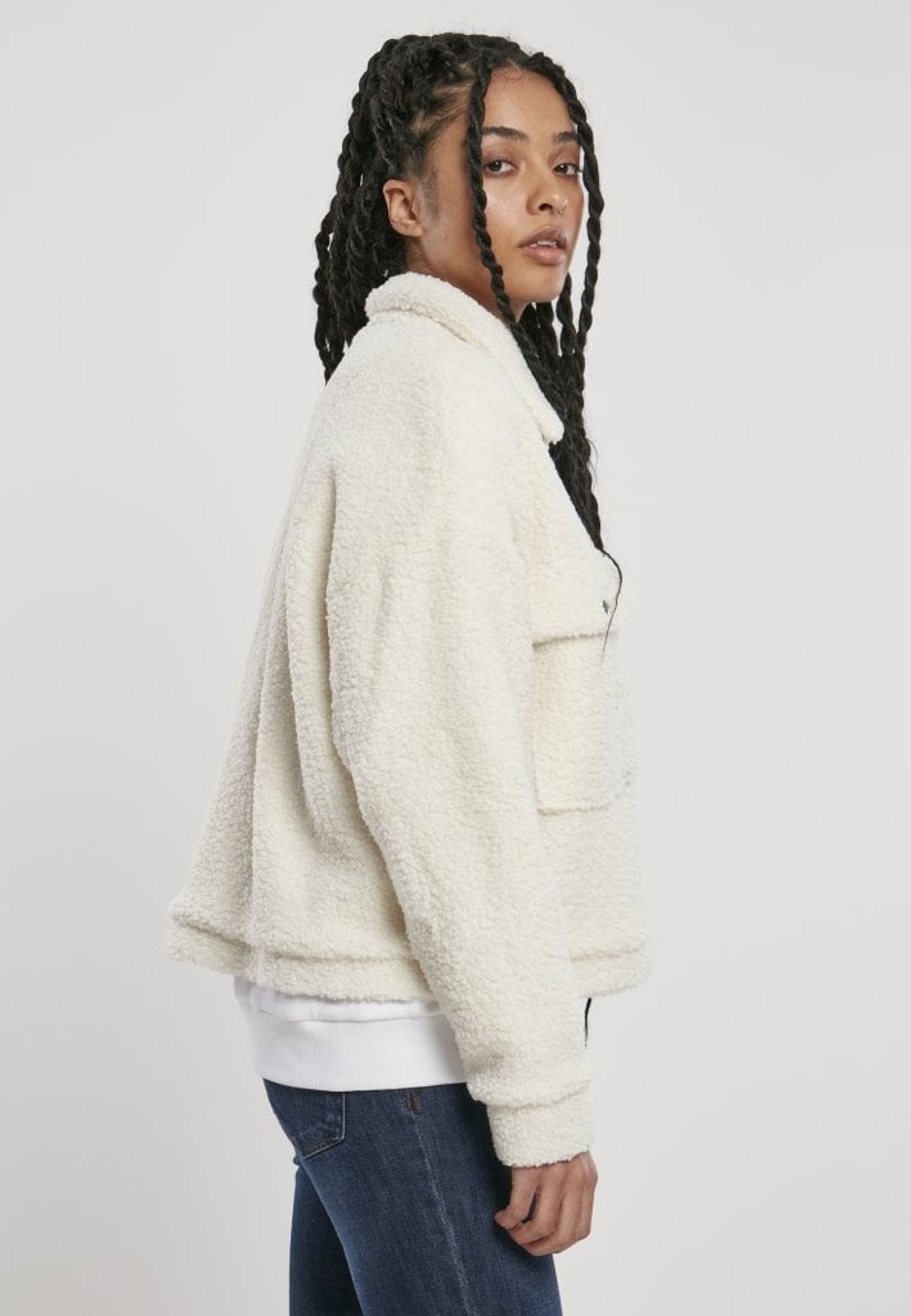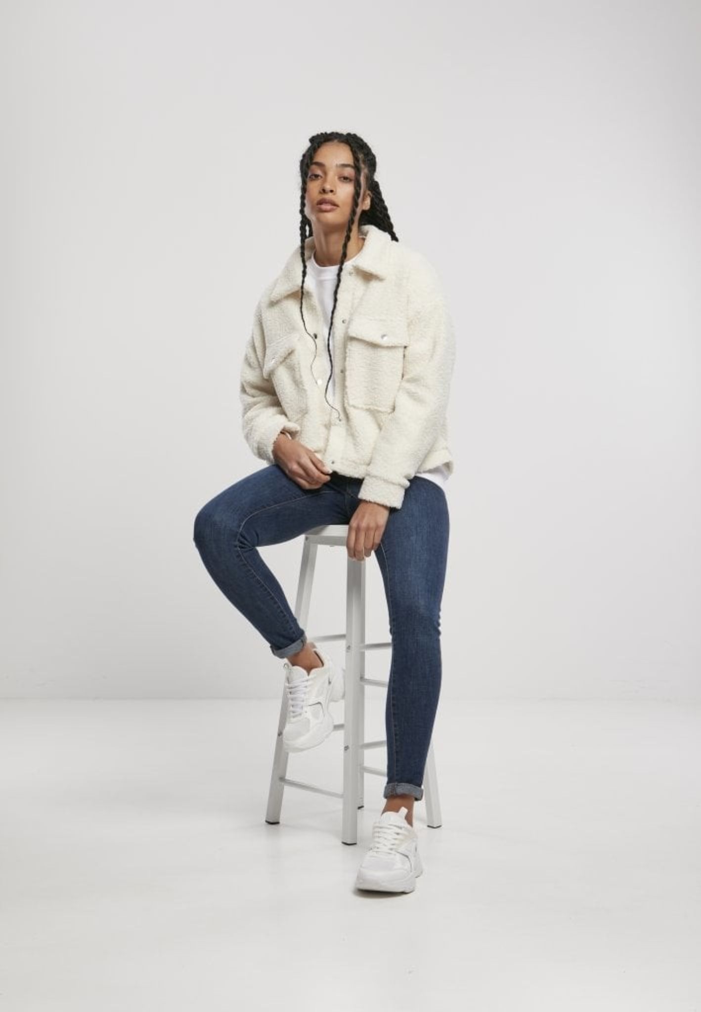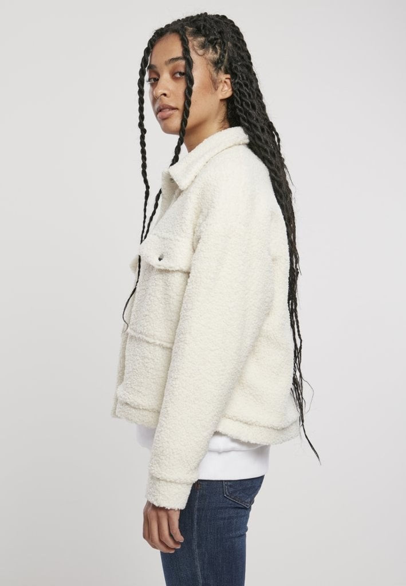 The model on this jacket is spacious and similar to a regular denim jacket but in a lovely white teddy fabric.