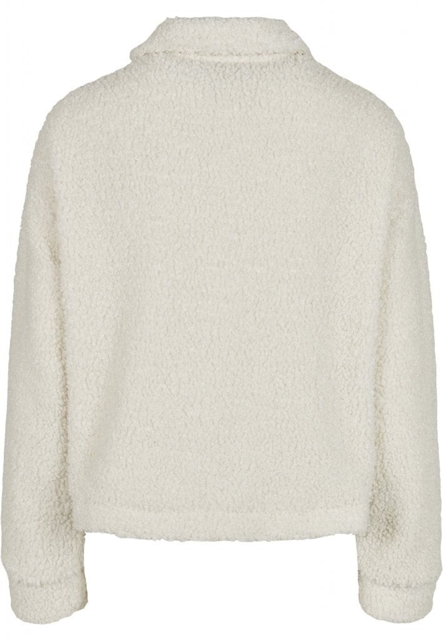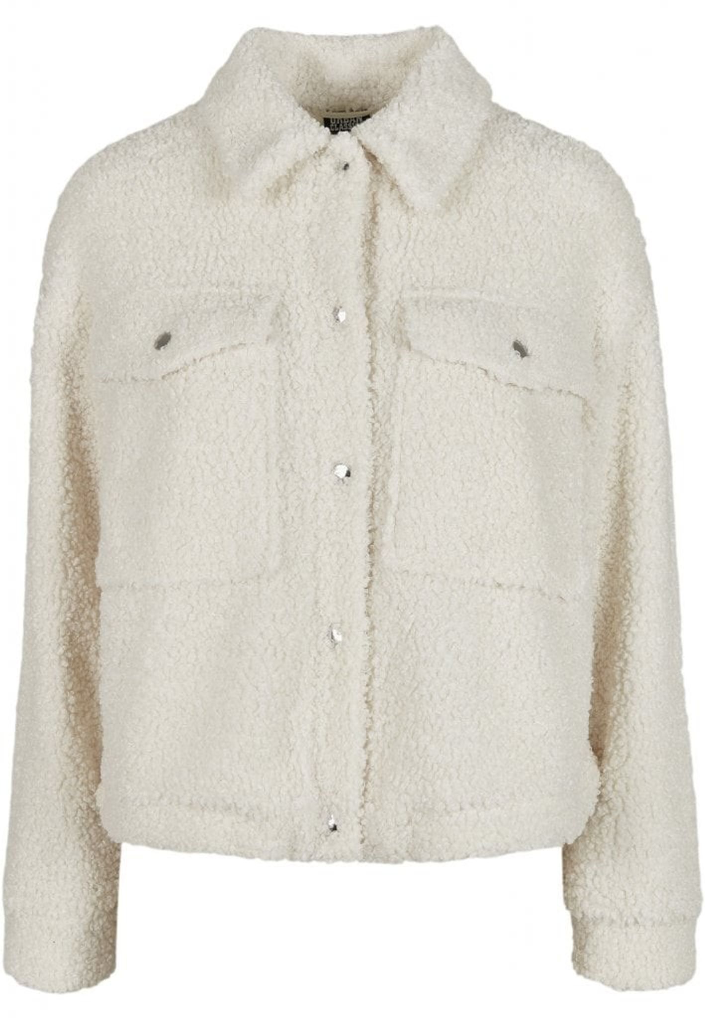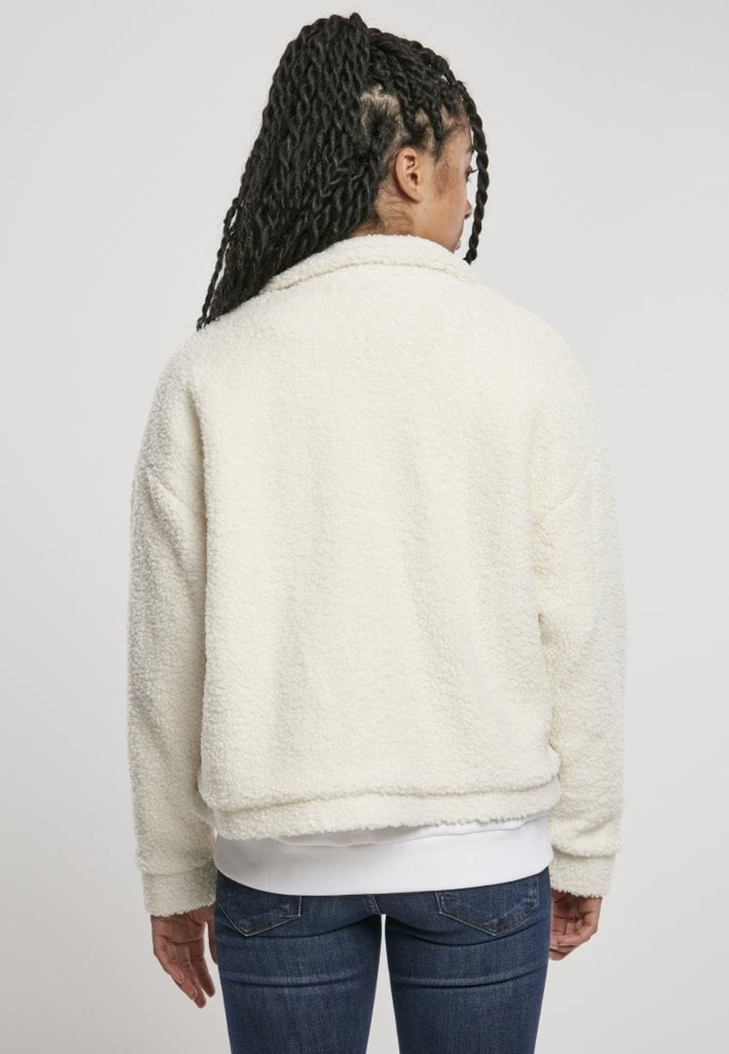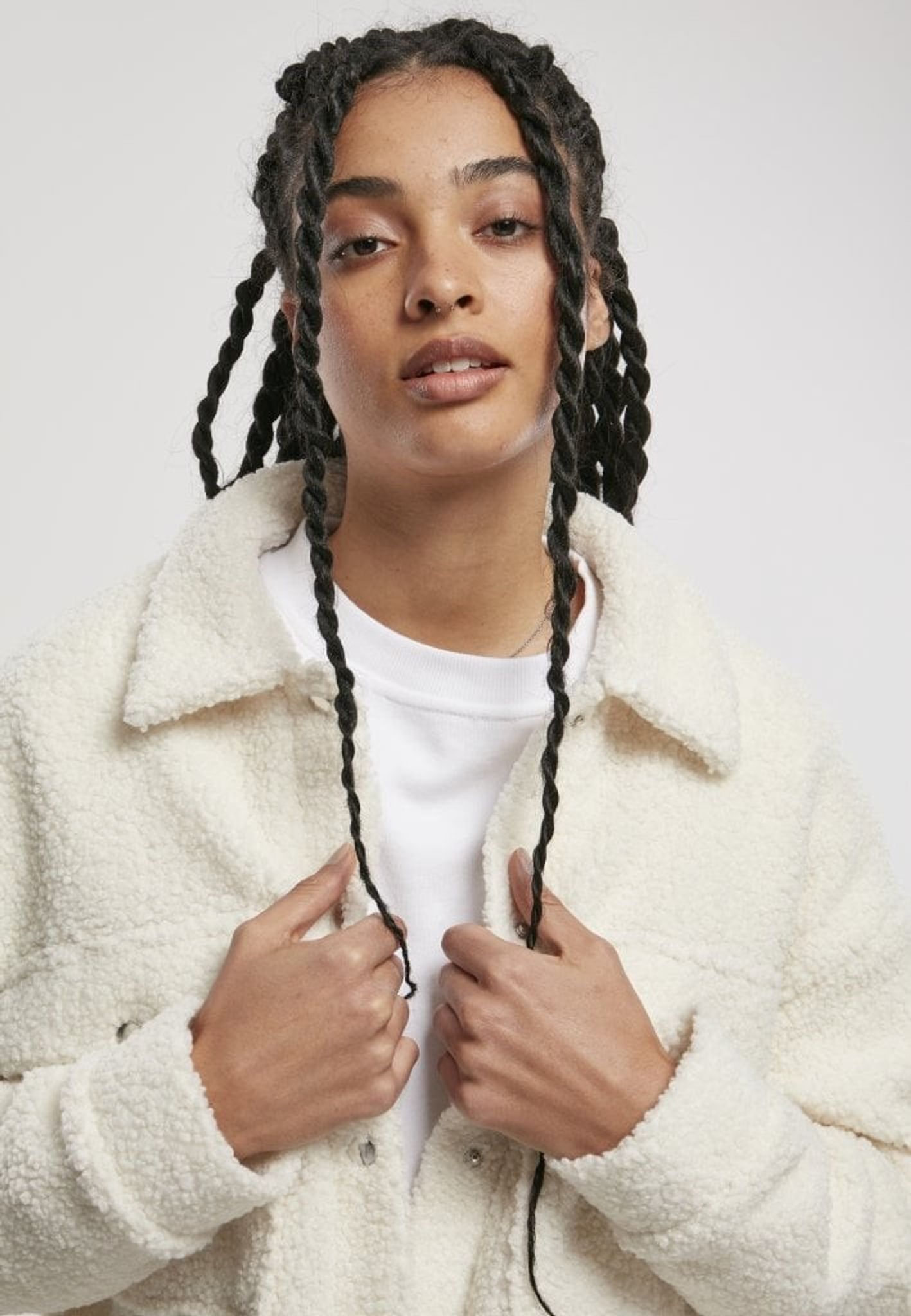The model on this jacket is spacious and similar to a regular denim jacket but in a lovely white teddy fabric.