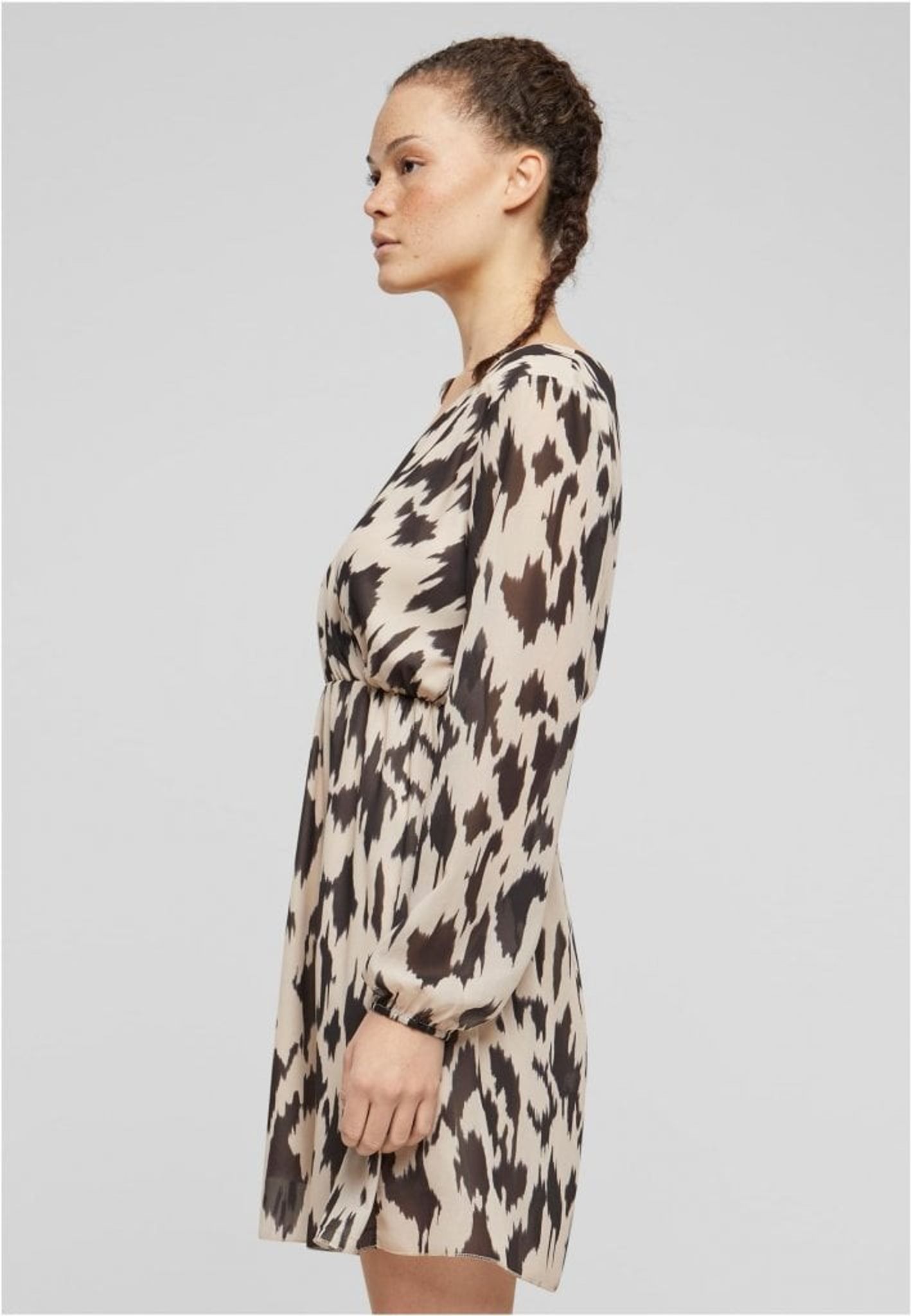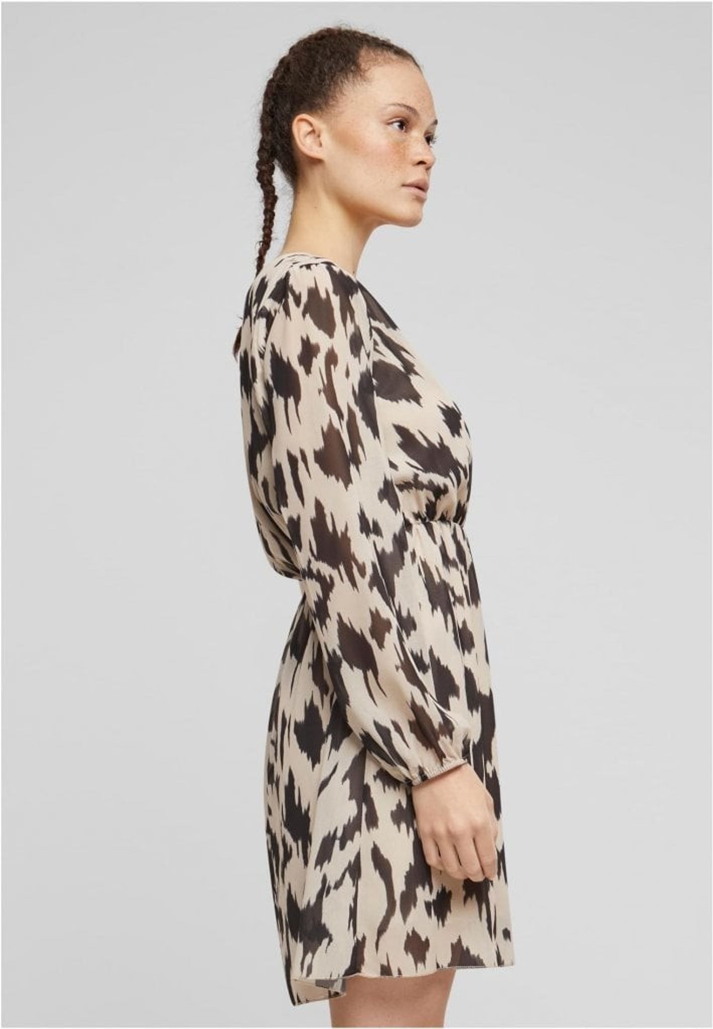 The bold yet sophisticated color combination in the print creates a powerful visual impact, while the abstract pattern keeps the dress contemporary and eye-catching. Made from a light and airy material, this dress offers a combination of comfort and style, making it suitable for everything from work meetings to evening events.