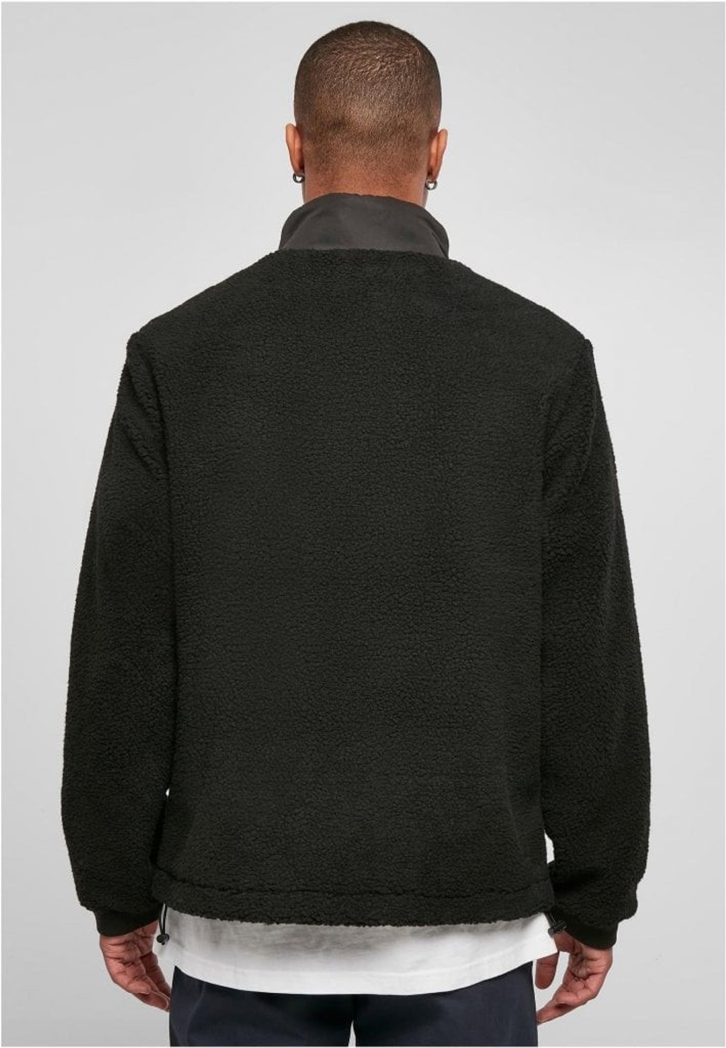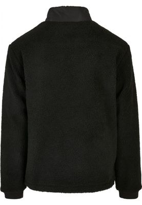 The stylish men's jacket presents itself with a contrasting fabric combination. The body and sleeves are made of fluffy sherpa, while the chest shines with shiny polyester fabric. Two chest pockets with hidden zippers put harmonious accents and supplemented with two side pockets and comfortable ribbed cuffs. The jacket has a zipper and also offers lacing and stops at the bottom edge for better fit at colder temperatures. Additional comfort is created with a loose fit and a pleasant charmeuse feed.