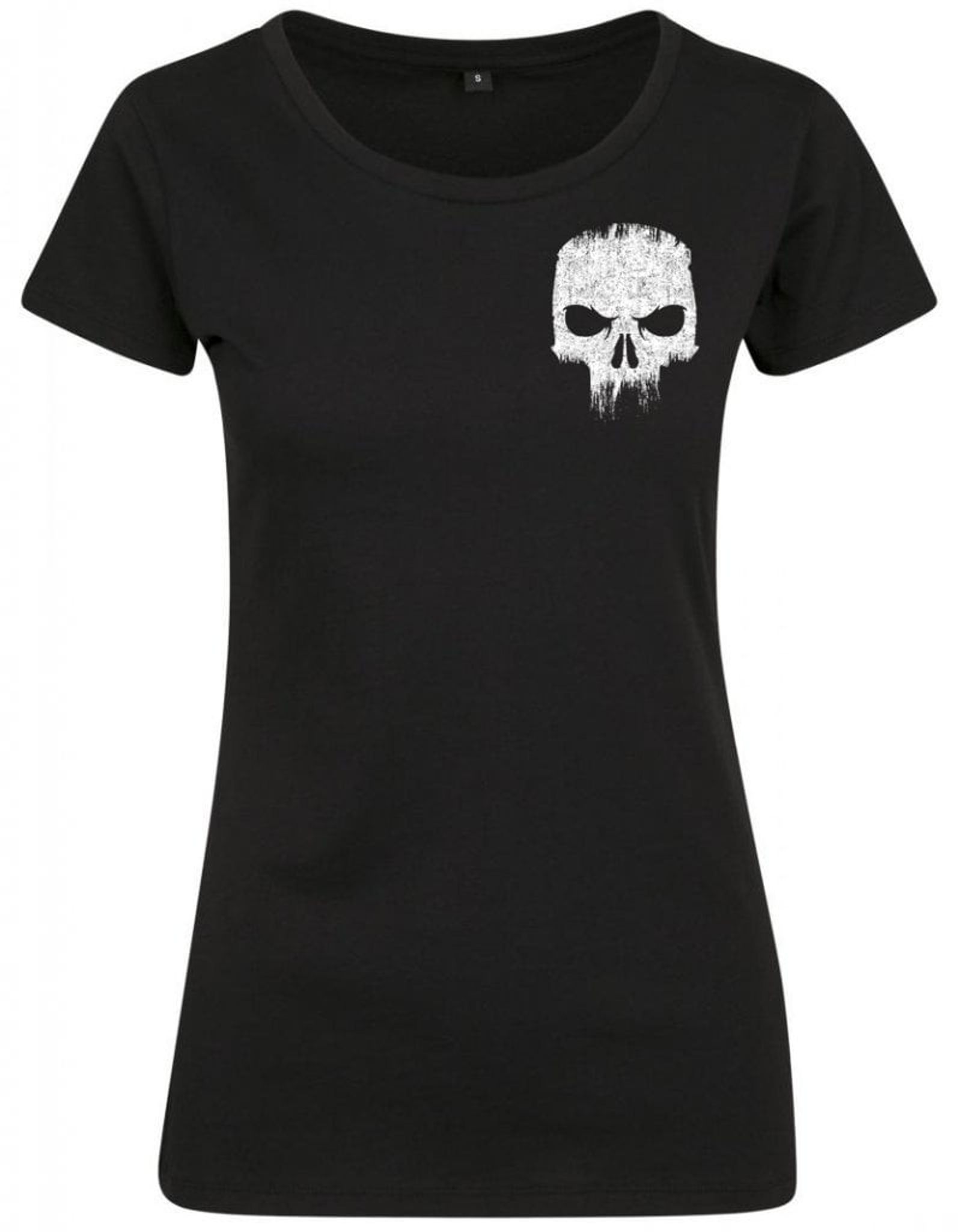 A black T-shirt in cotton fabric and with the face of an evil reaper looking out of the fabric.