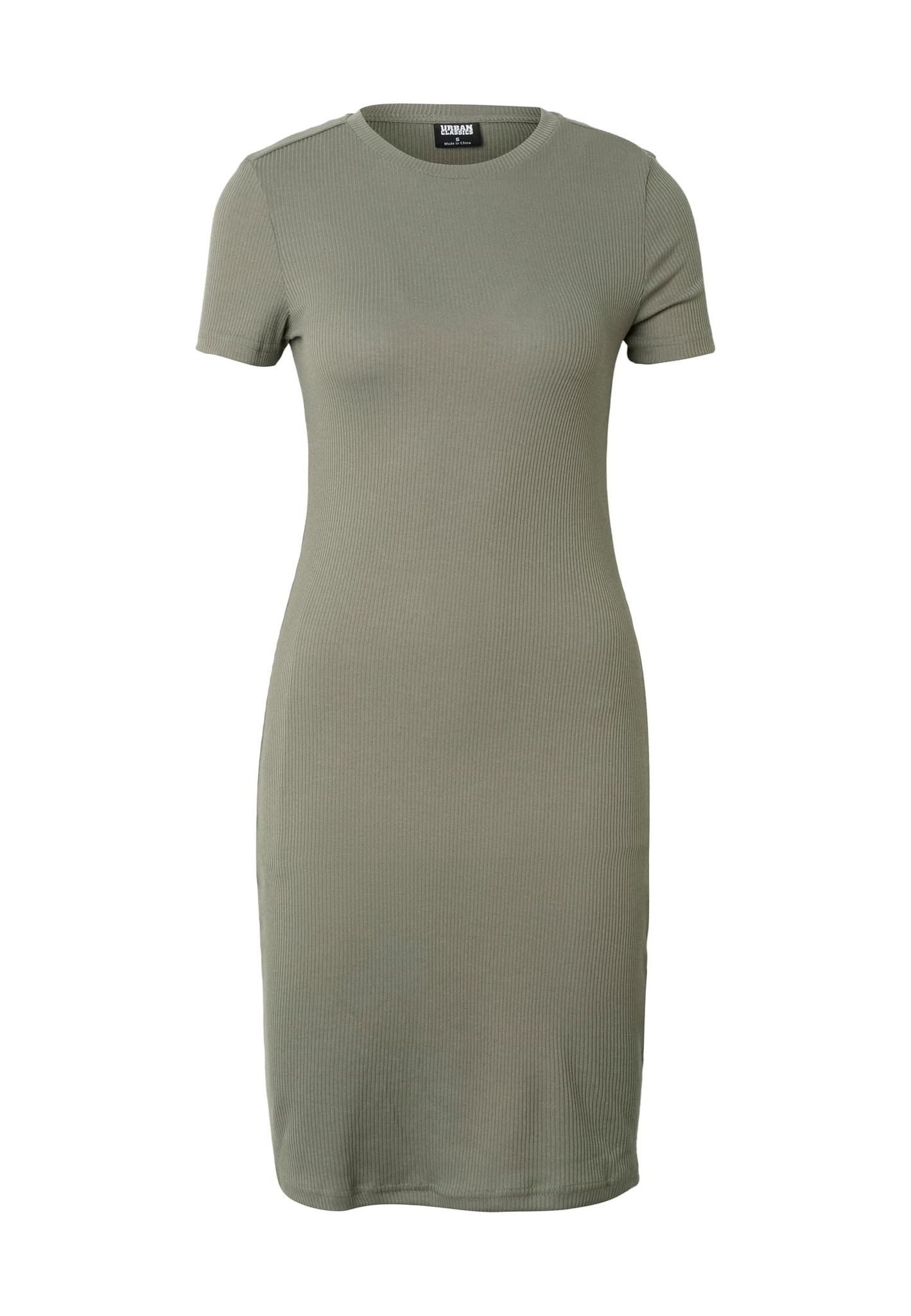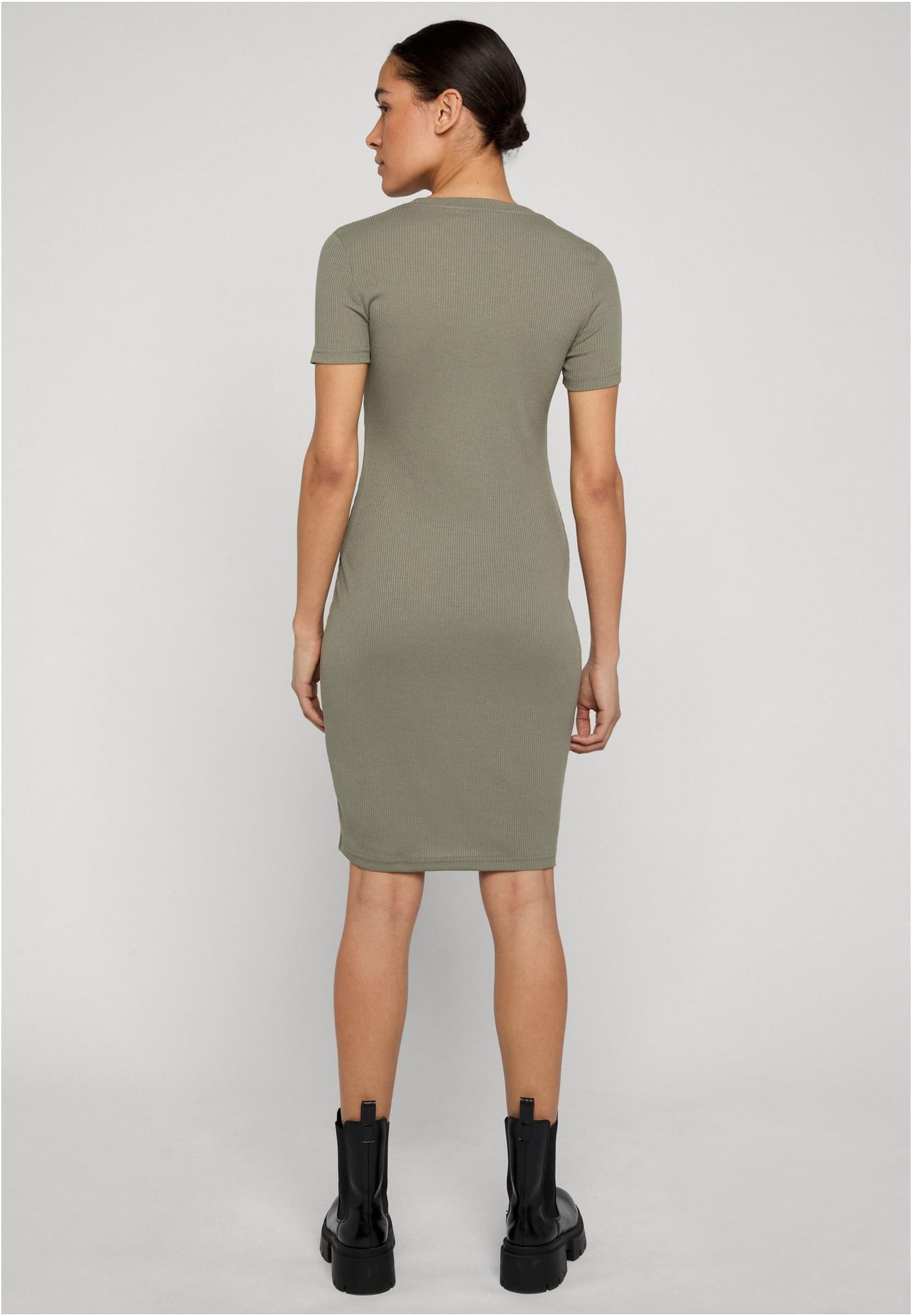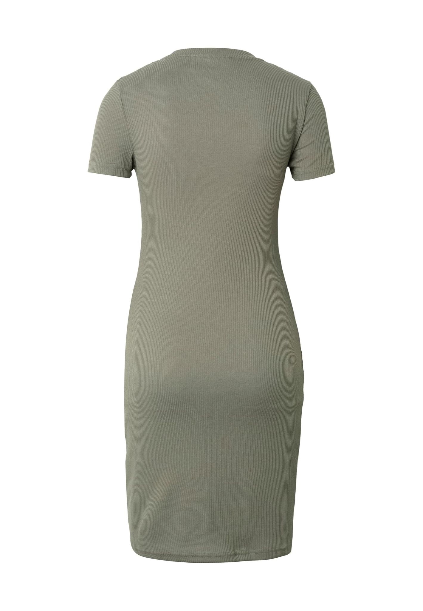 Ribbad t-shirtklänning för dam – ljus olivgrön