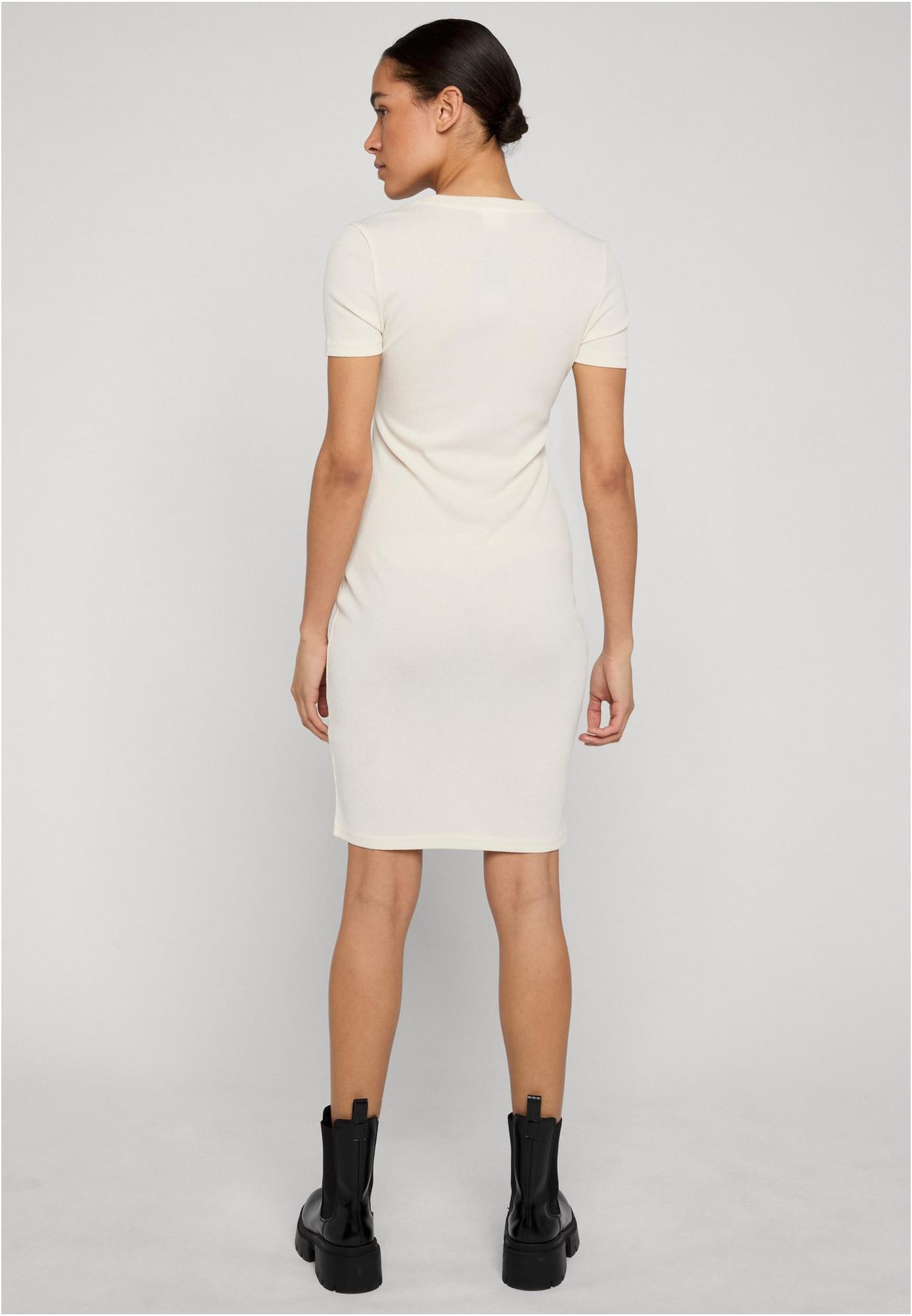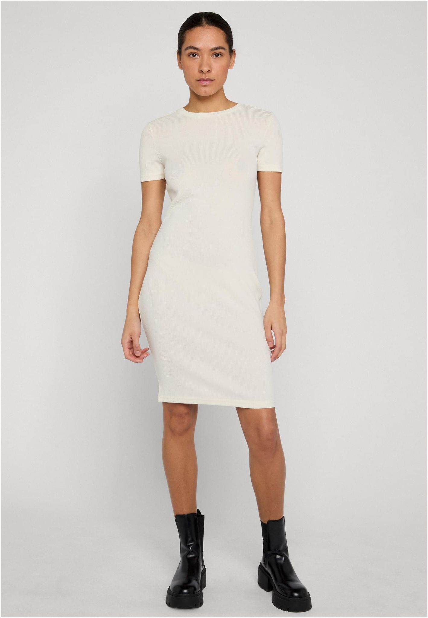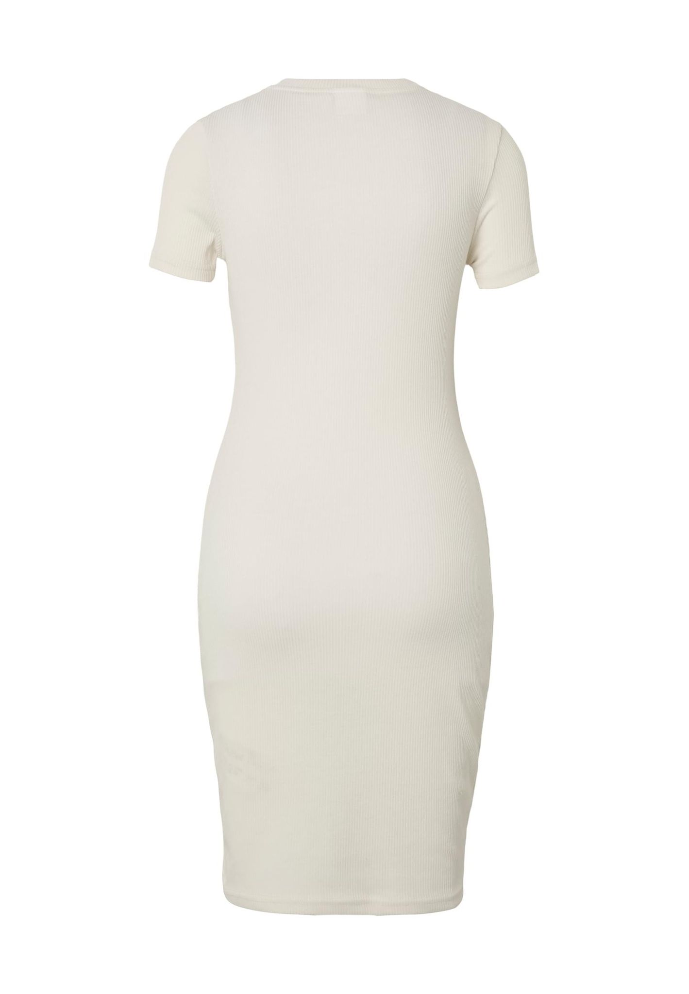 T-shirtklänning för dam i vit sand med figurnära passform och medeltjock tygkänsla.