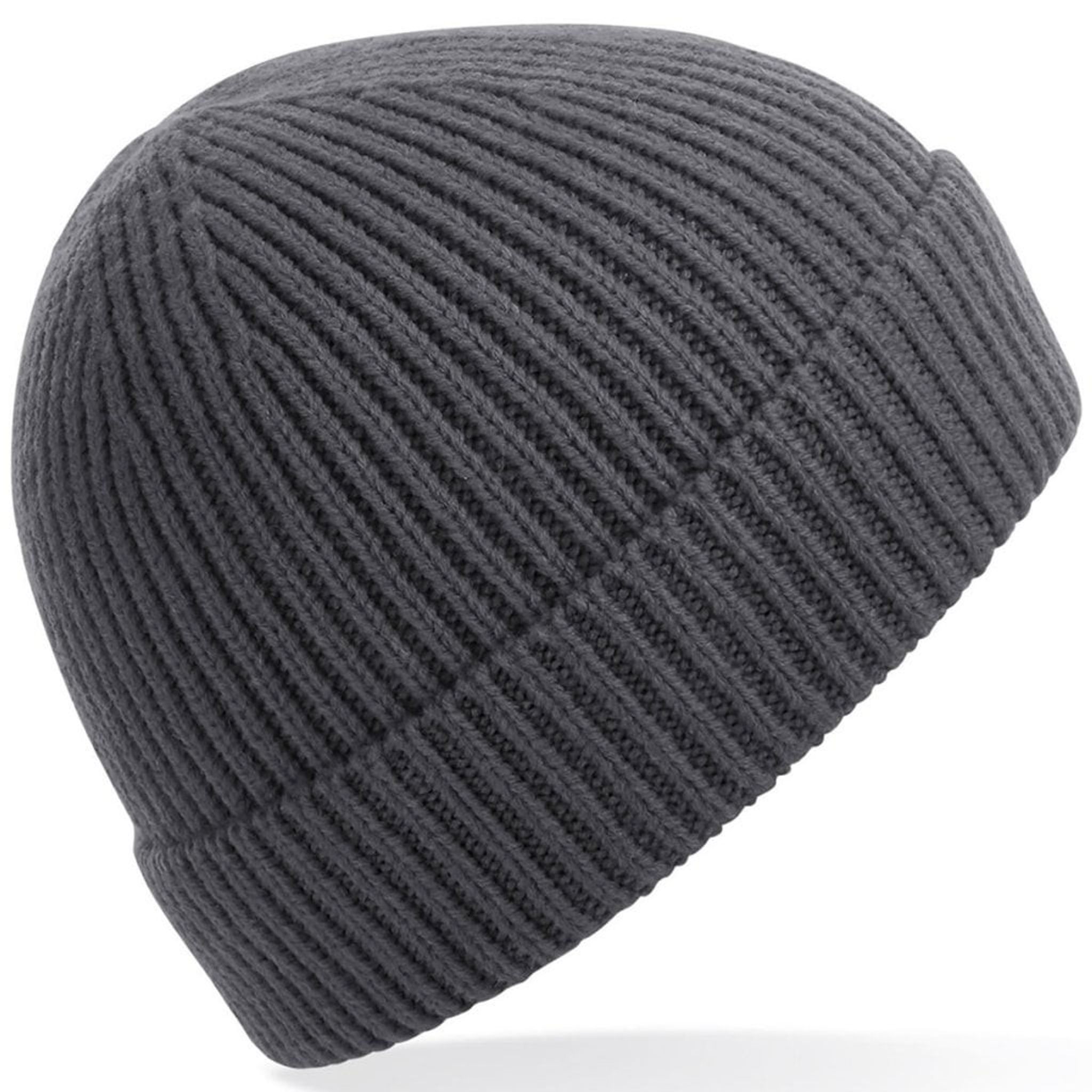 A stylish and high-quality ribbed hat with detailed and robust knitting.