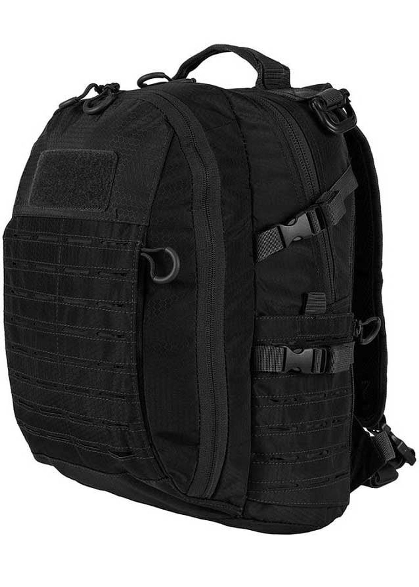 The backpack is equipped with laser-cut MOLLE bulbs on all sides, making it possible to attach additional compatible MOLLE pockets. Inside the backpack there are several practical storage pockets that are useful for everyday use.
