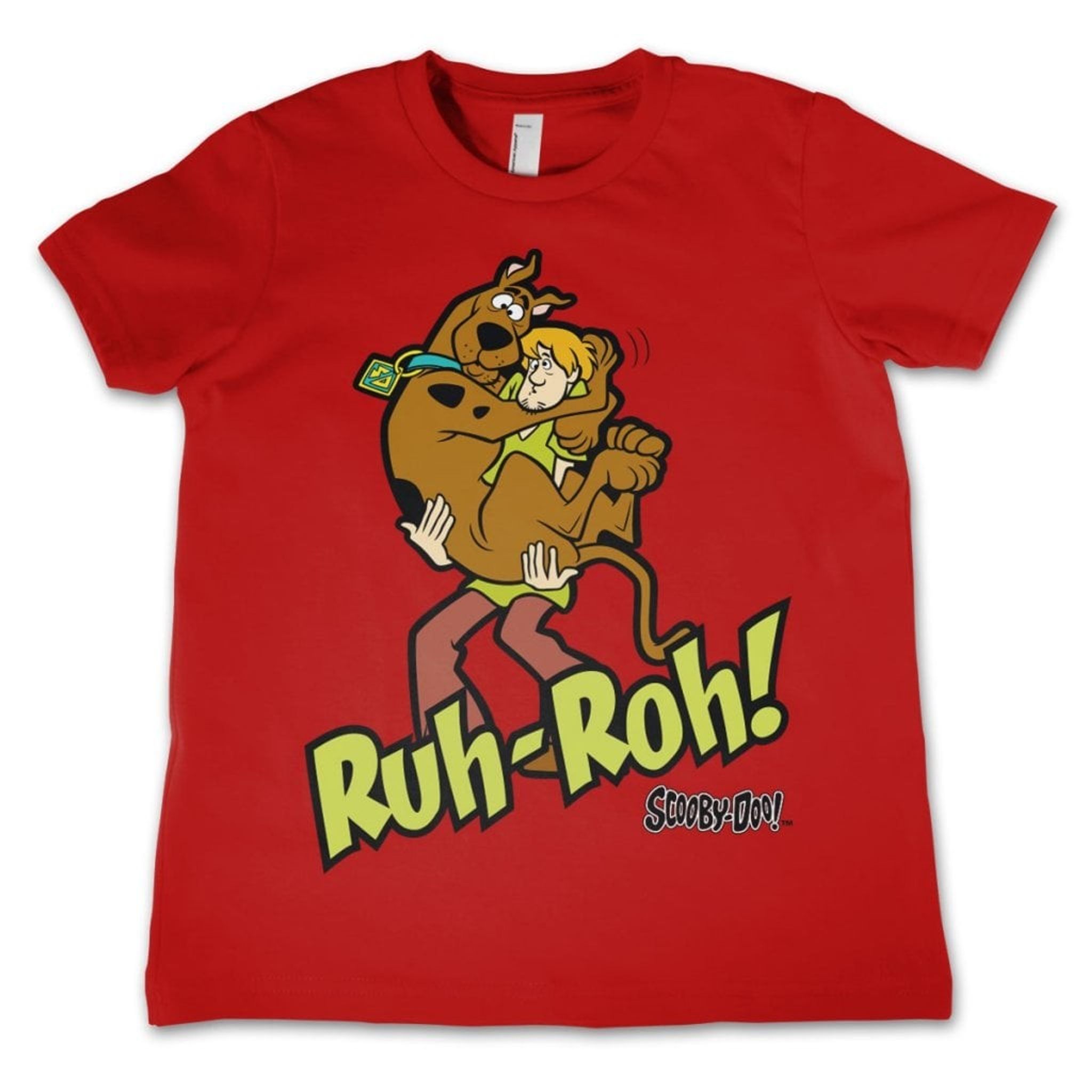 Scooby Doo Ruh-Ruh Kids Tee is a t-shirt perfect for fans of the beloved cartoon series Scooby Doo. On the t-shirt there is a picture of Shaggy and Scooby Doo, two of the main characters in the series.