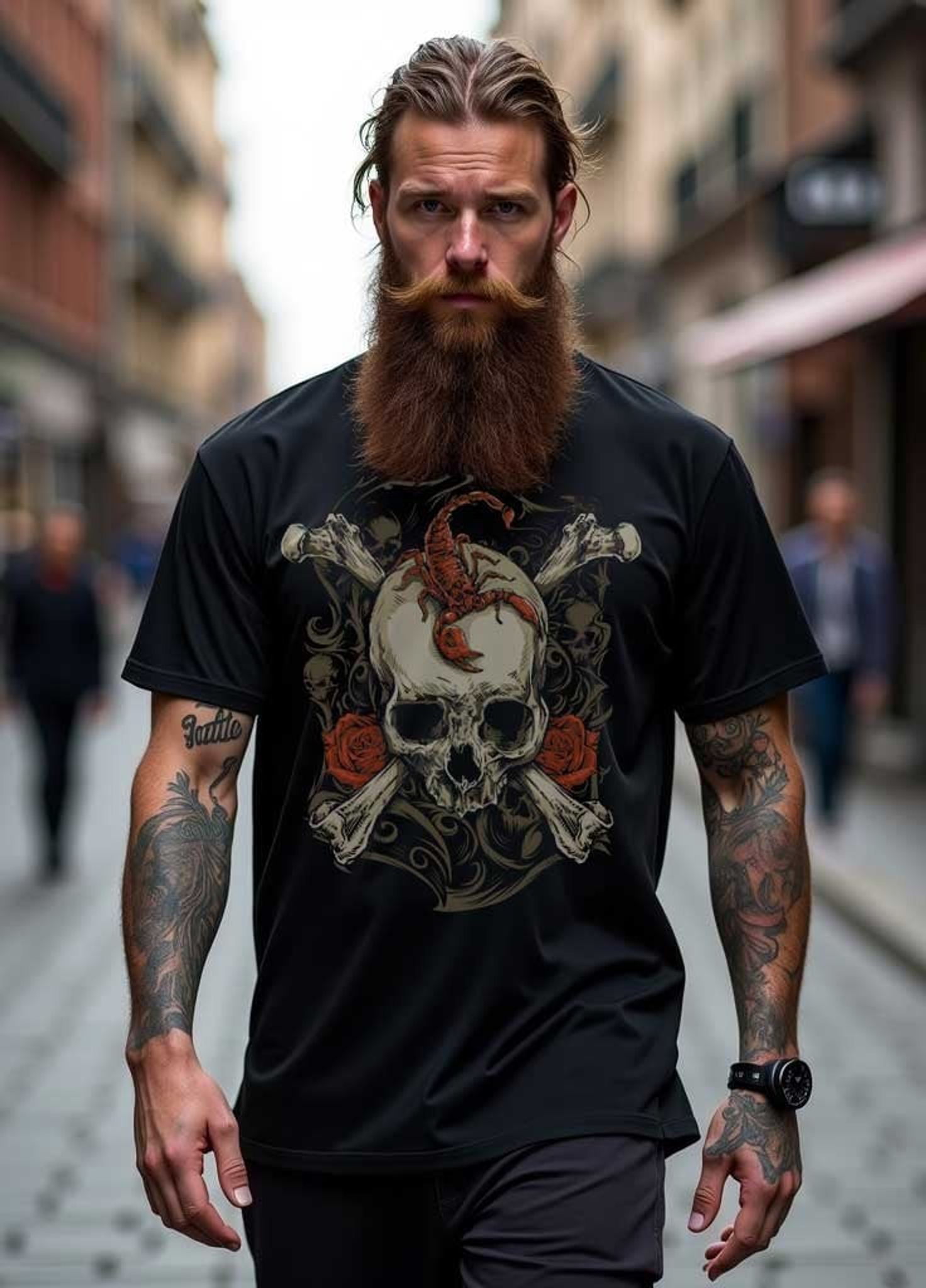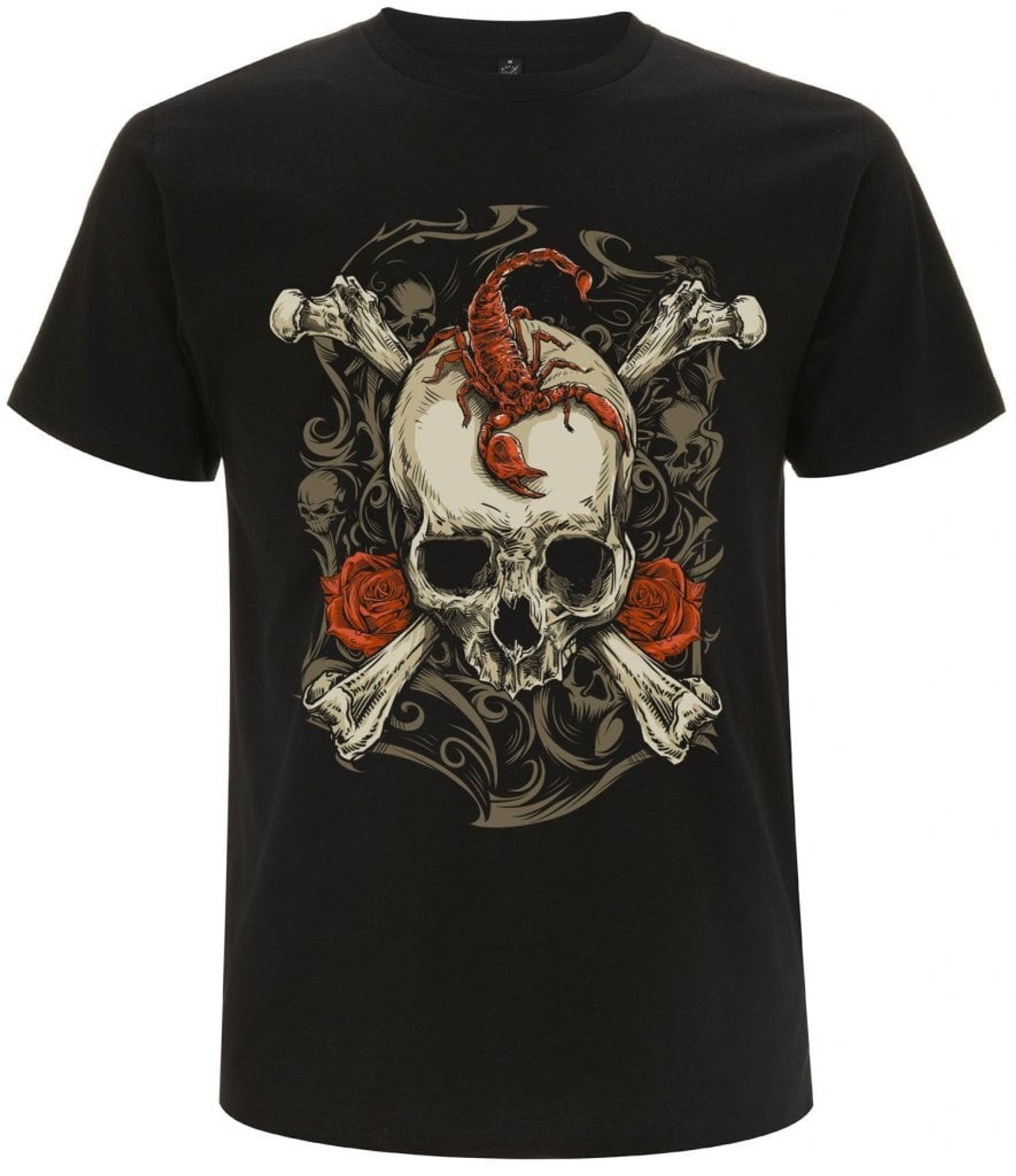 Here you have a black t-shirt from Dirty Hank. On the front of the shirt you will see the beautiful print scorpion where a red scorpion clings on the skull.