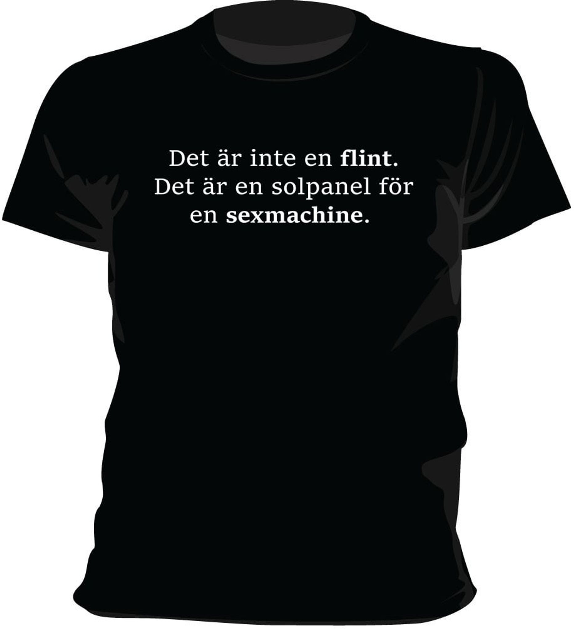 T-shirt med texten: Det är inte en flint. Det är en solpanel till en Sexmachine.