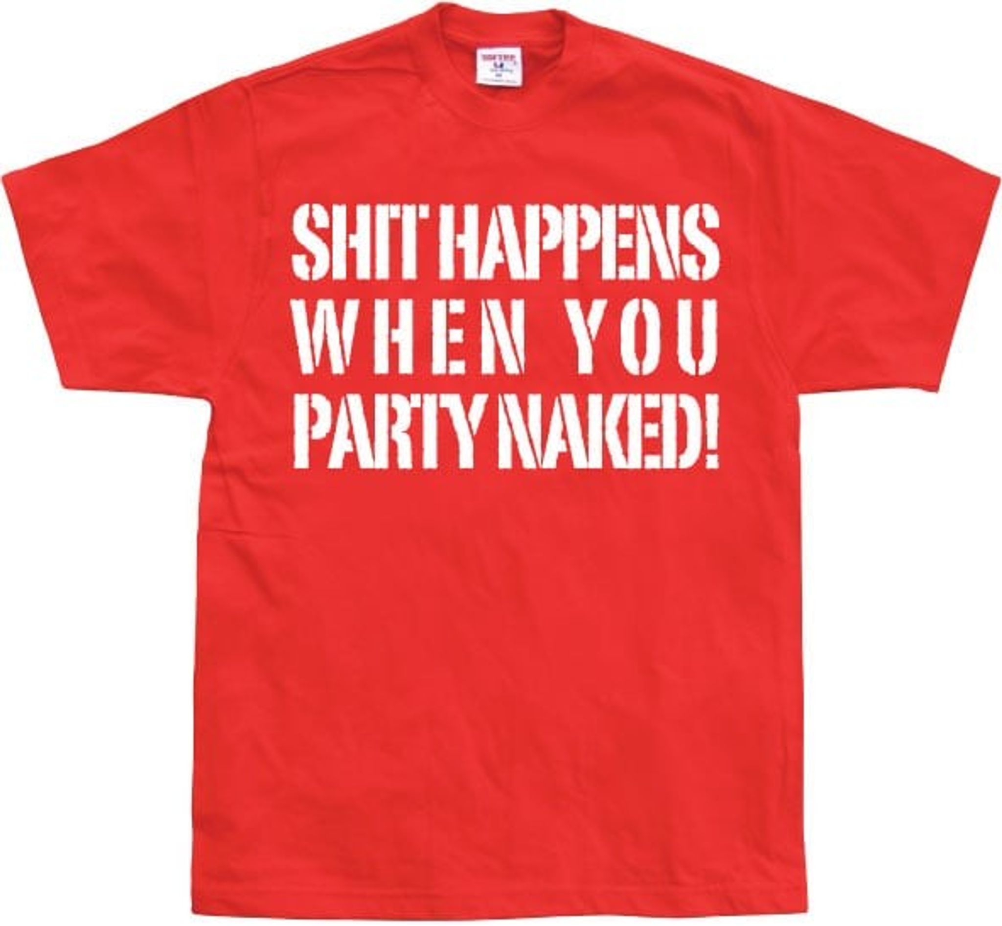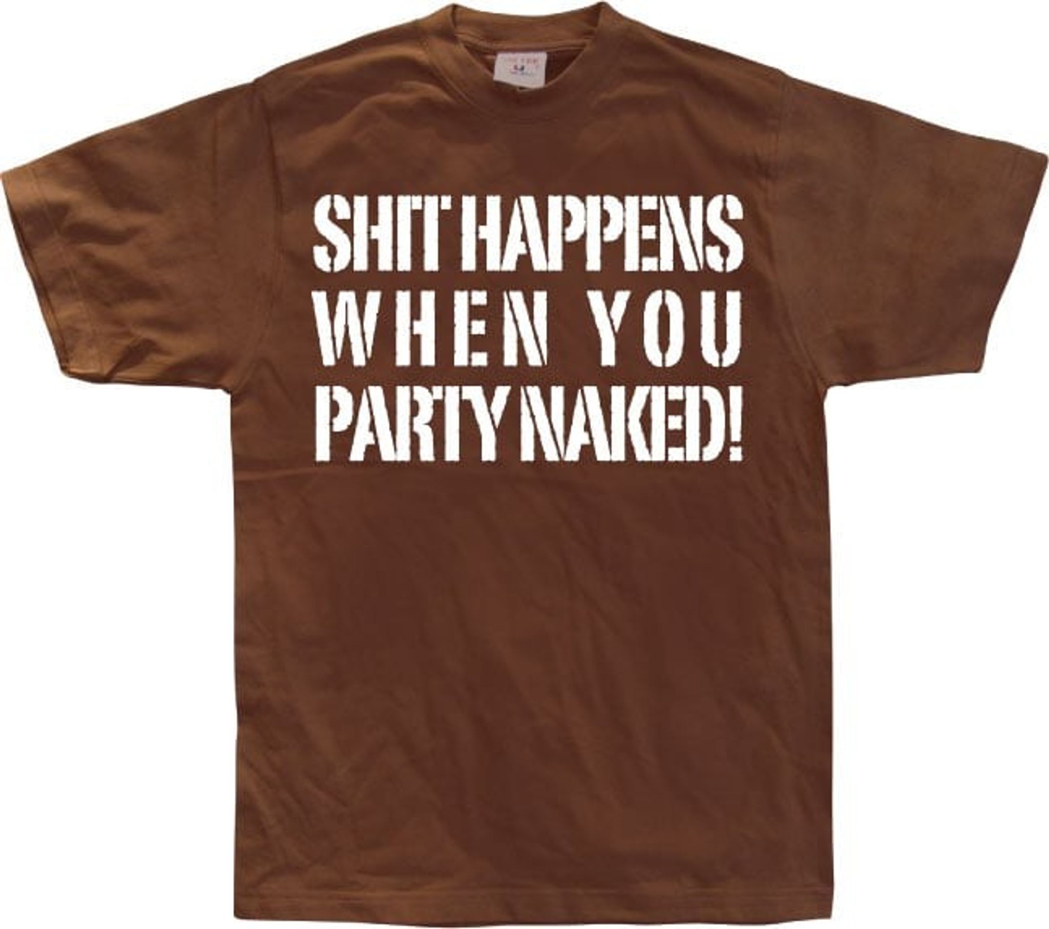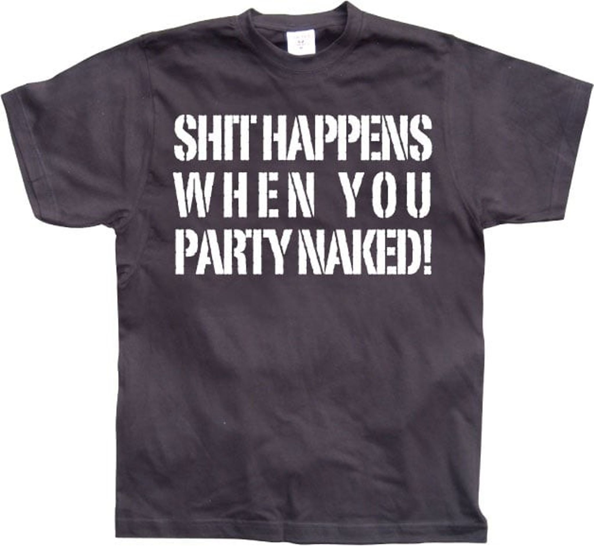 We at Shit Happens When You Party Naked, know how important it is to be able to have fun without having to worry about clothes. Therefore, we have created this t-shirt which is not only good looking, but also acts as a reminder that life is too short to take itself seriously all the time. So put on your shit happens when you party naked-t-shirt and dance loose without worry!
