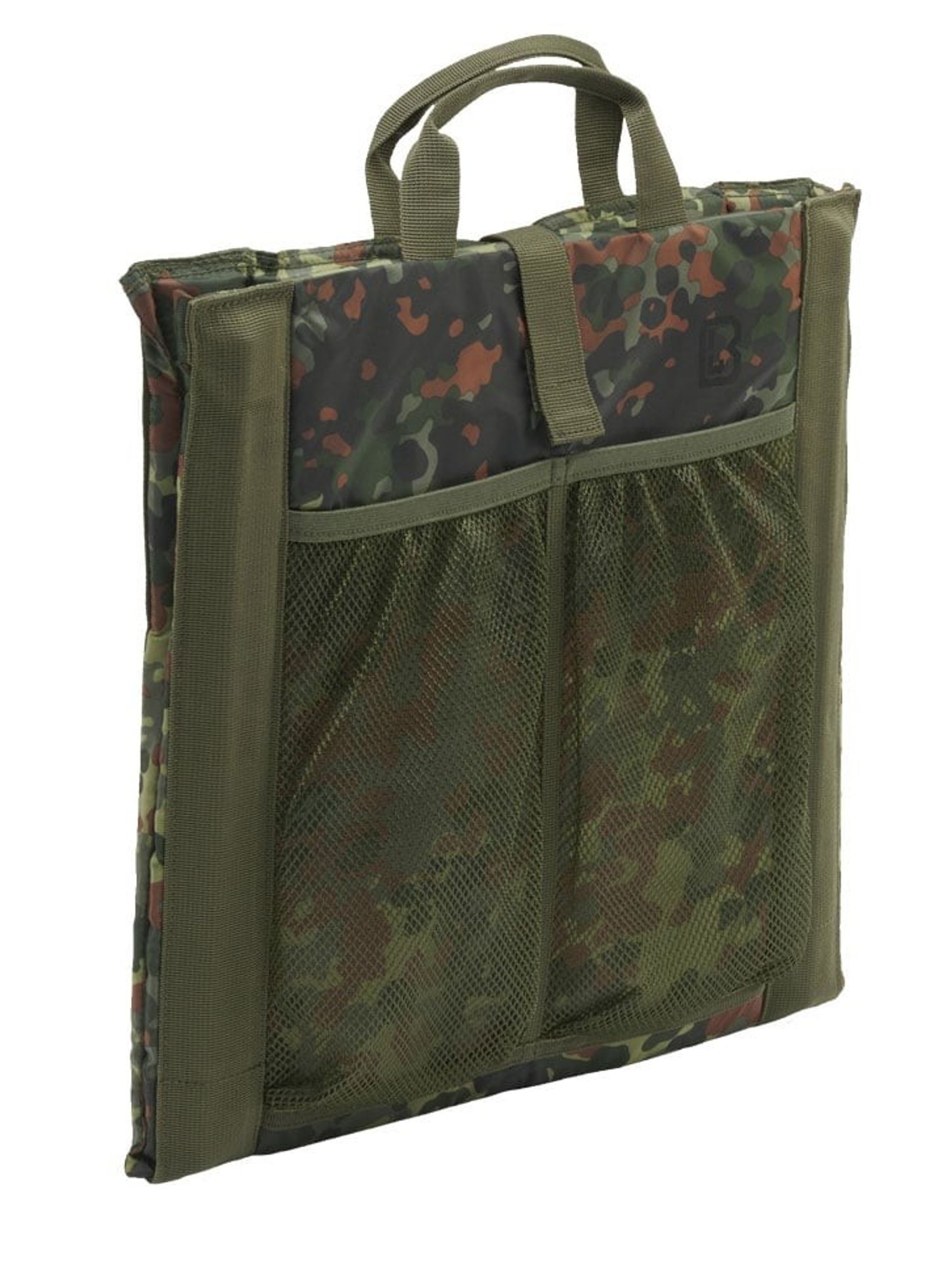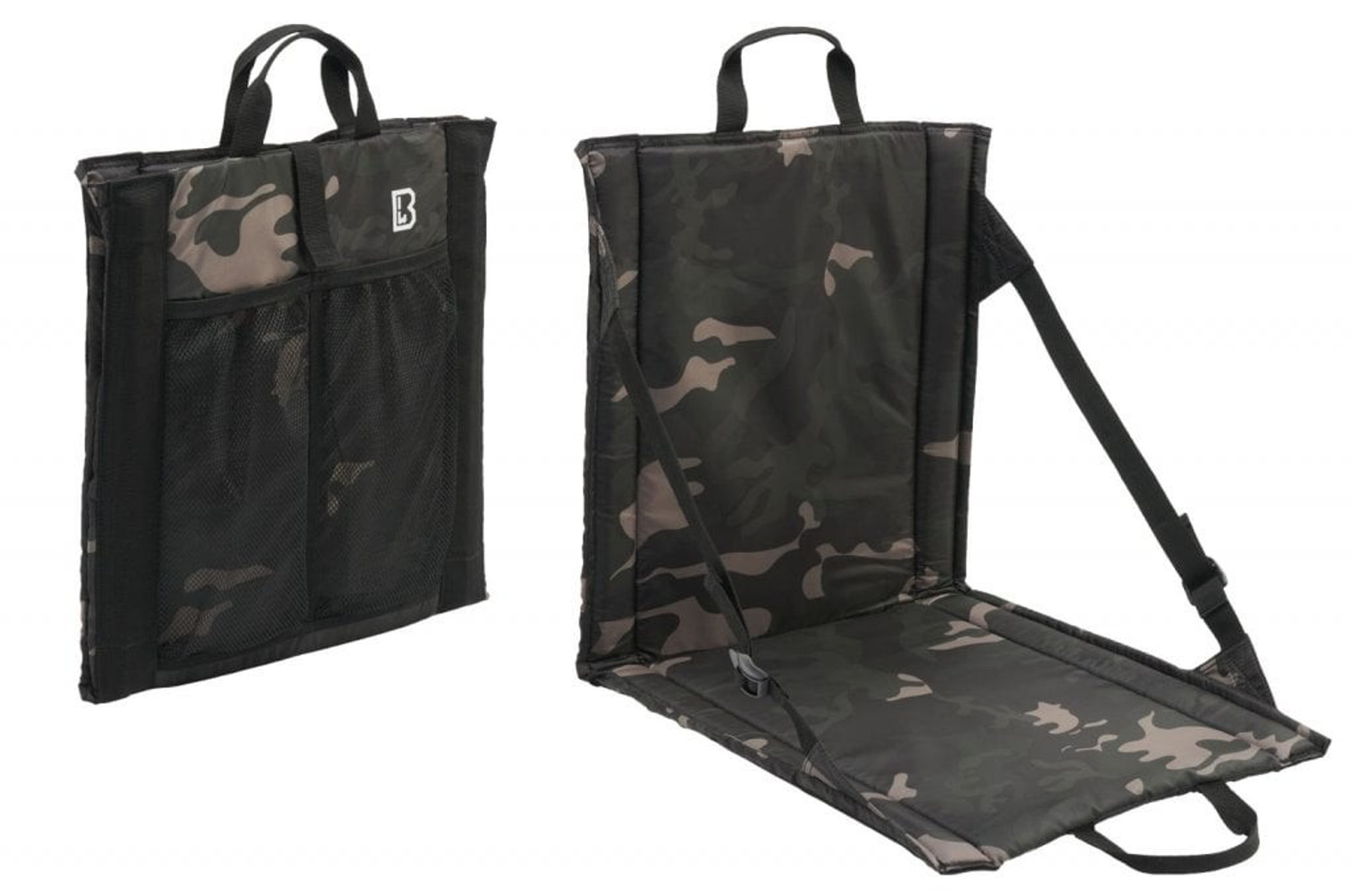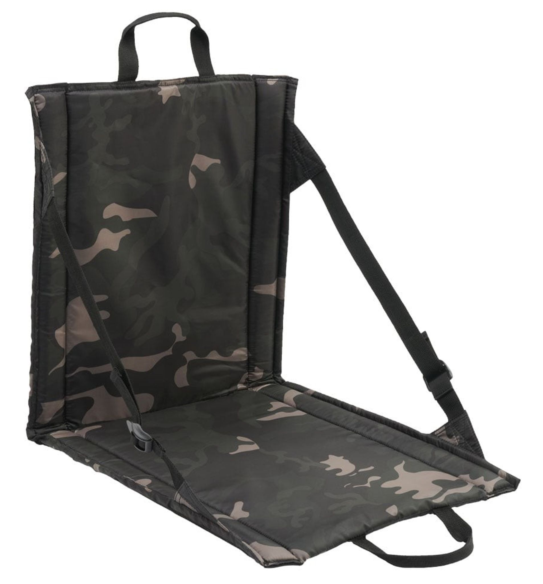 A practical seat pad in camouflage and with a stable backrest. The seat pad is also equipped with carrying handles that make it easy to carry this folding chair.
