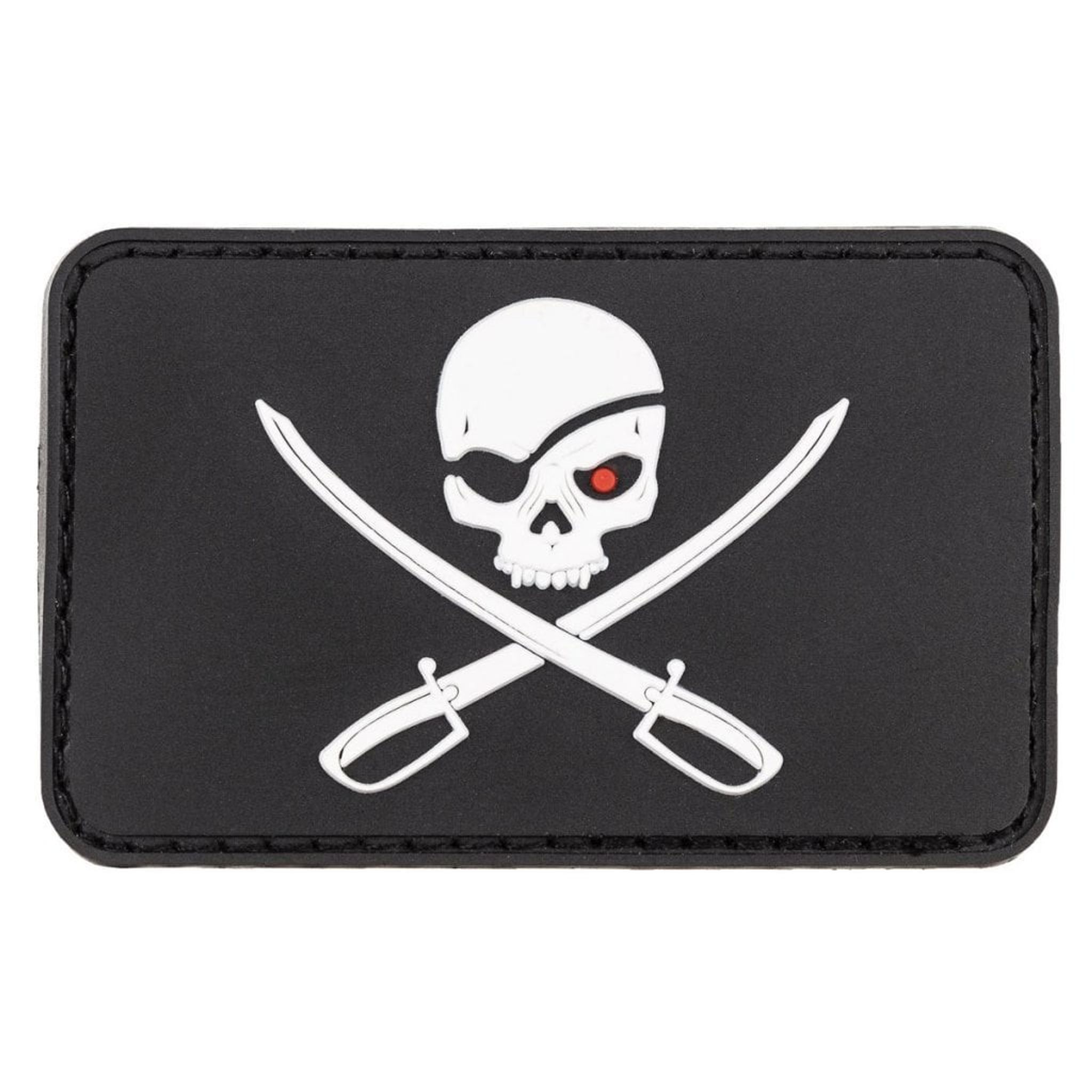 A black patch in rubber and with a Jolly Roger in 3D motifs.