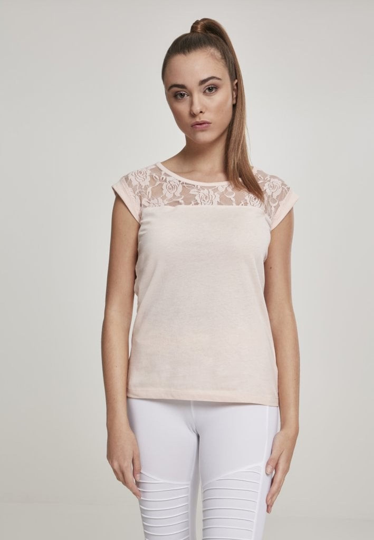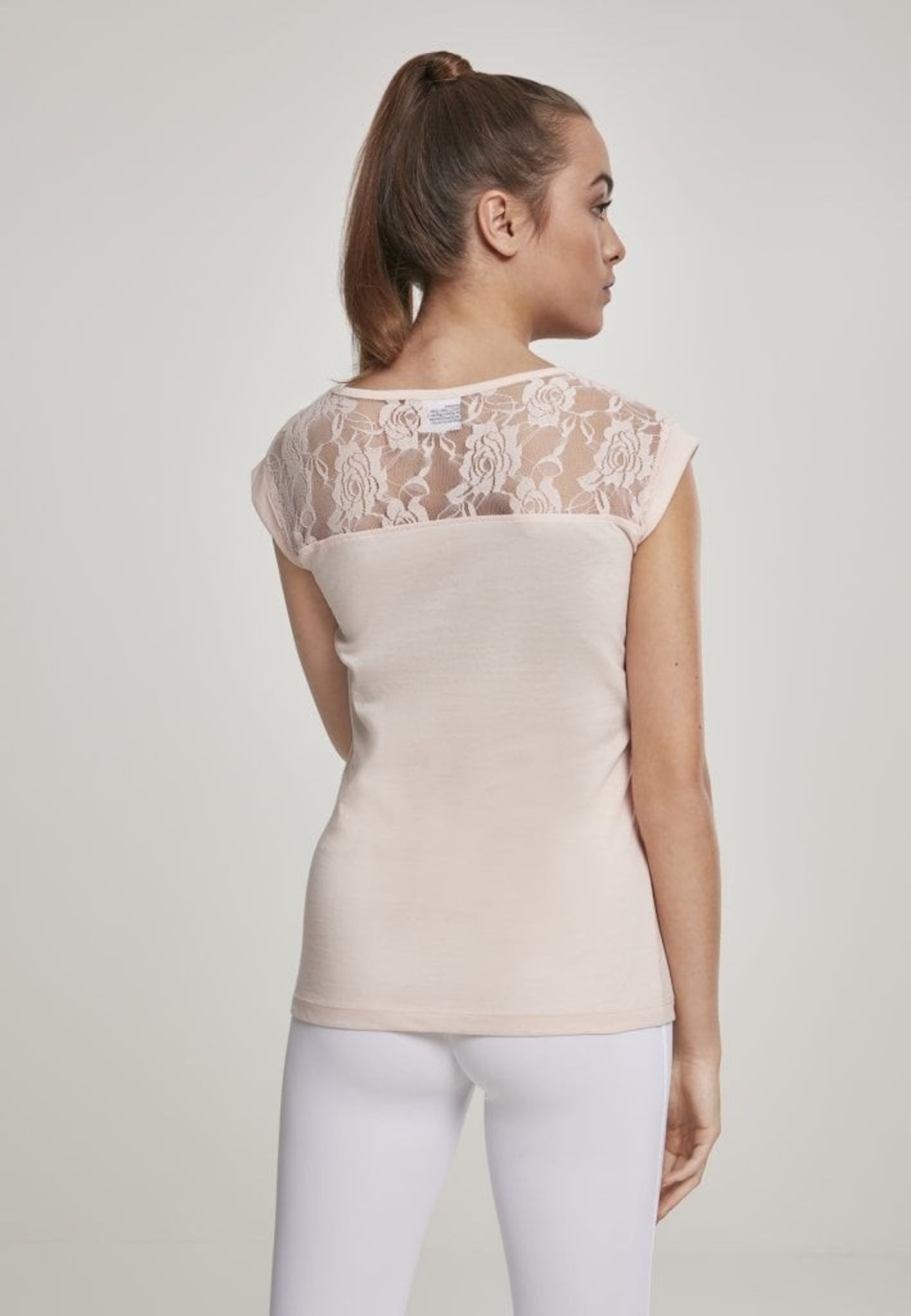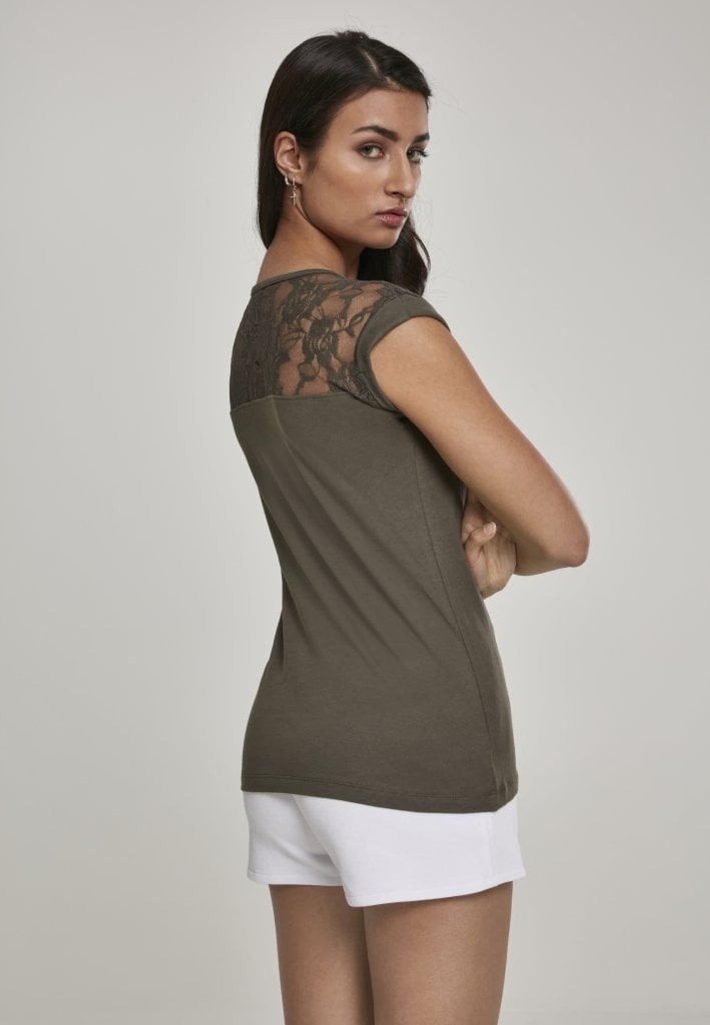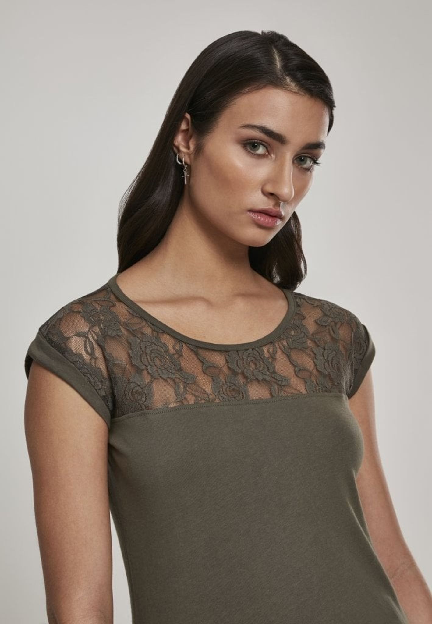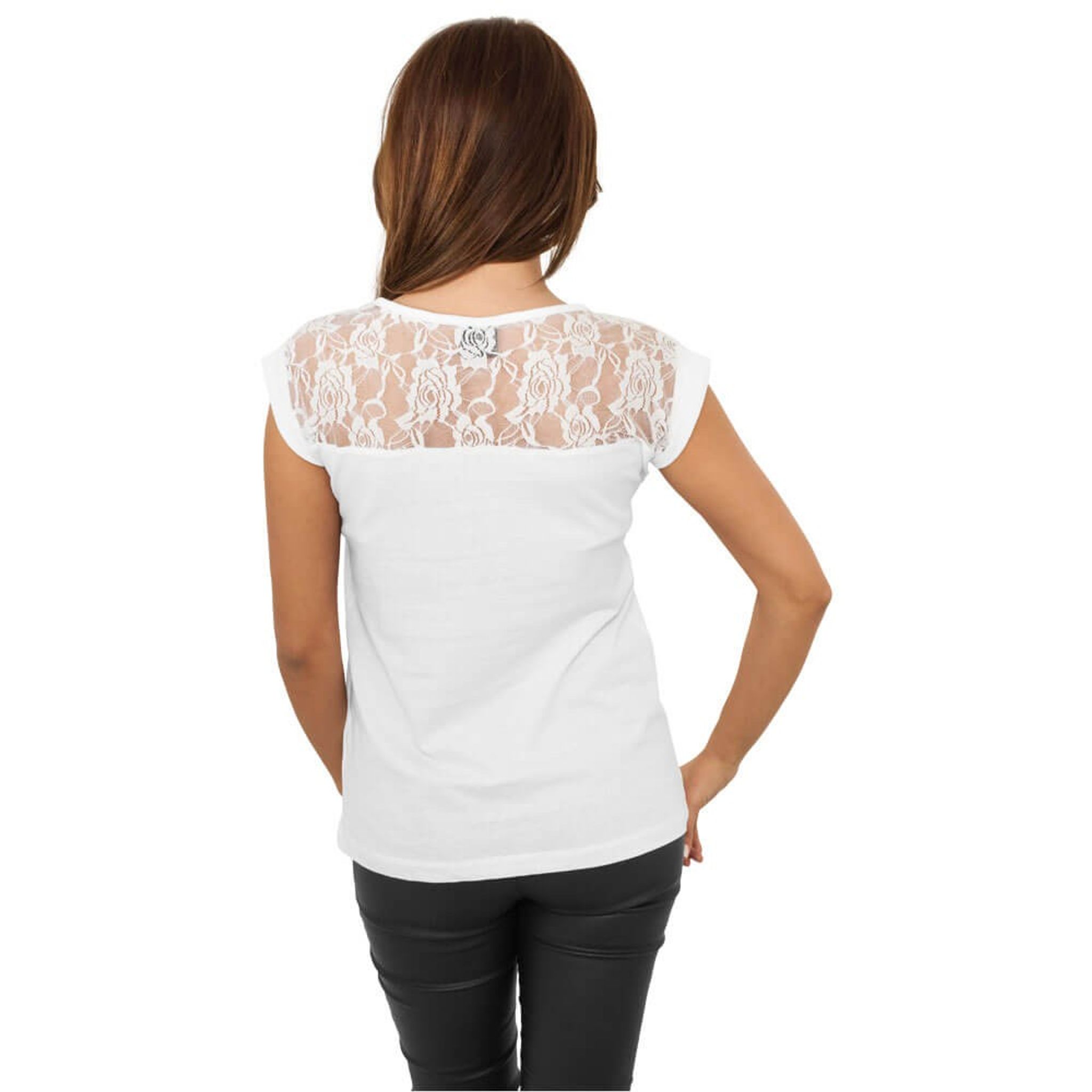 The lace top from the Urban Classics brand is an elegant and sophisticated addition to your wardrobe. The top presents itself with a floral lace detail in the shoulder area that gives any everyday outfit a subtle touch of sensuality. The lace details are delicately designed and give the top a feminine and chic feel.