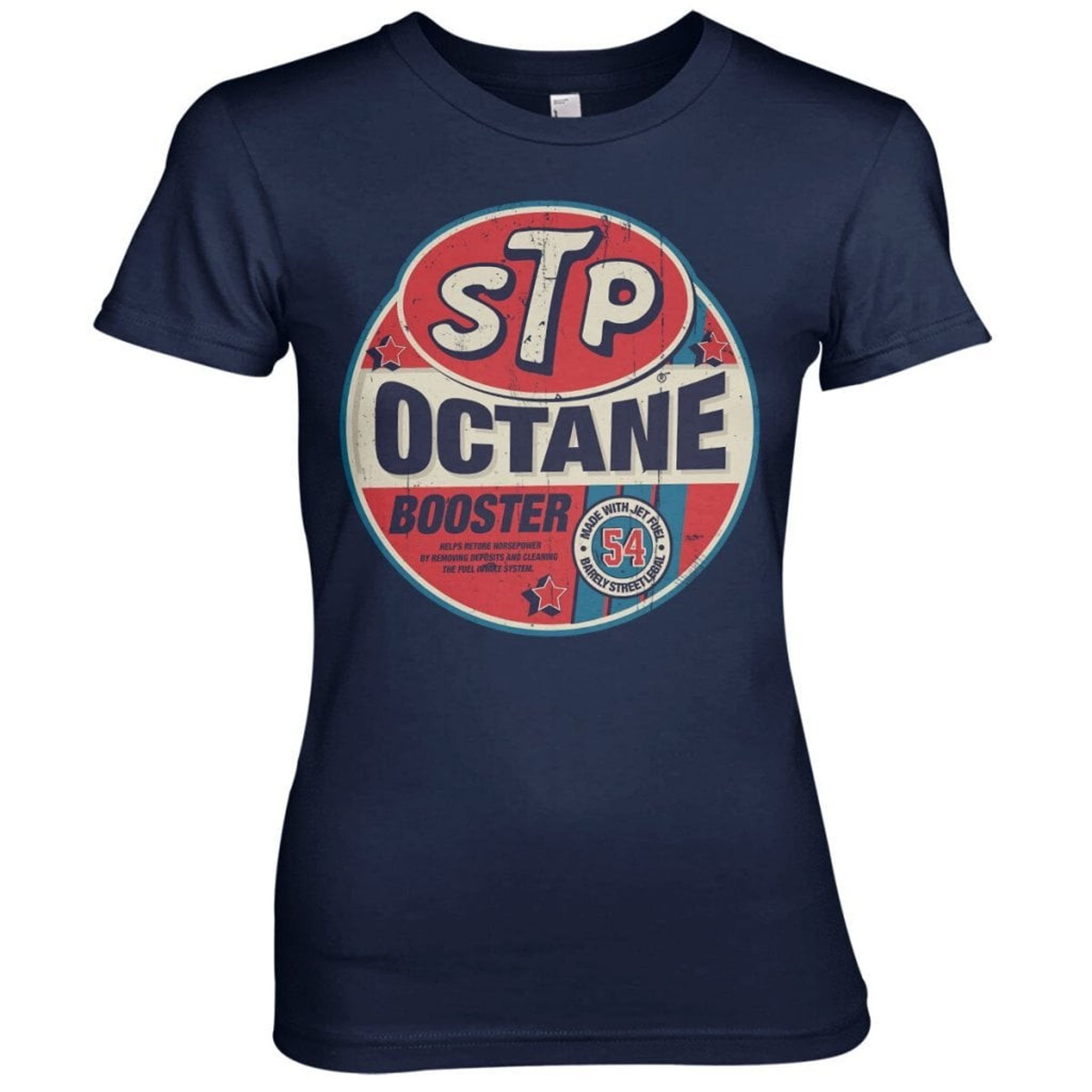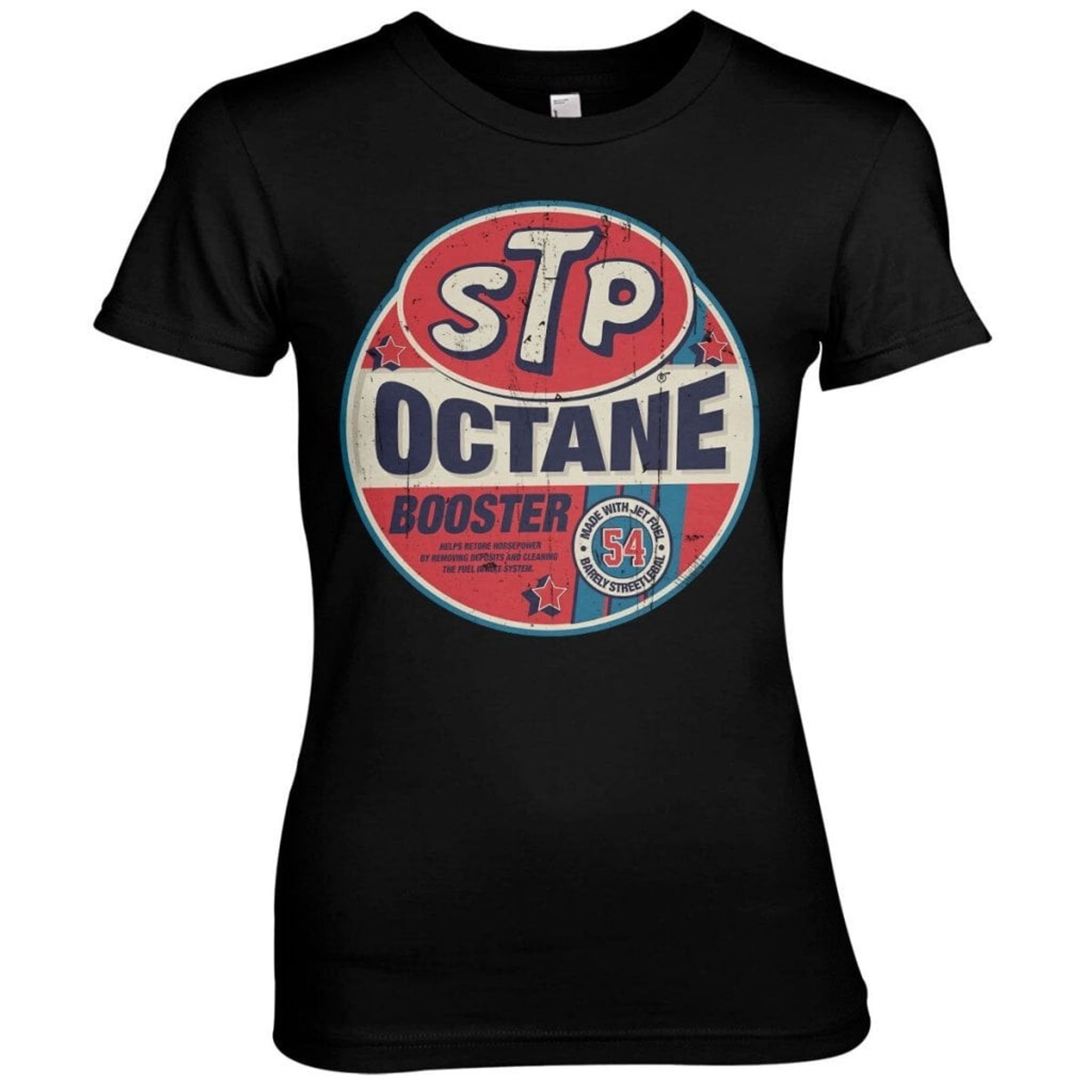 With the classic STP logo and the words "OCTANE" and "BOOSTER", the design stands out clearly and powerfully. The red stars add an extra touch of racing flair, while the text "MADE WITH JET FUEL" and "BARELY STREET LEGAL" hint at the adrenaline-pumping power this t-shirt represents.