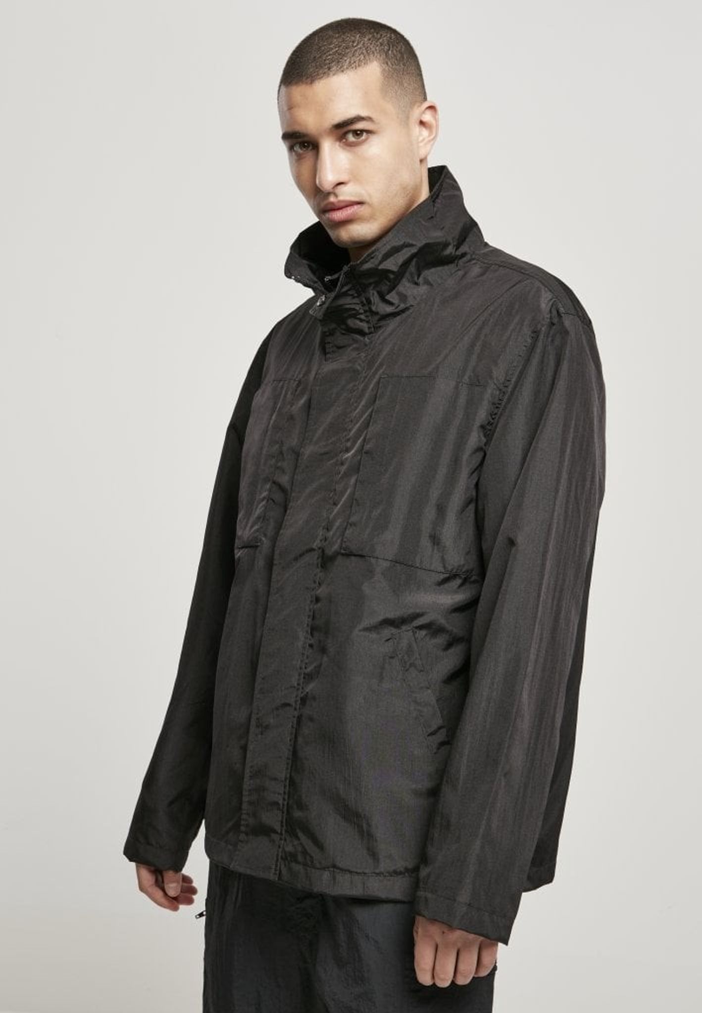 An elegant and light wind jacket in oversize model that closes with both a zipper and snaps.