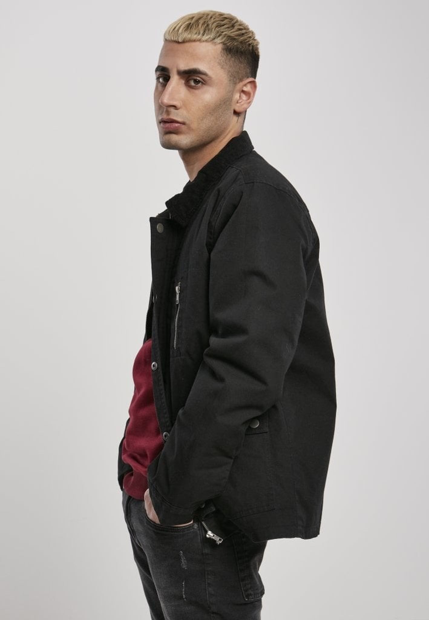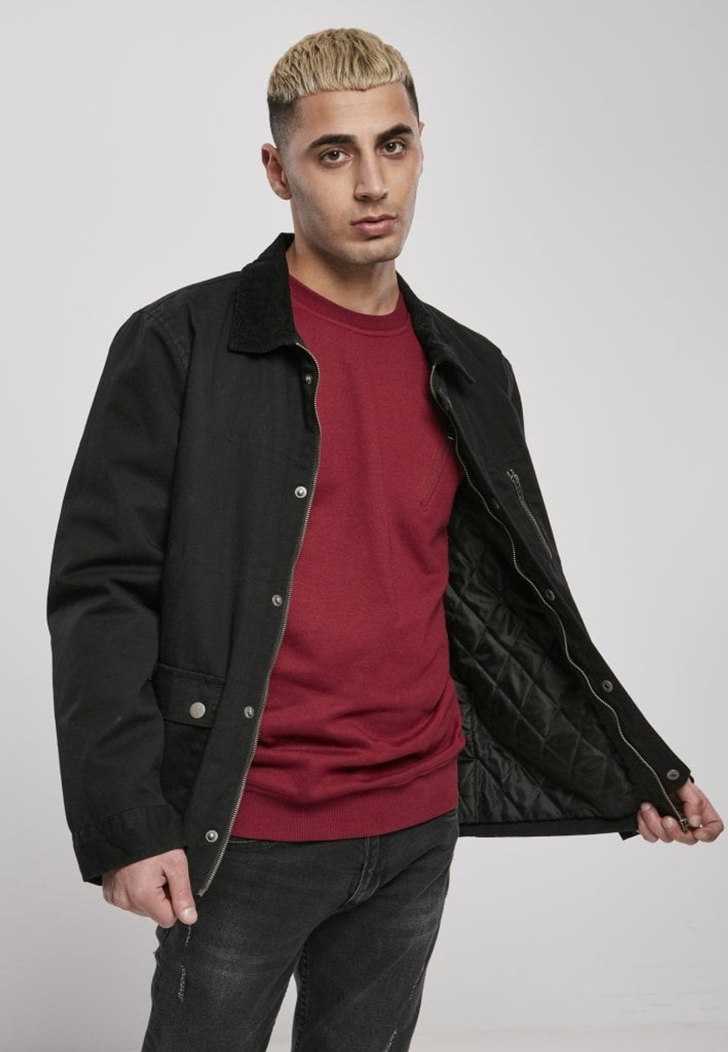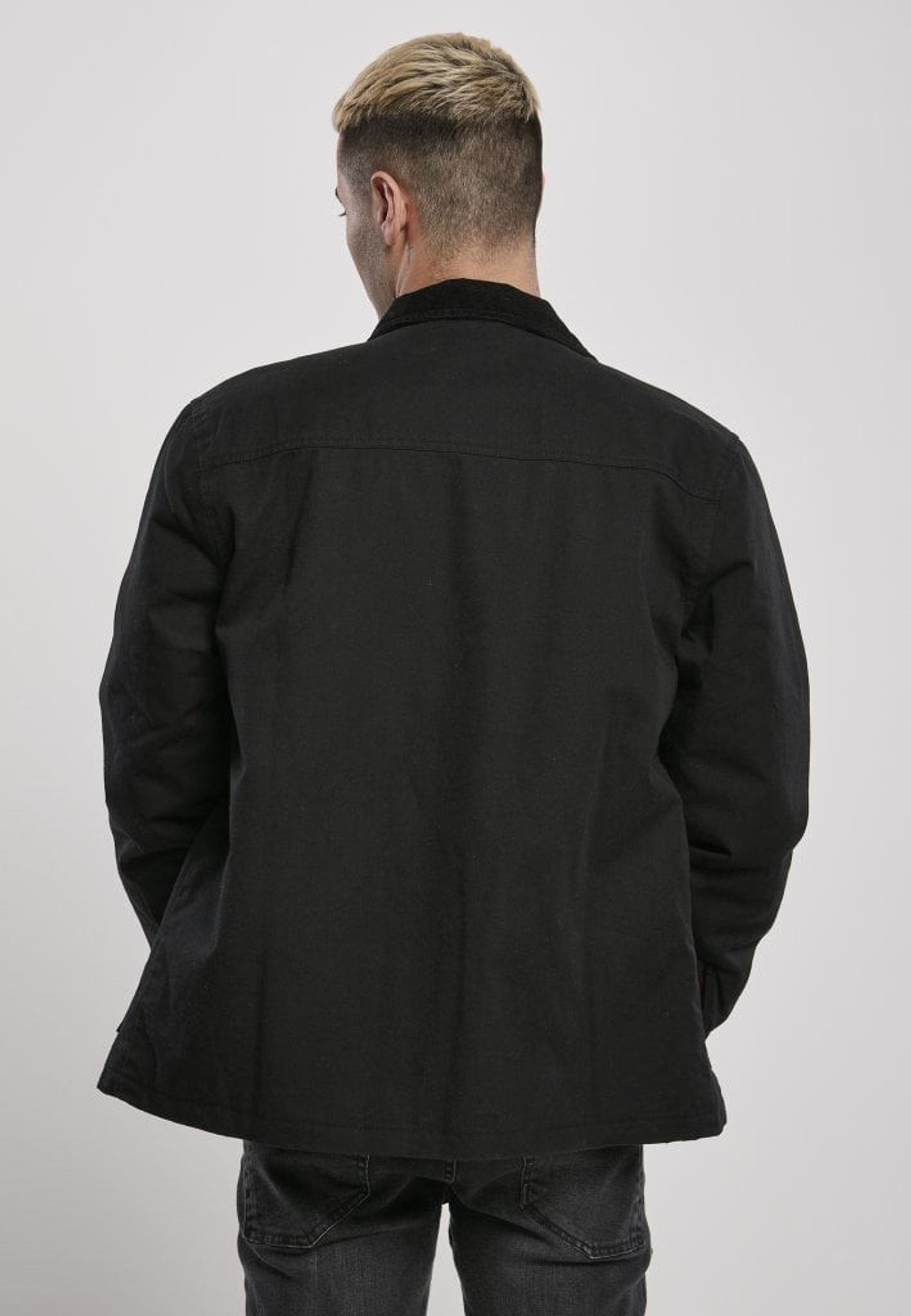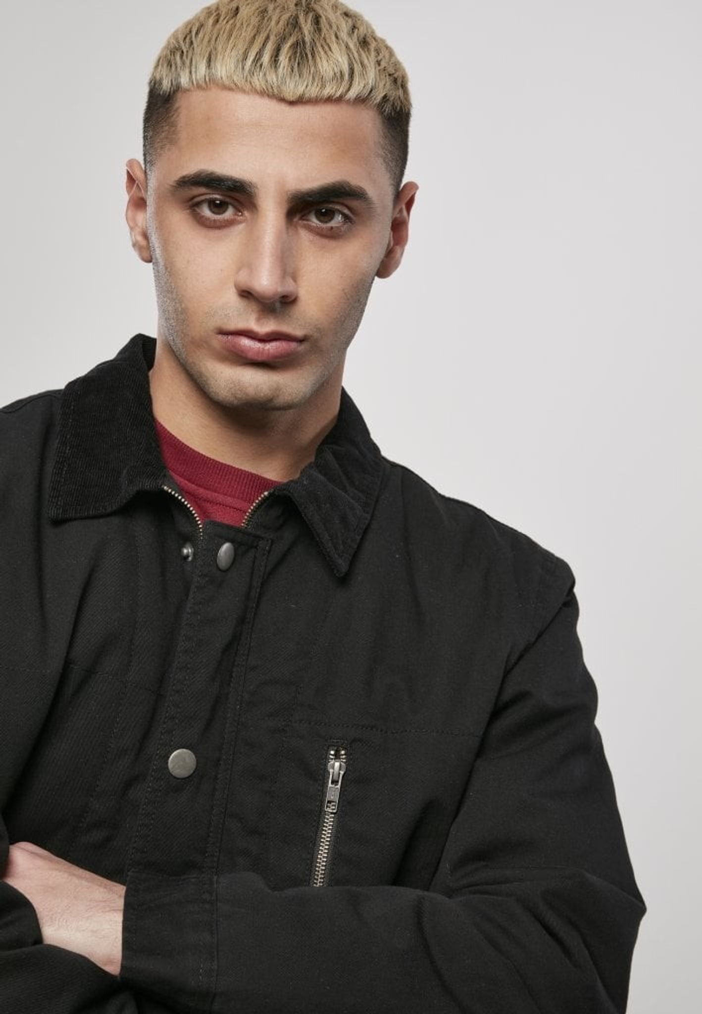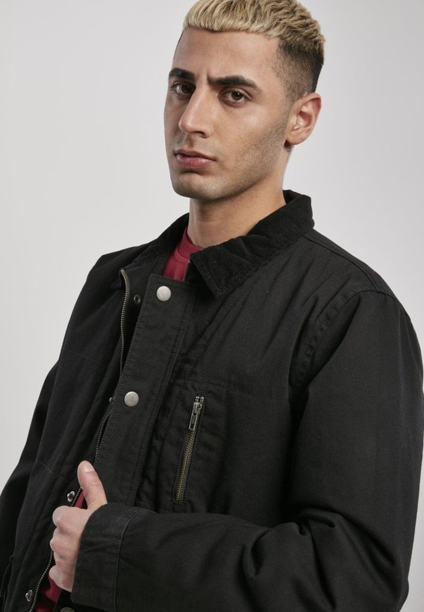 The collar is made of corduroy fabric and the outer fabric of the jacket is made of cotton.