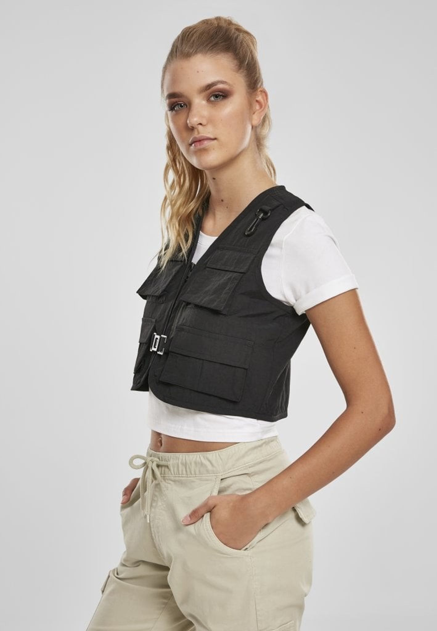 Black short vest lady