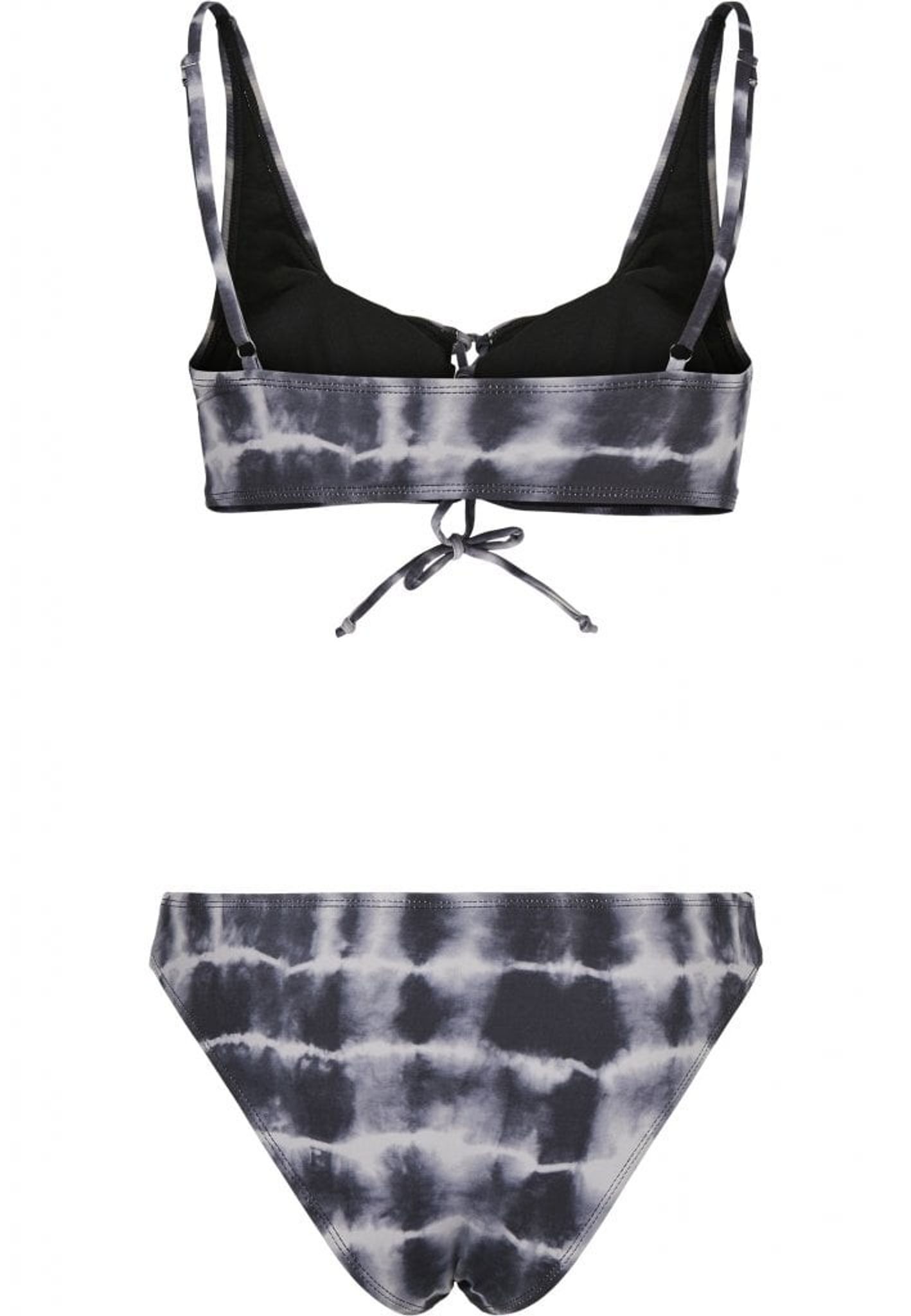 This bikini is batik-colored in black and white.