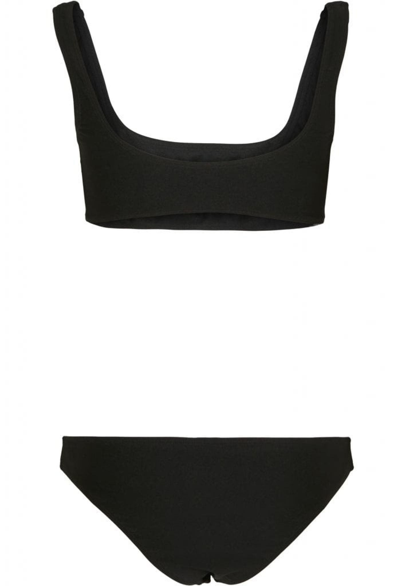 The shoulder straps are wide and positioned close to the shoulders giving a square neckline, tank top.