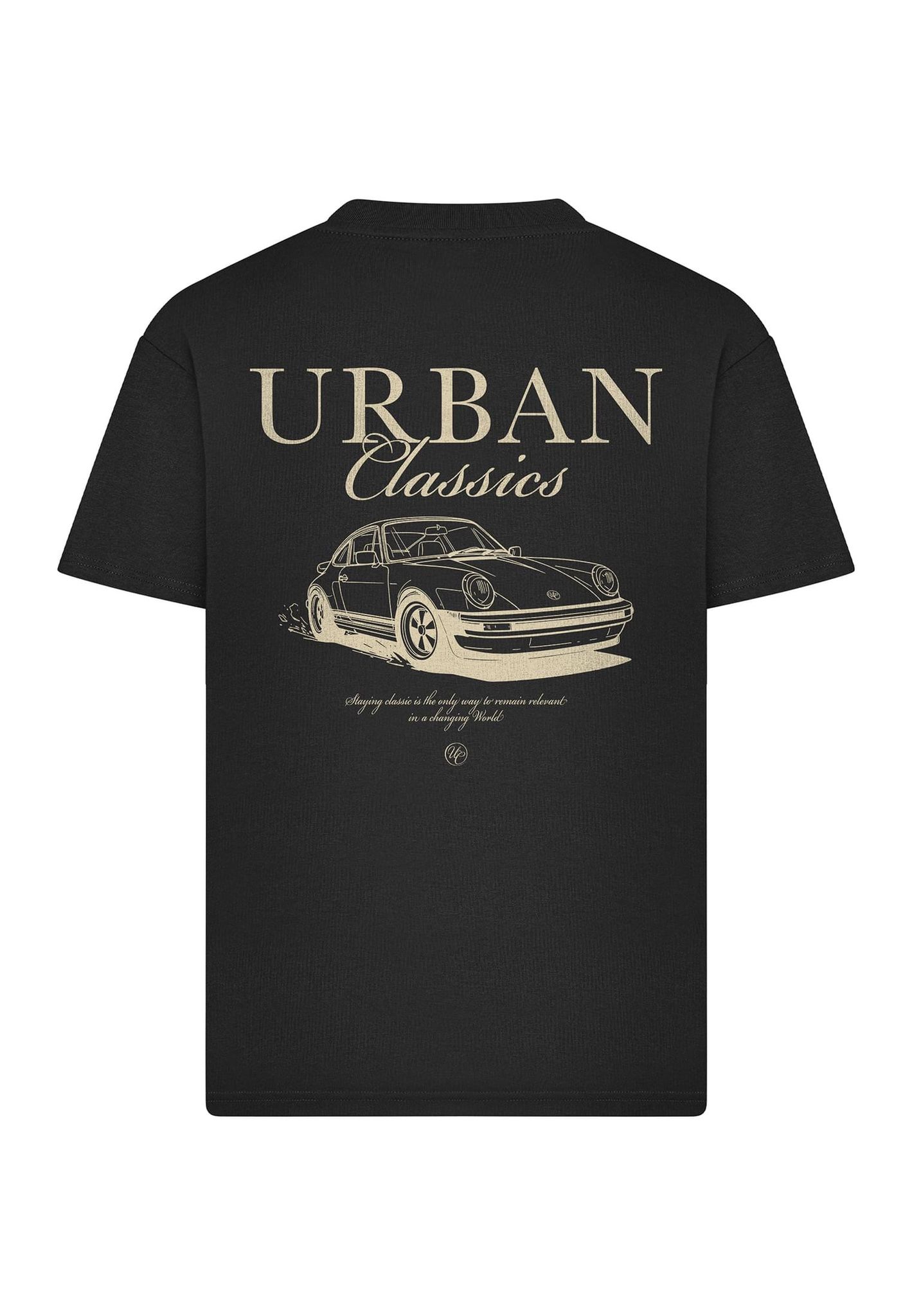 En stilren svart T-shirt med iögonfallande logotyp och bilmotiv