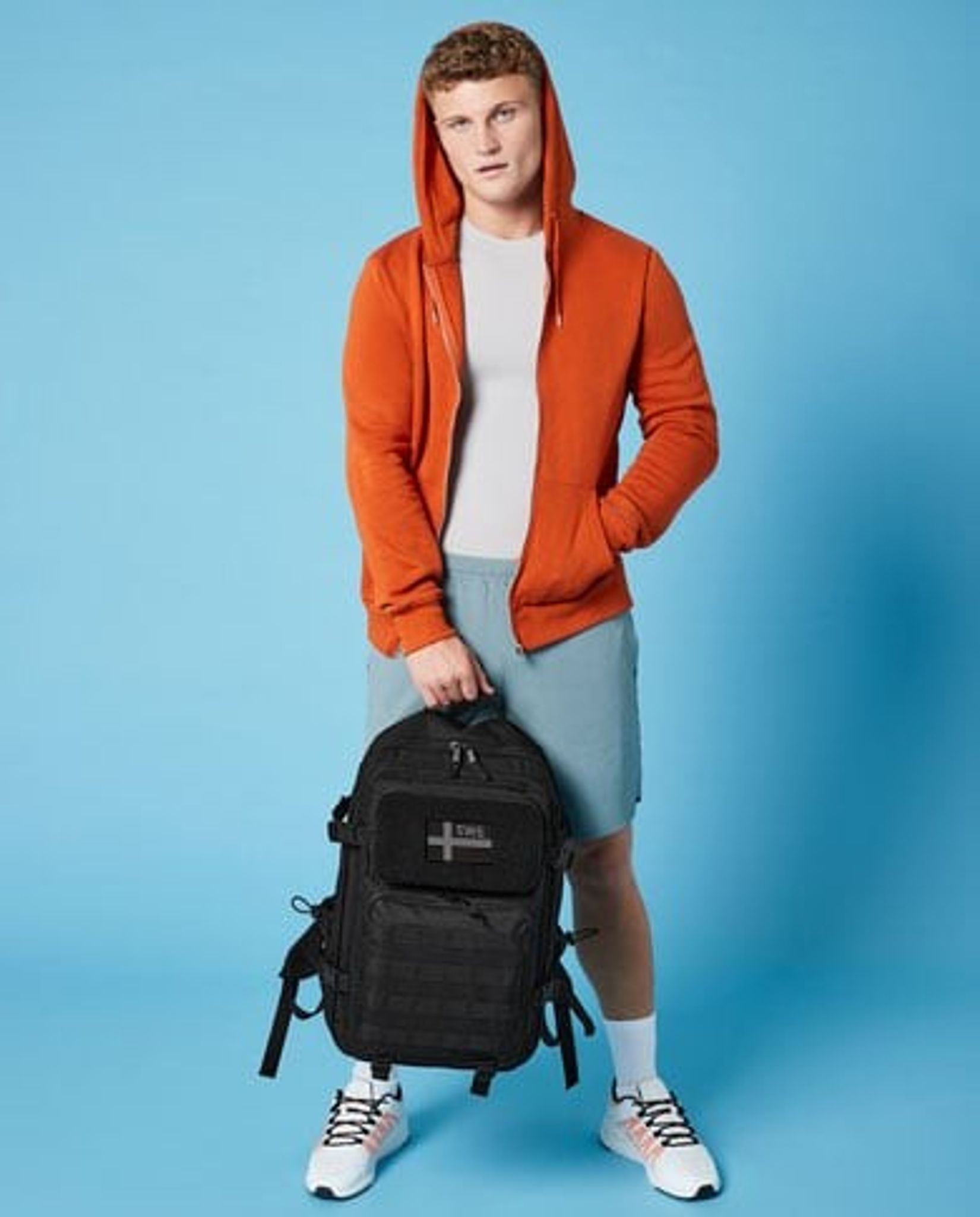 In addition to the main compartment, the backpack has three large compartments with a zipper at the front. A front compartment with full Rip-Strip™ for patches.