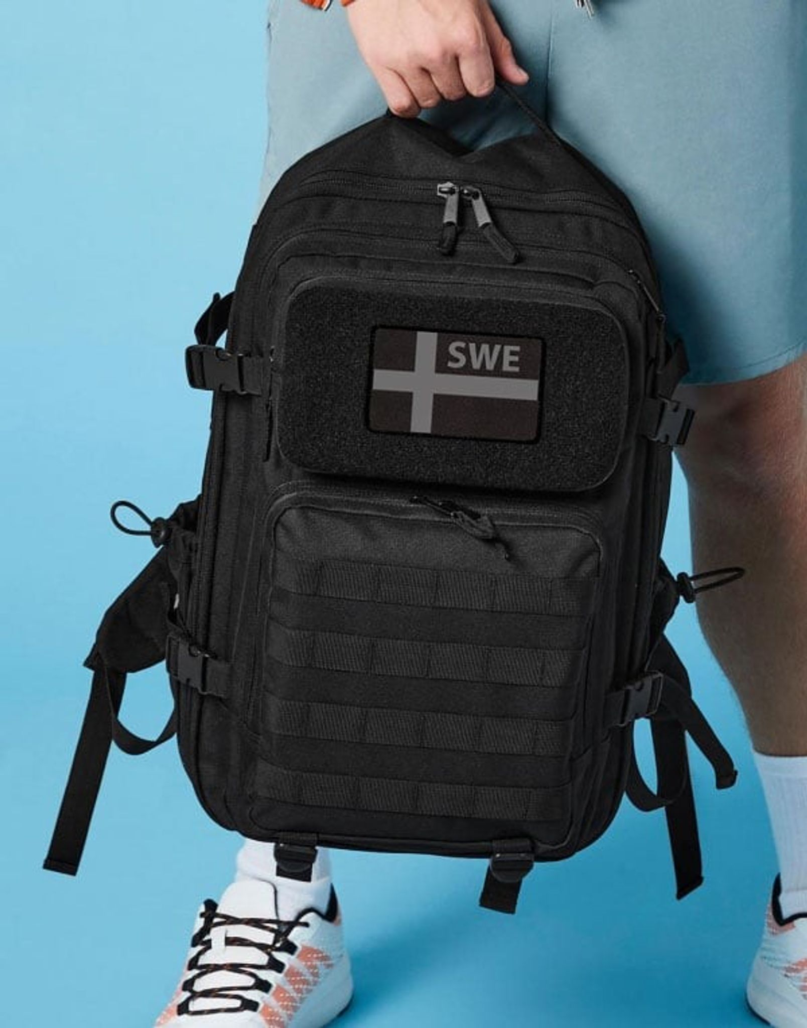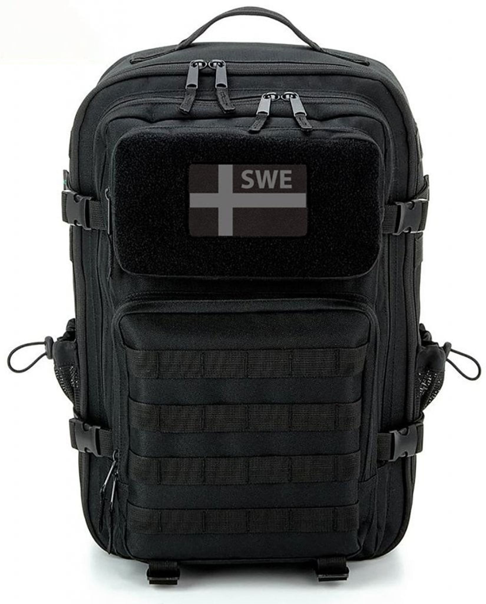 The Tactical MOLLE backpack has a removable patch with the Swedish flag in gray and black. This is the ultimate backpack for those looking for a high-quality and practical solution for your daily errands or for outdoor activities.