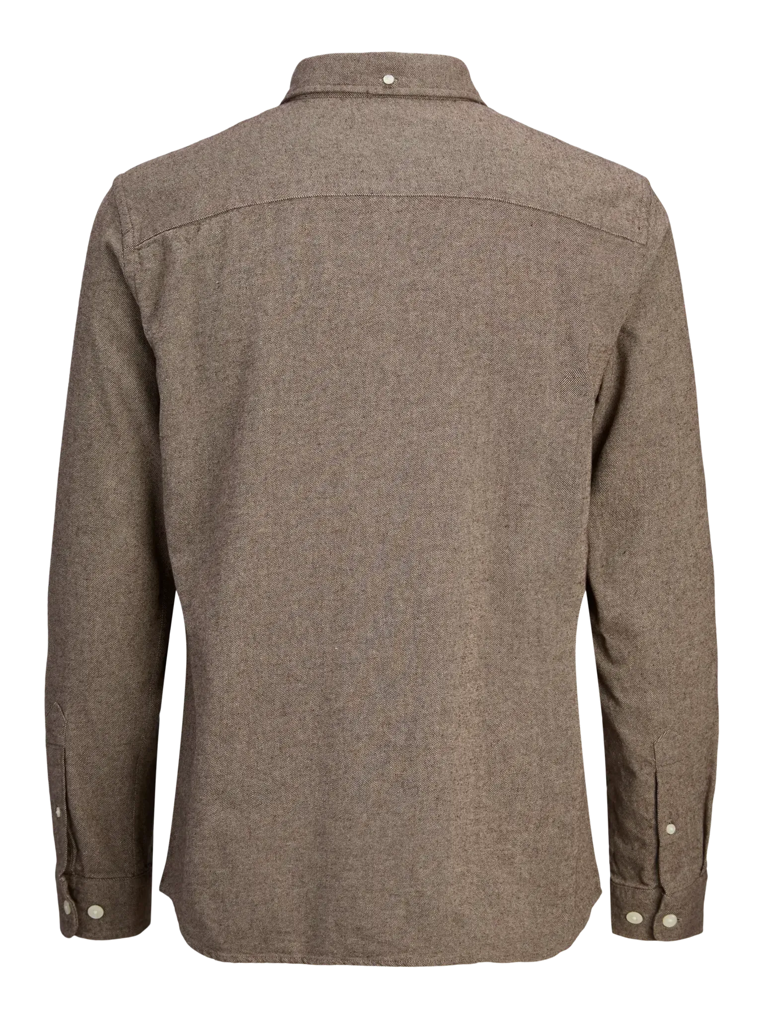 Skjortan har en traditionell skjortkrage och knäppning framtill, vilket ger en stilren och elegant look. De knäppta ärmsluten bidrar till en prydlig finish.