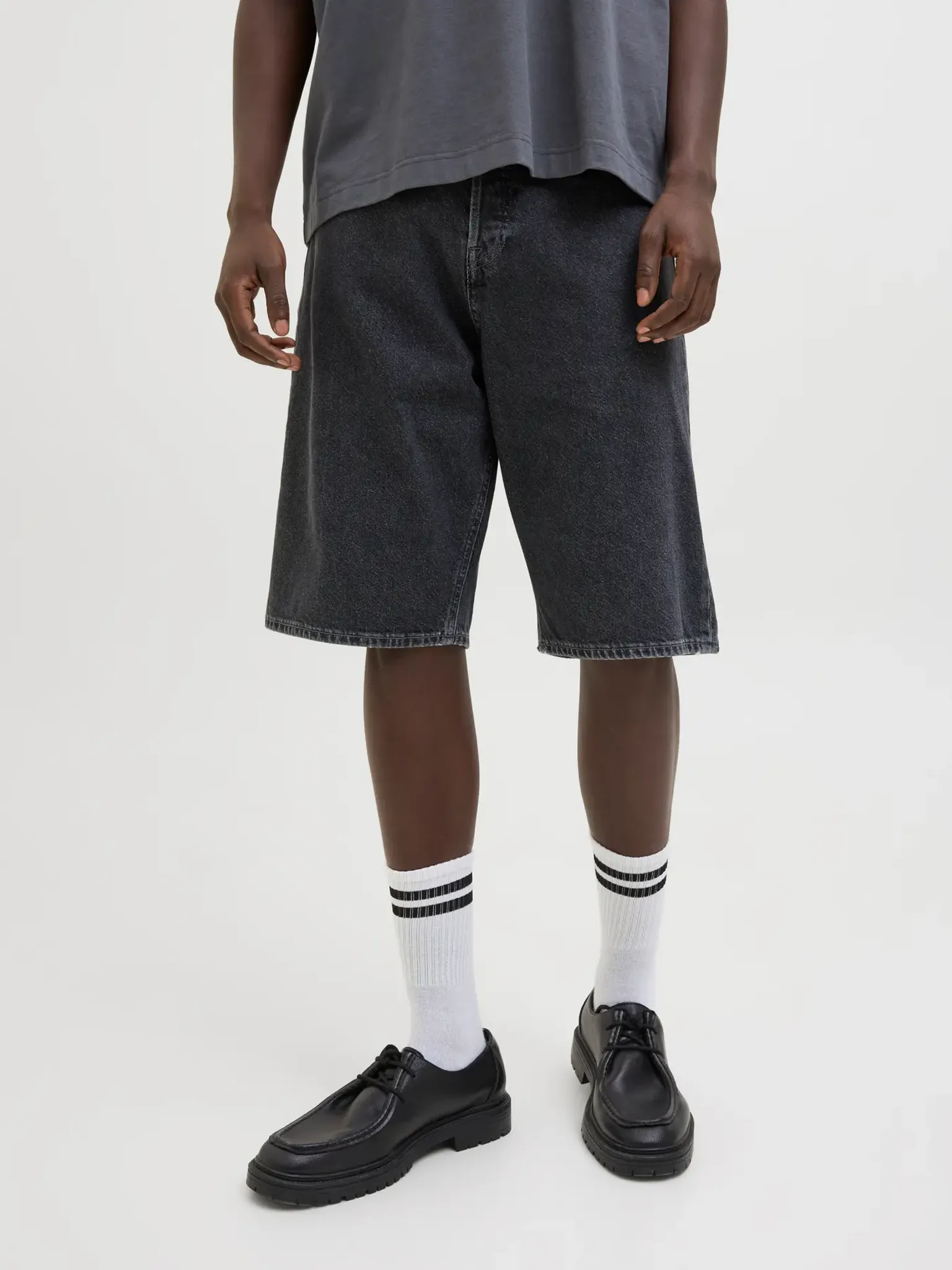 Shortsen är tillverkade i slitstark denimväv med twillstruktur, där färgad varptråd och ofärgad väft vävs samman till ett hållbart och bekvämt plagg. Hög midja ger en smickrande passform, medan knäppning med knappar framtill håller stilen autentisk.