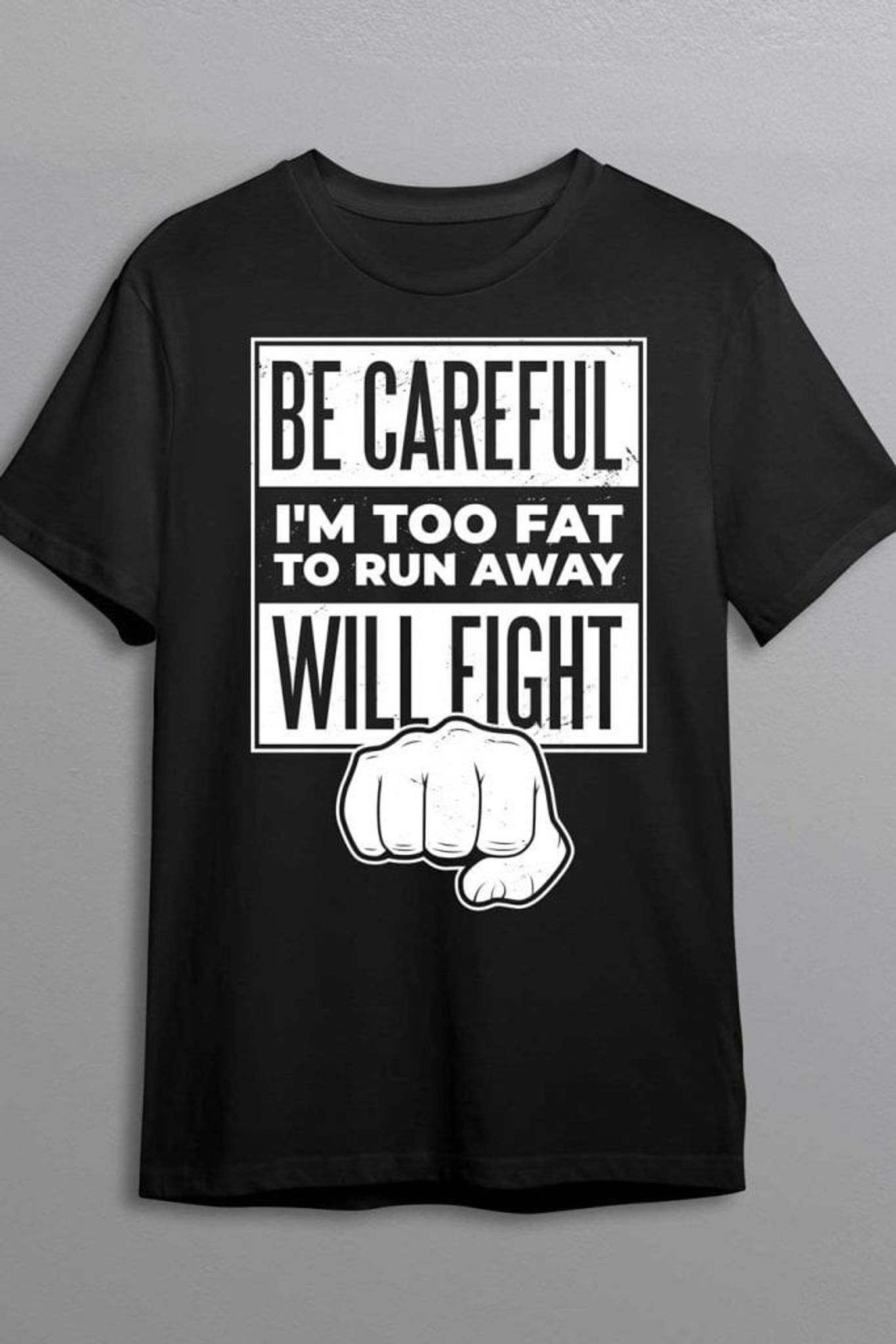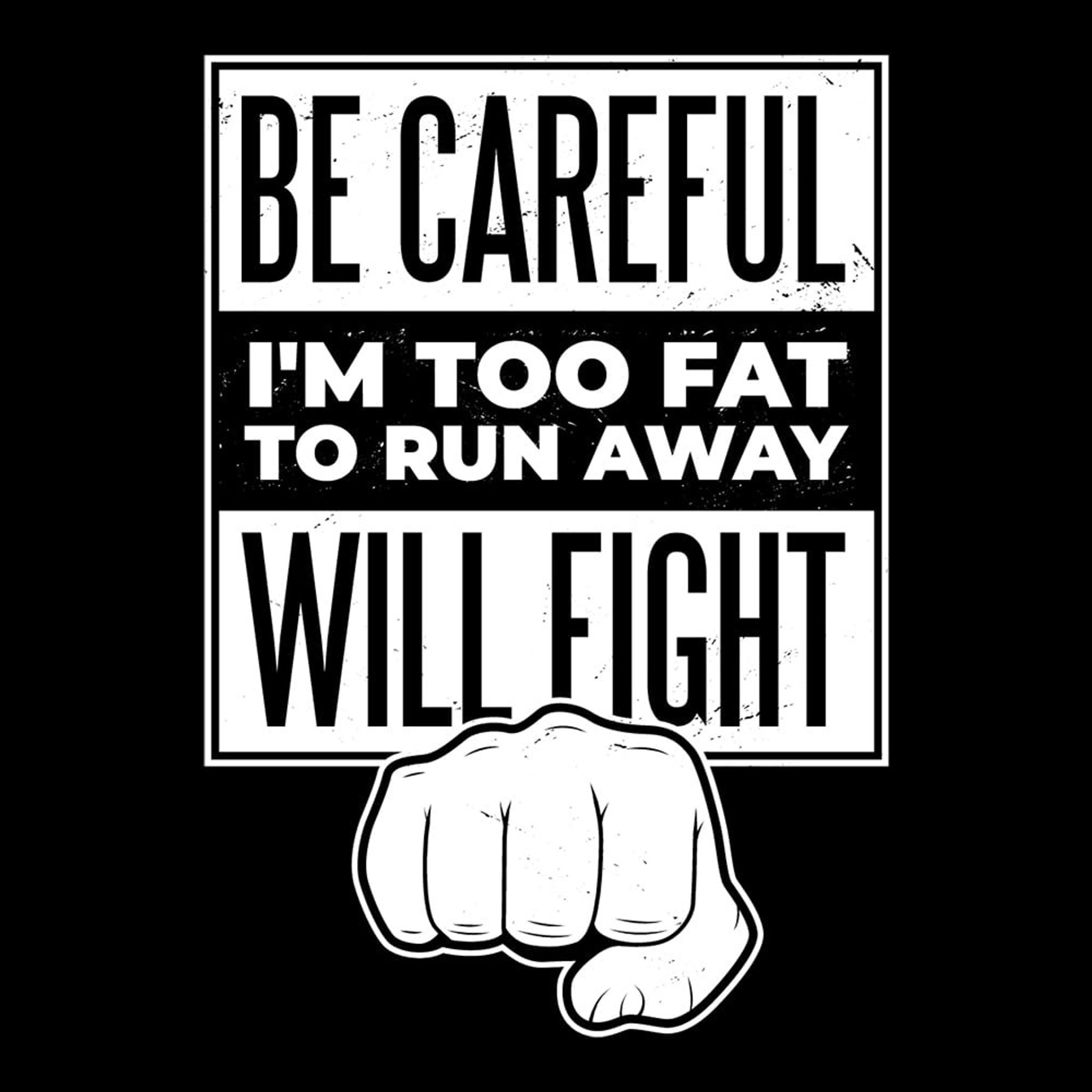 Print with the text: Be careful. I'm too fat to run away. Will fight.