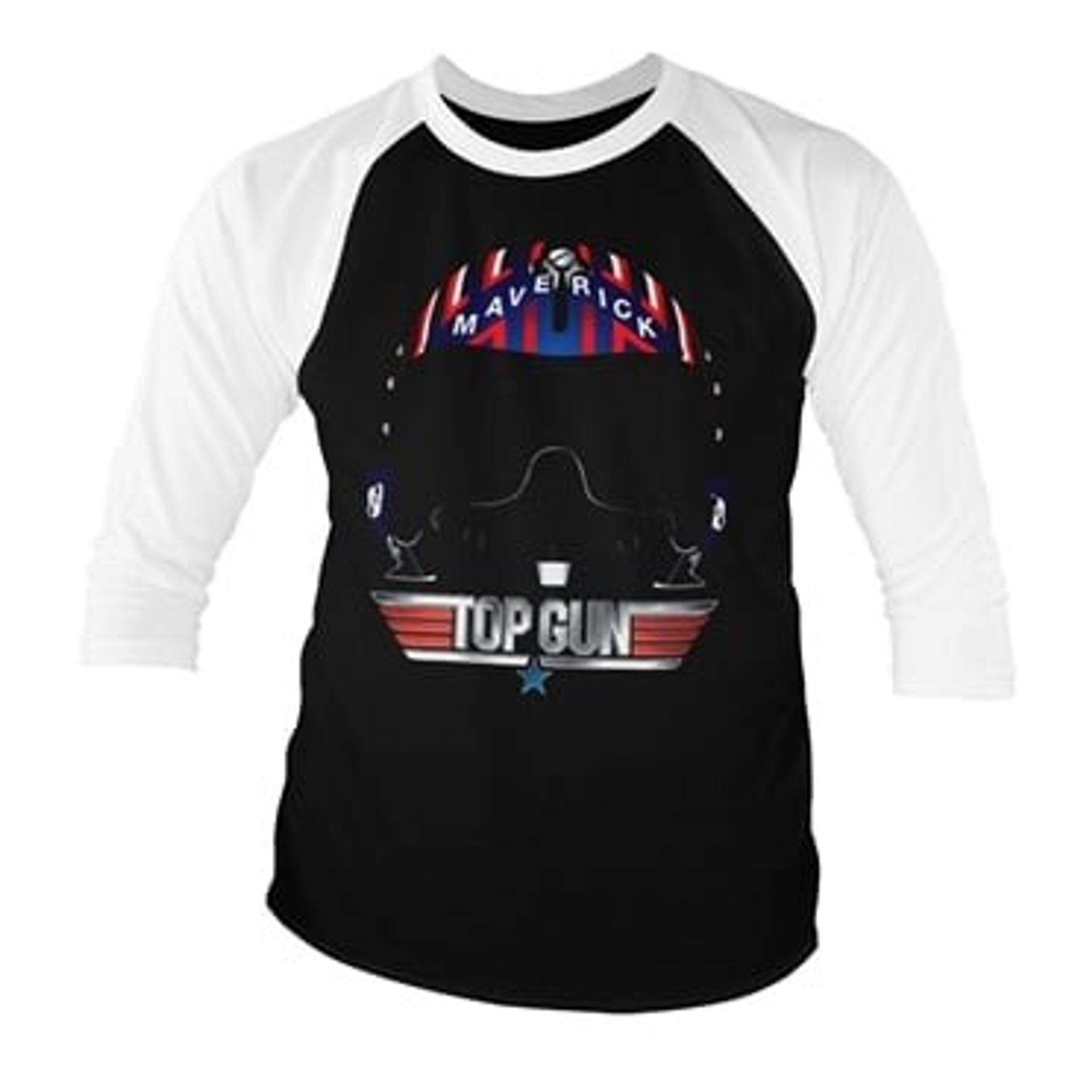 A two-tone longsleeve with 3/4 long sleeves. On the chest is a large motif with Maverick's helmet from the classic movie Top Gun.
