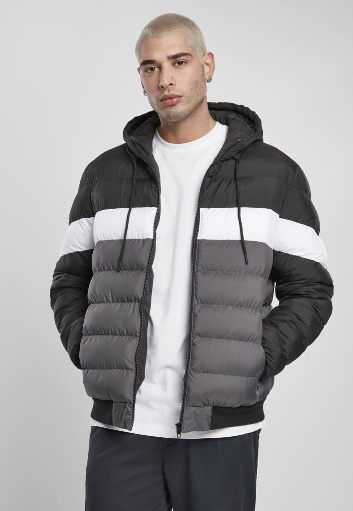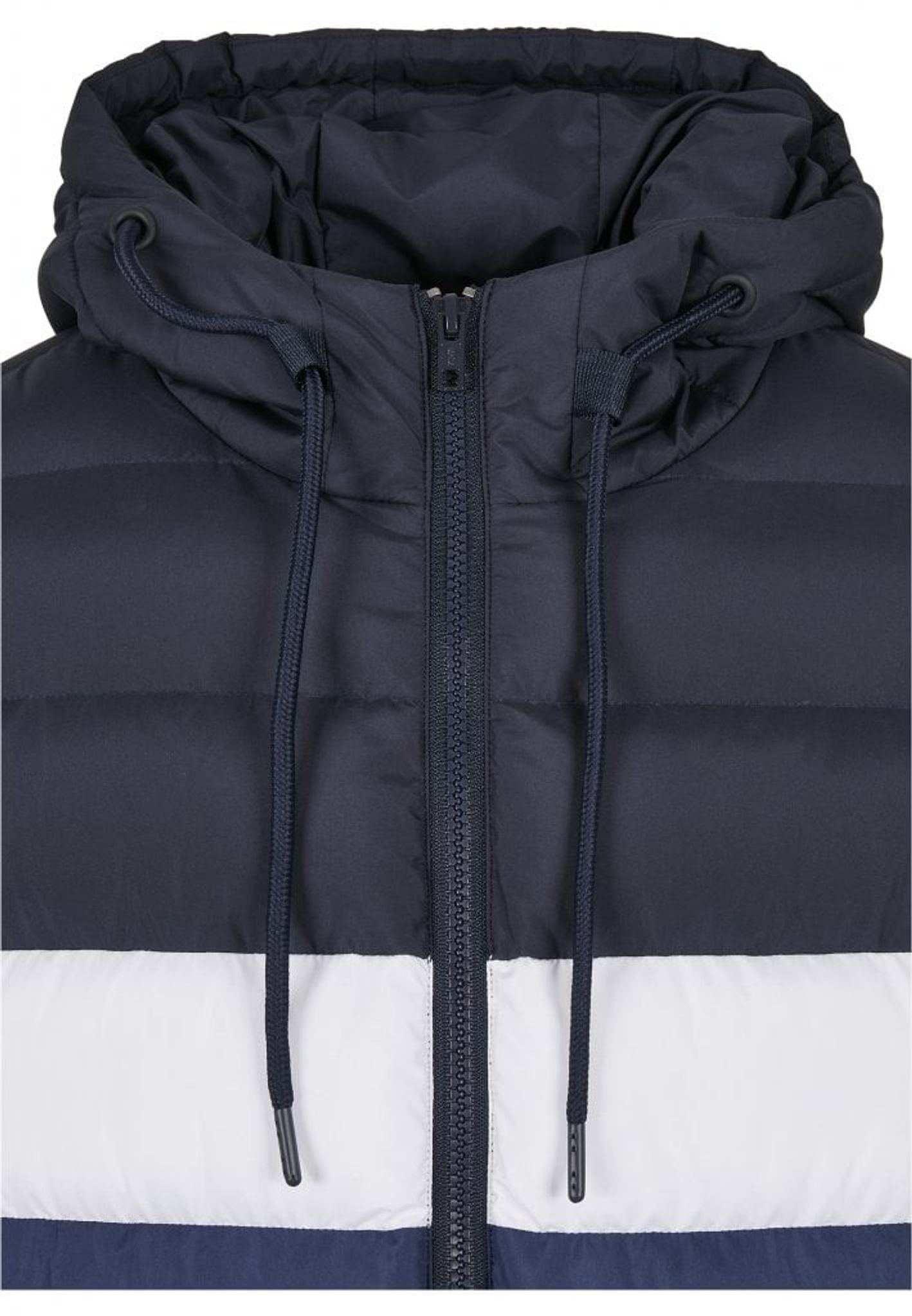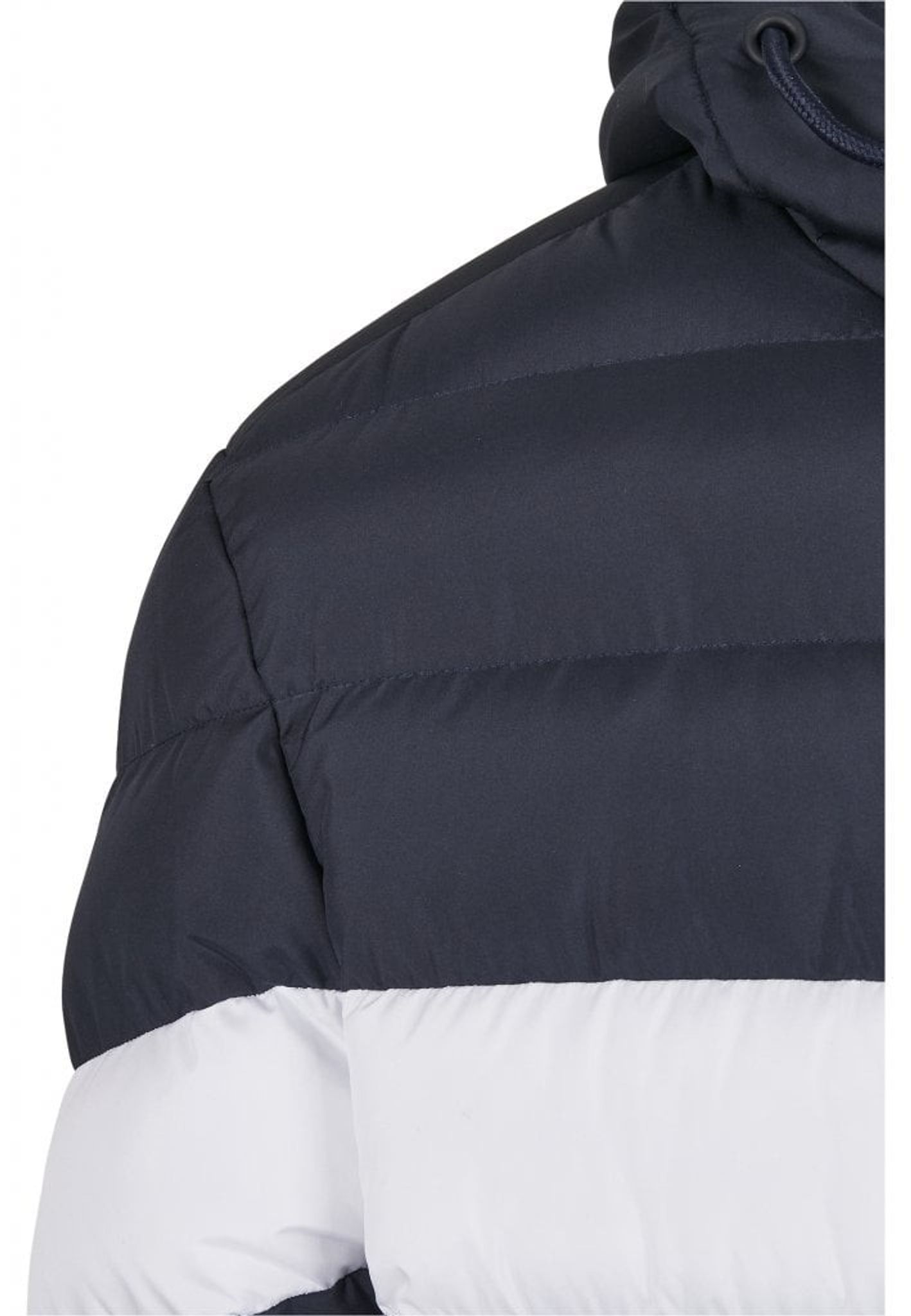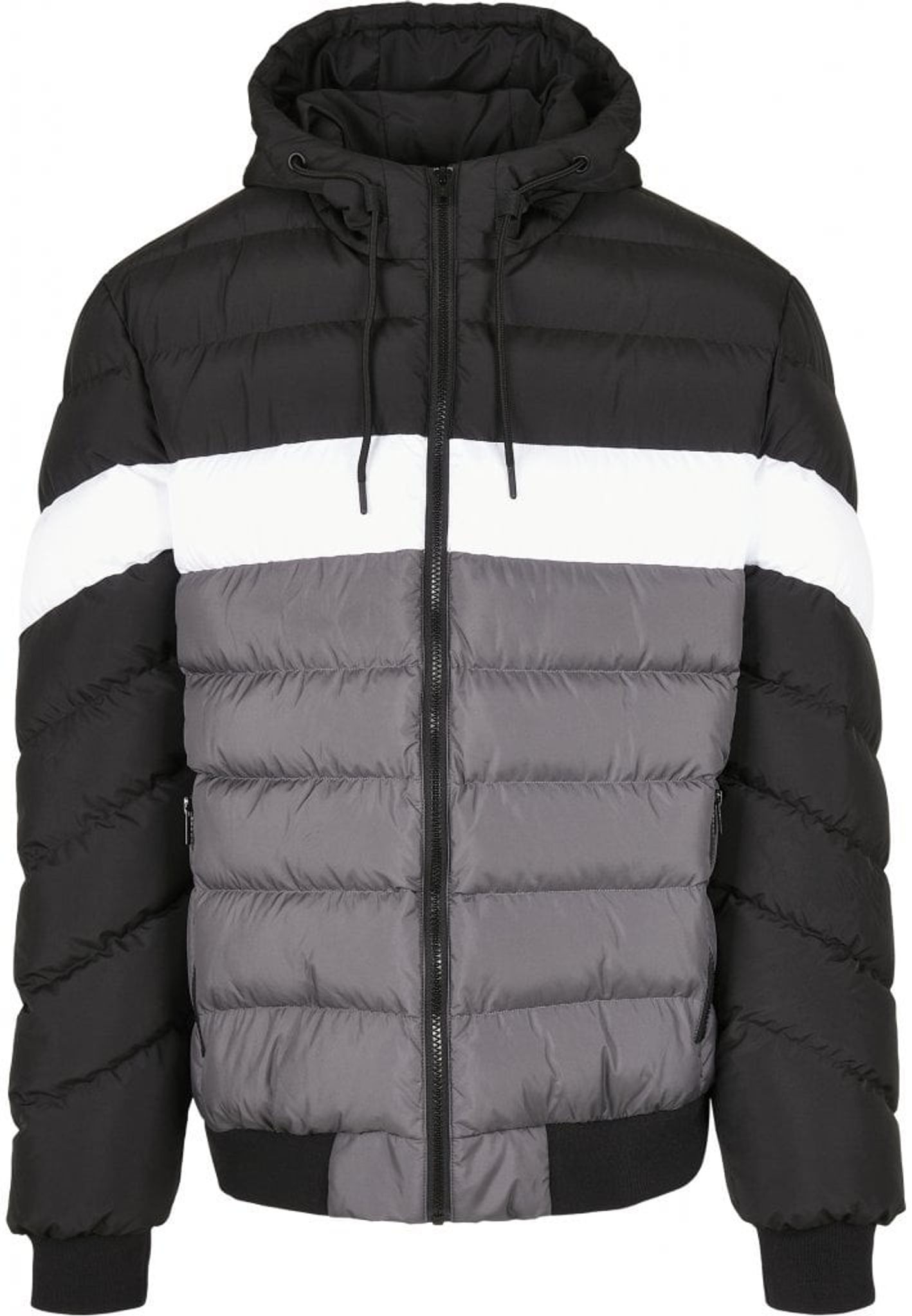 The hooded jacket is closed with a zipper at the front and it goes high up in the neck.