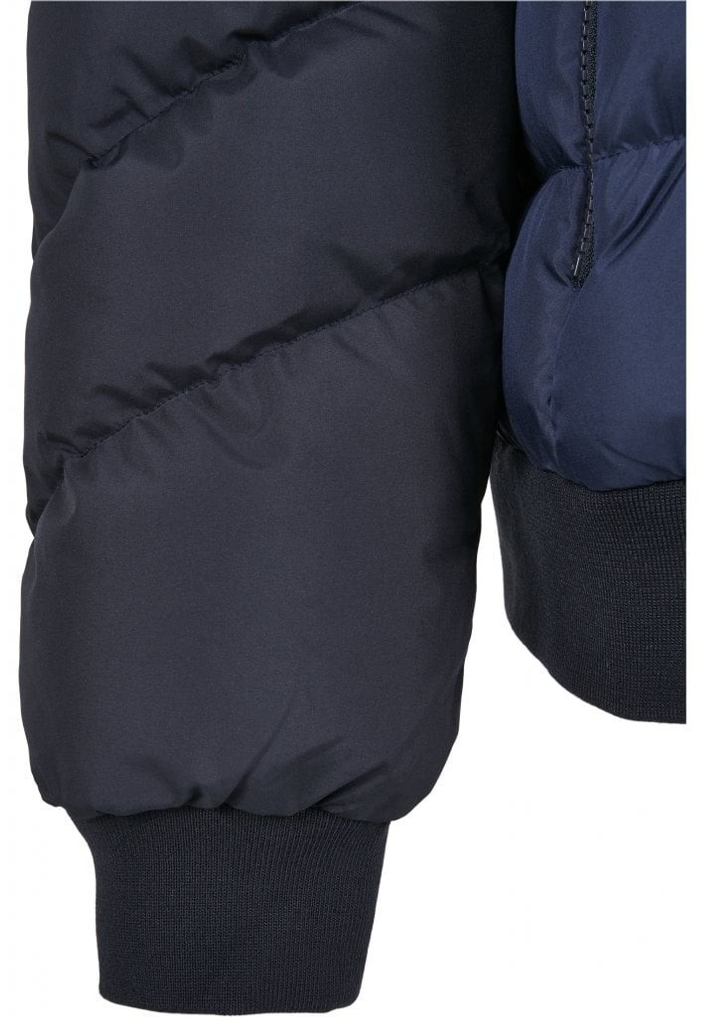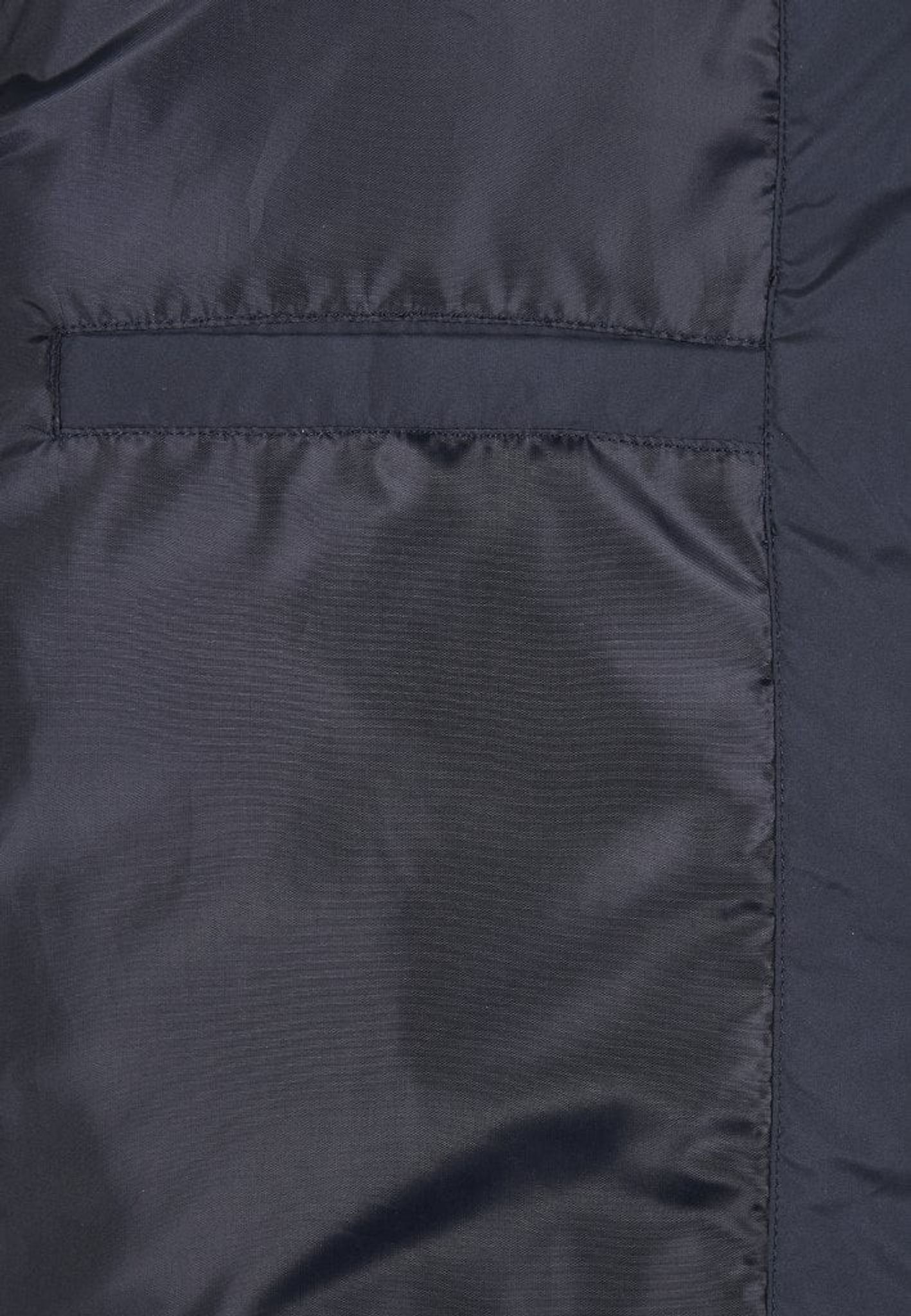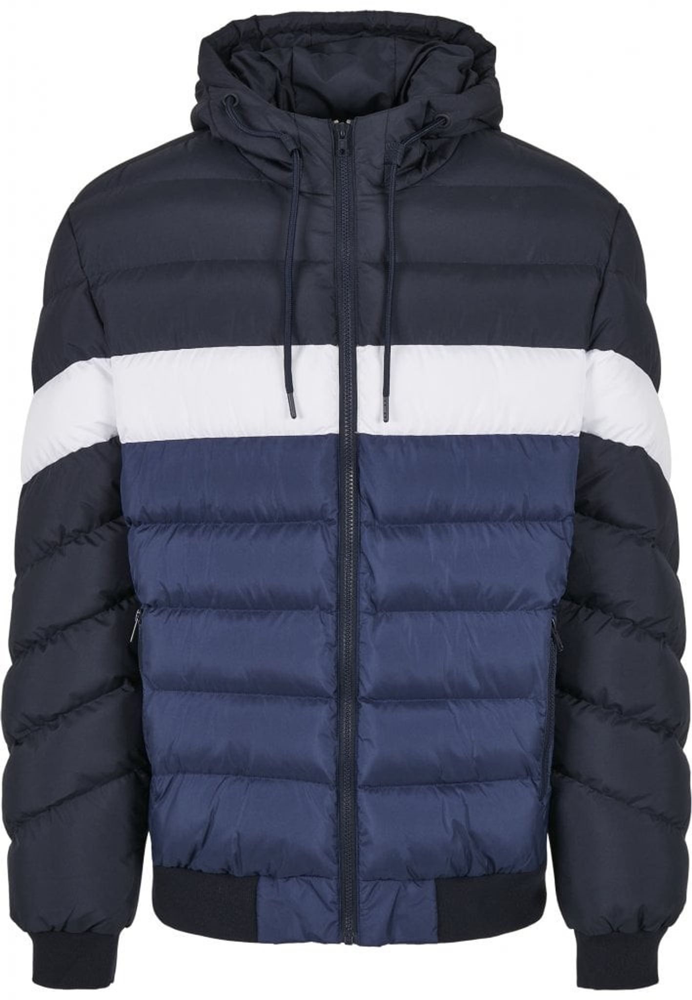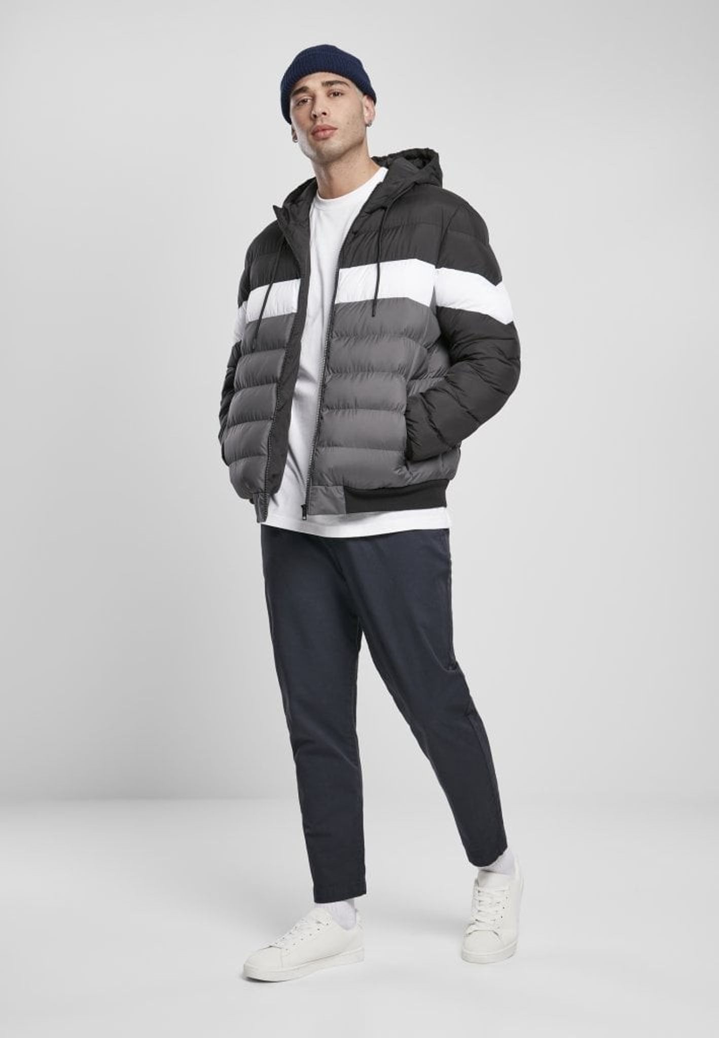 The hooded jacket is closed with a zipper at the front and it goes high up in the neck.