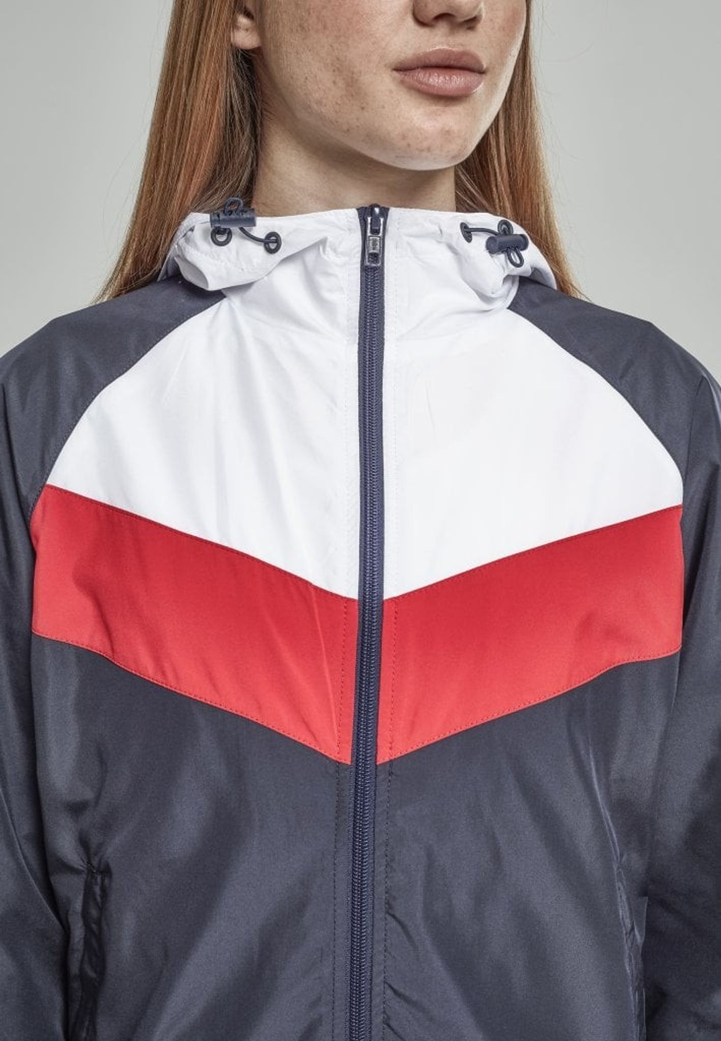 The hood is white in both colors and has a white lining and drawstring with straps.