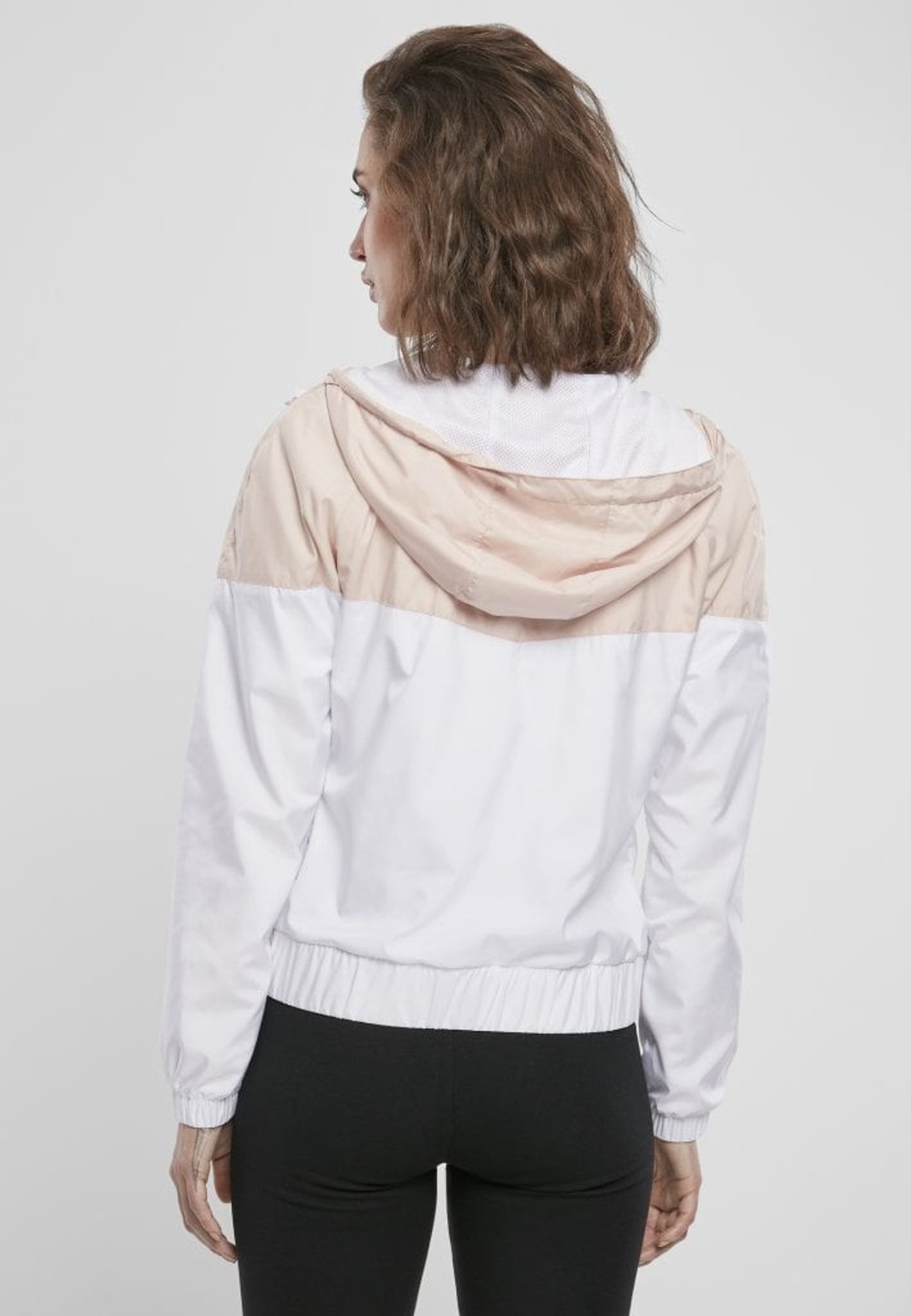 Two-color windbreaker with hooded lady
